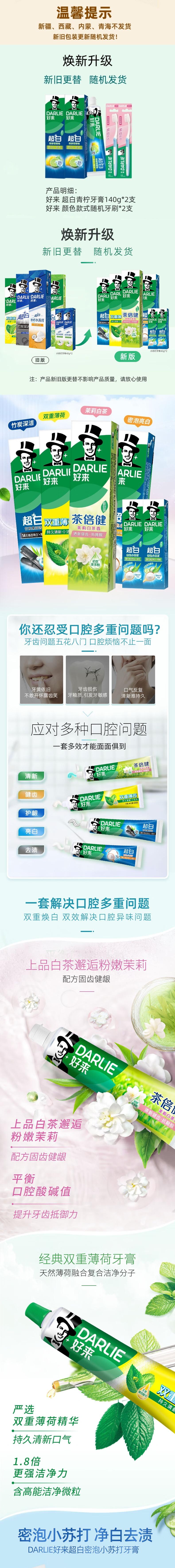 好来 超白青柠牙膏140g*2支+牙刷2支(颜色随机) hlcn2y02