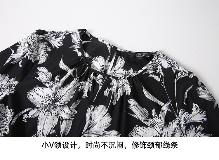 EITIE爱特爱气质直筒显瘦百搭通勤印花上衣夏季新款8213914