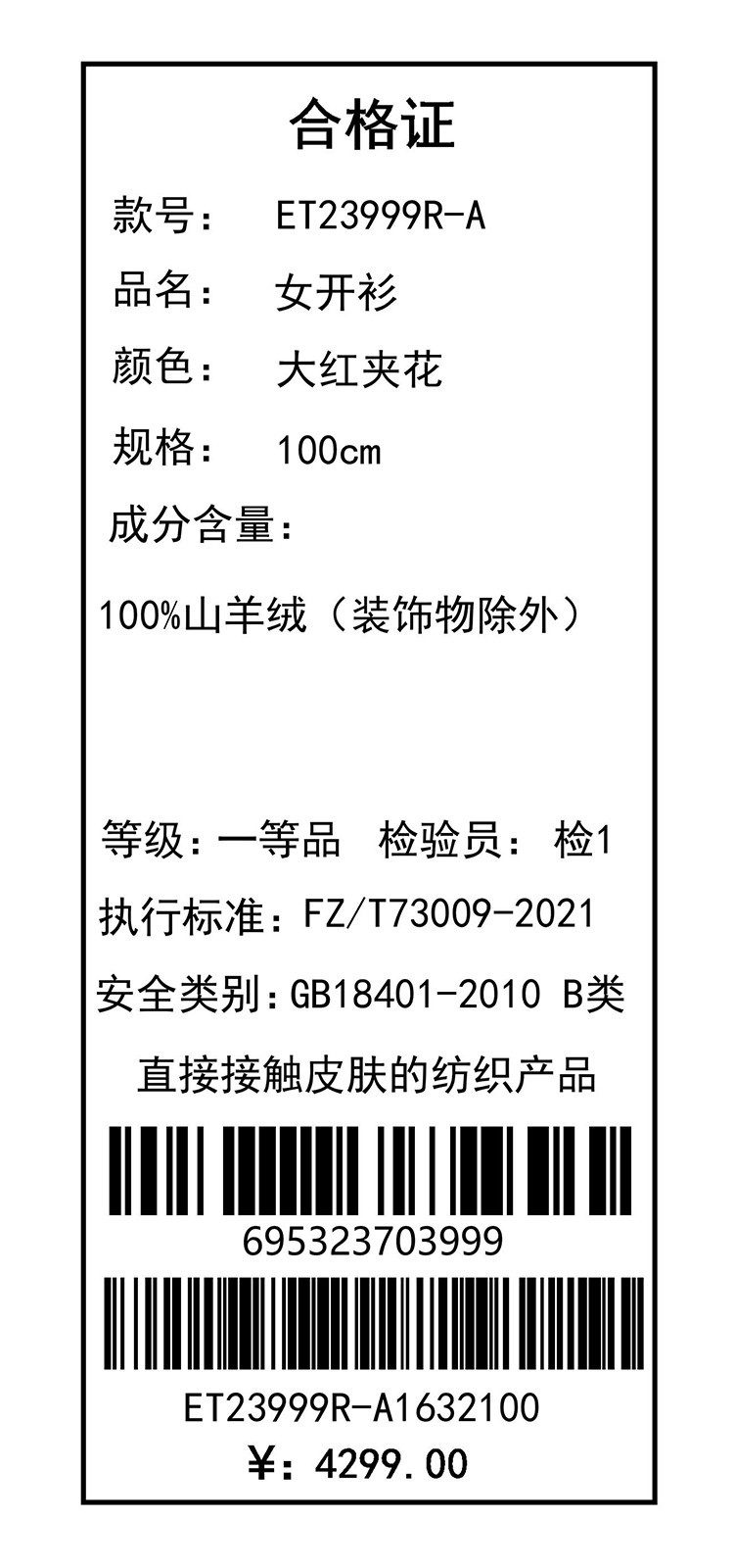 【咕咕同款】PALUOPO/PL女开衫ET23999R-A/约重340g 红色帕罗