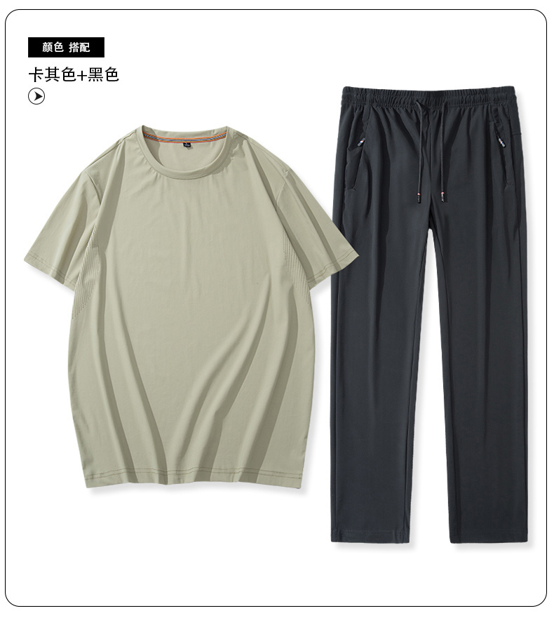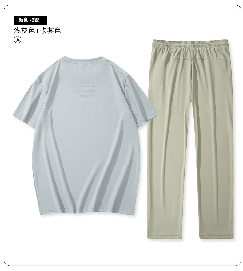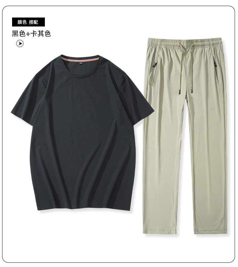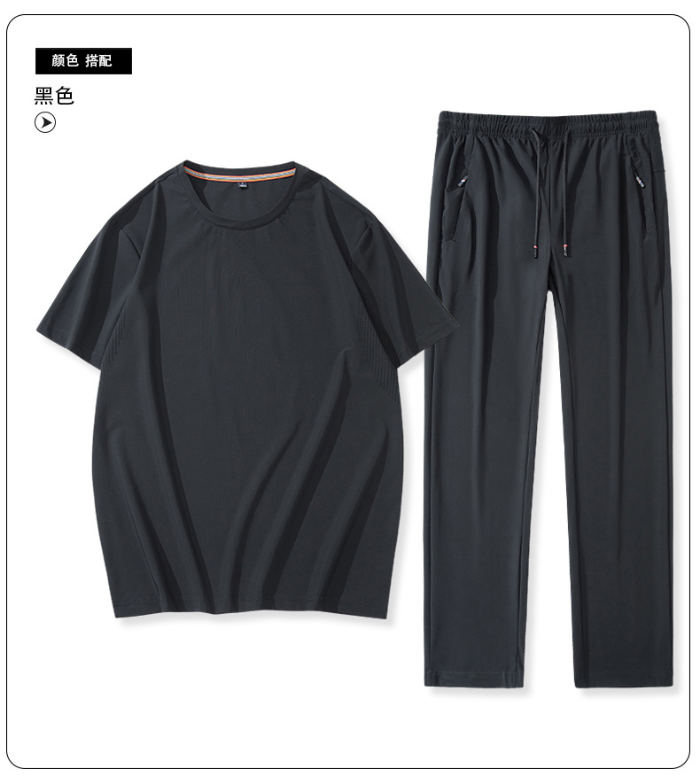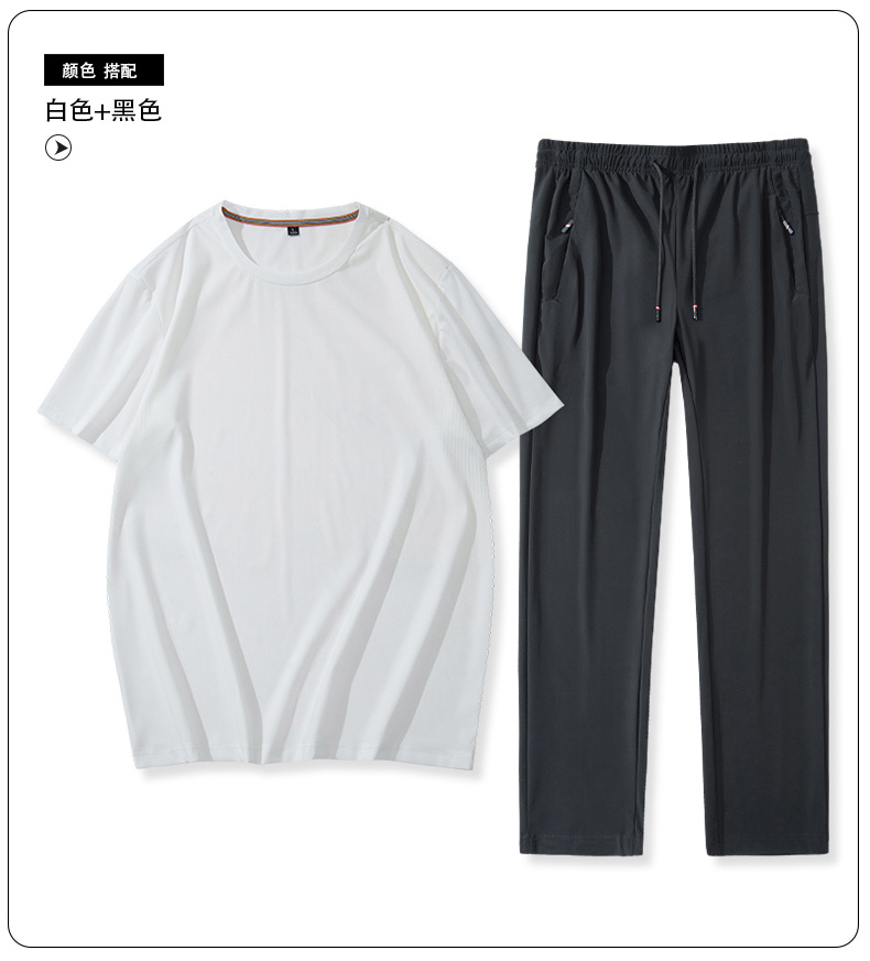 【超大码】【夏季套装】【DSK】大依优型大码冰丝短袖T恤长裤套装圆领时尚潮流宽松潮牌加肥加大上衣男士半袖