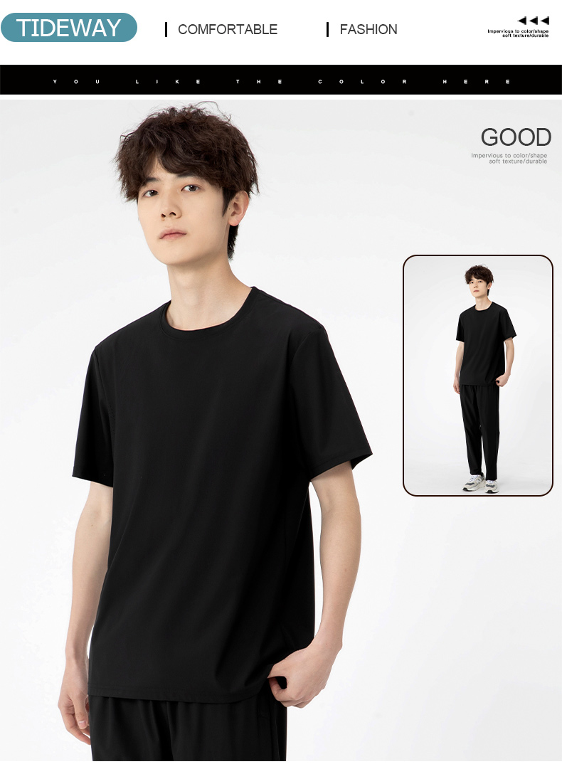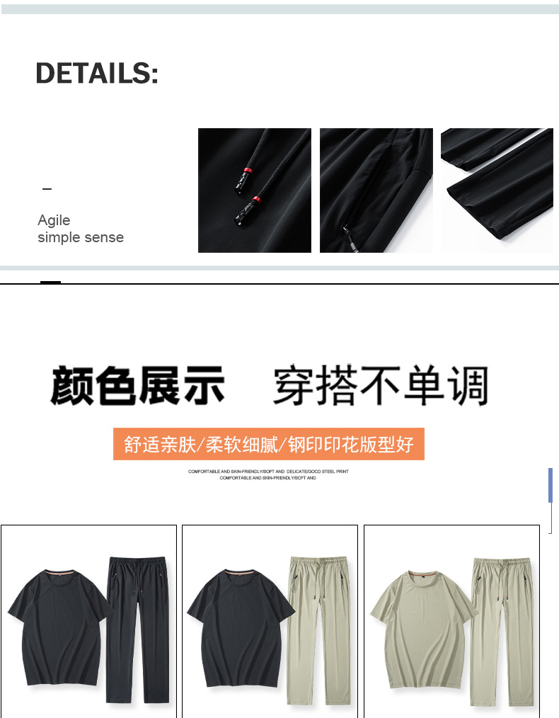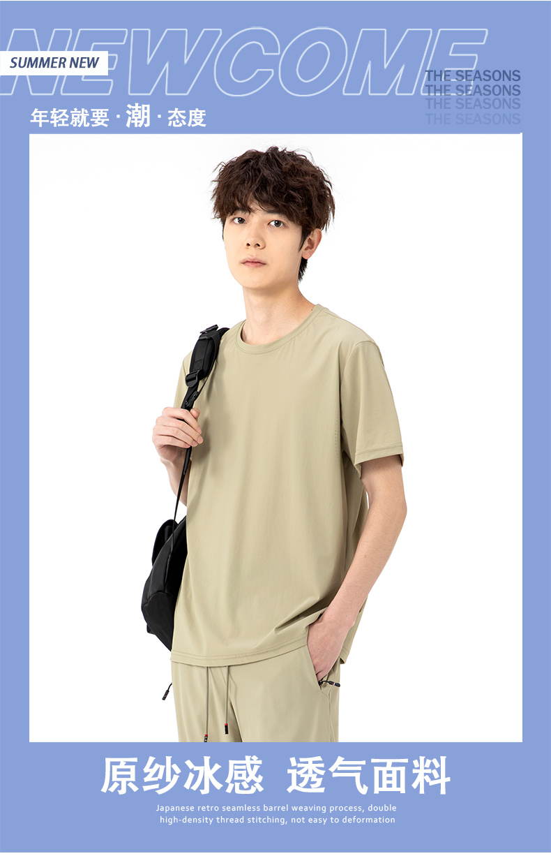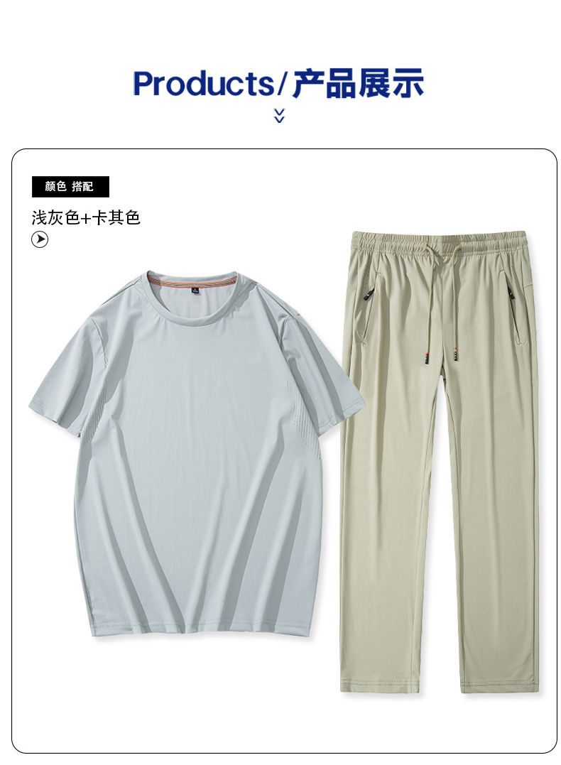 【超大码】【夏季套装】【DSK】大依优型大码冰丝短袖T恤长裤套装圆领时尚潮流宽松潮牌加肥加大上衣男士半袖