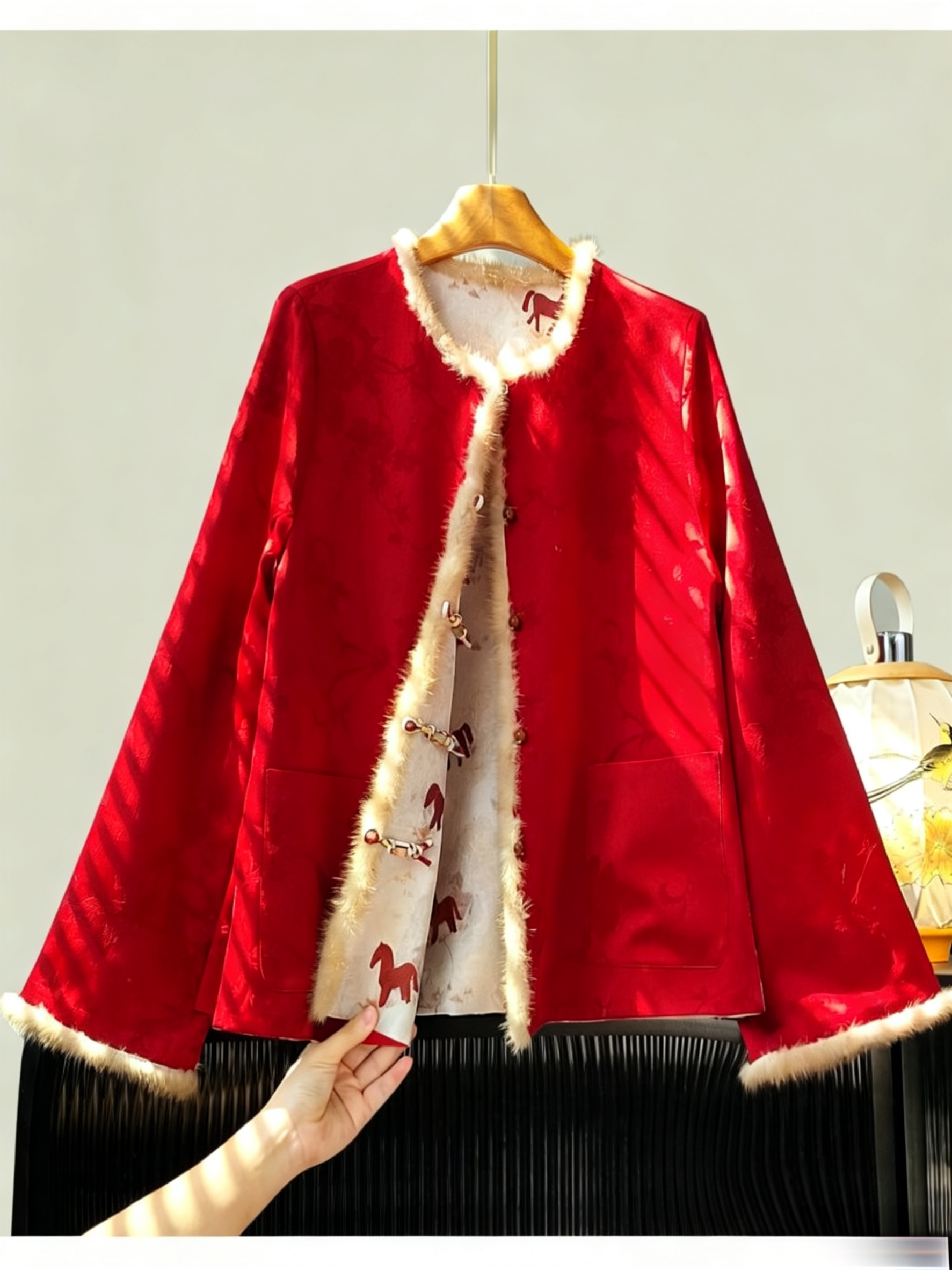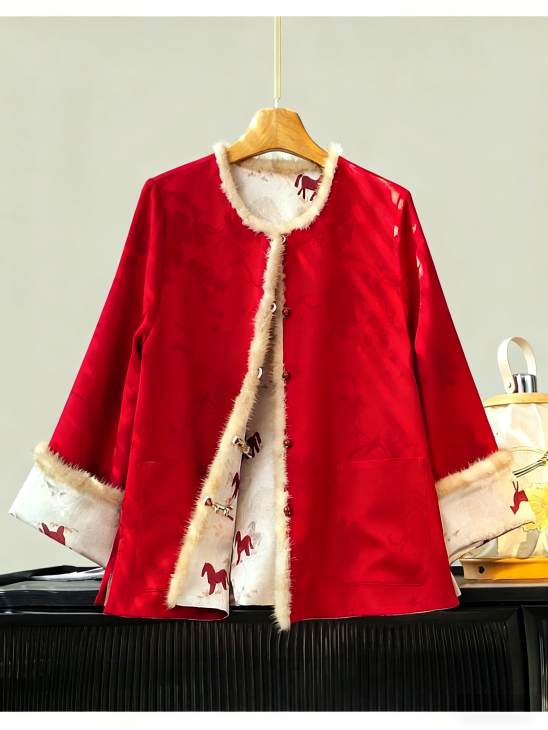 丁摩 新中式双面穿夹棉外套女设计感冬季洋气休闲棉服棉衣5ZF-ZG351