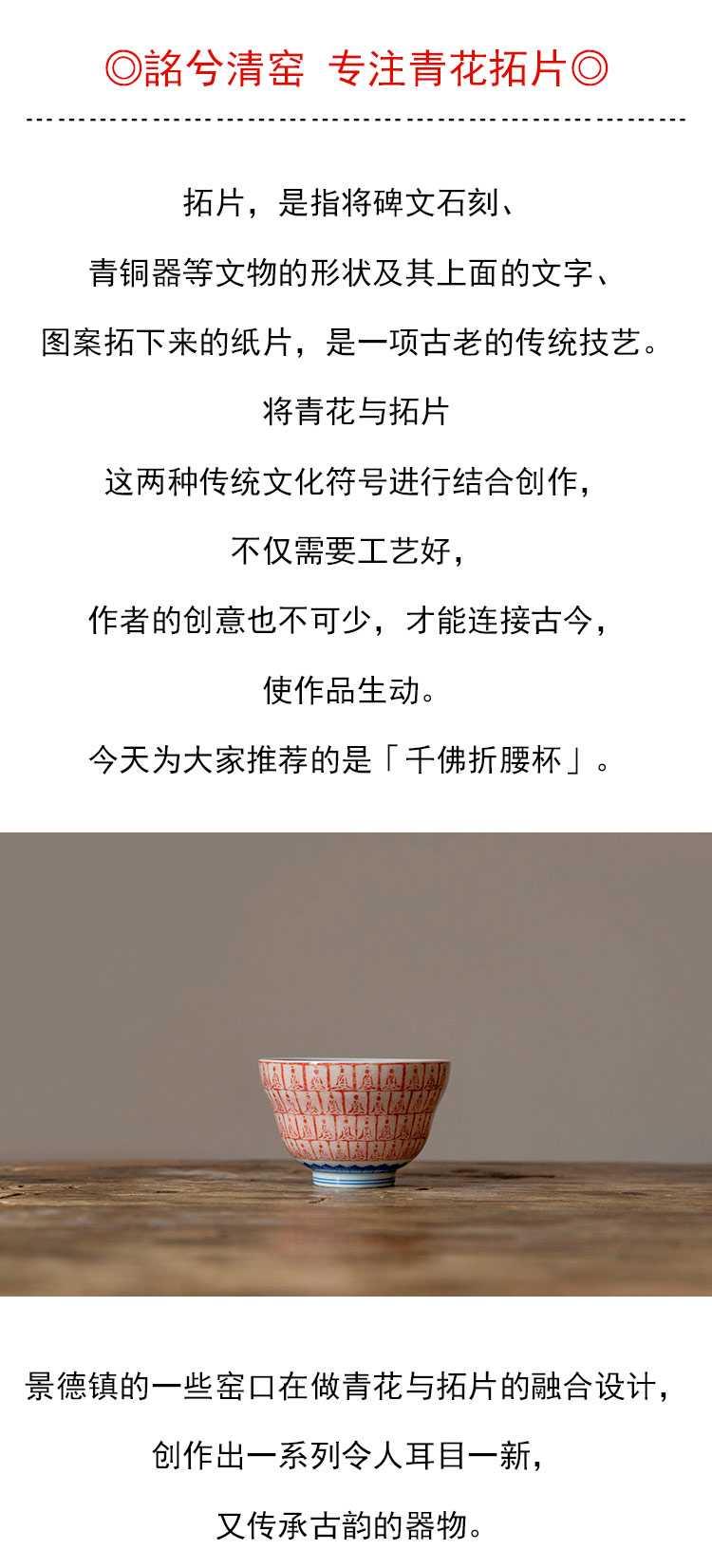 茶香记 千佛折腰杯 青花拓片 詺兮清窑 精美拓印 主人杯 陶瓷