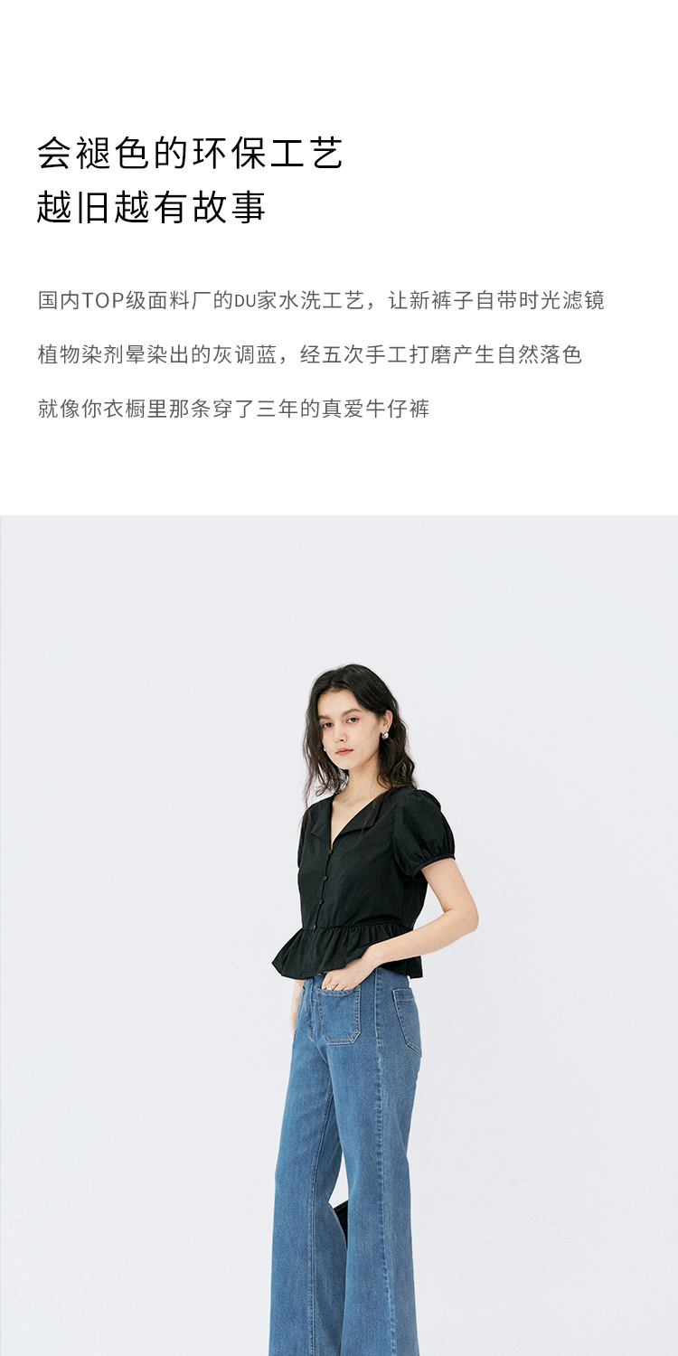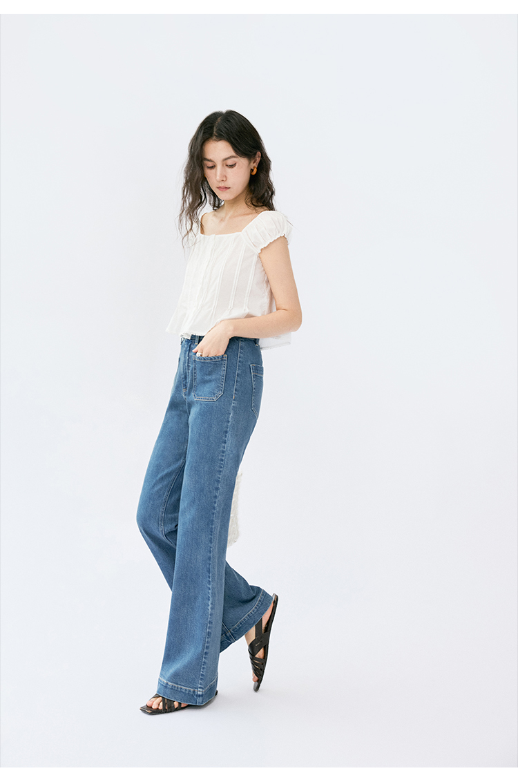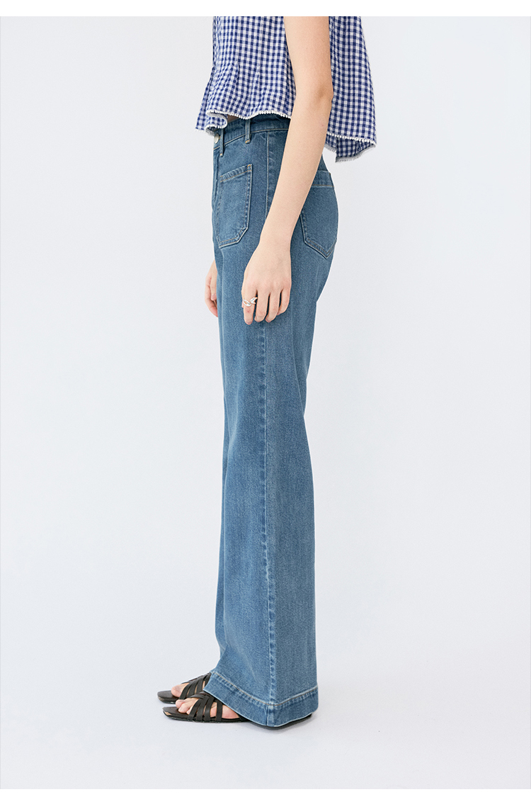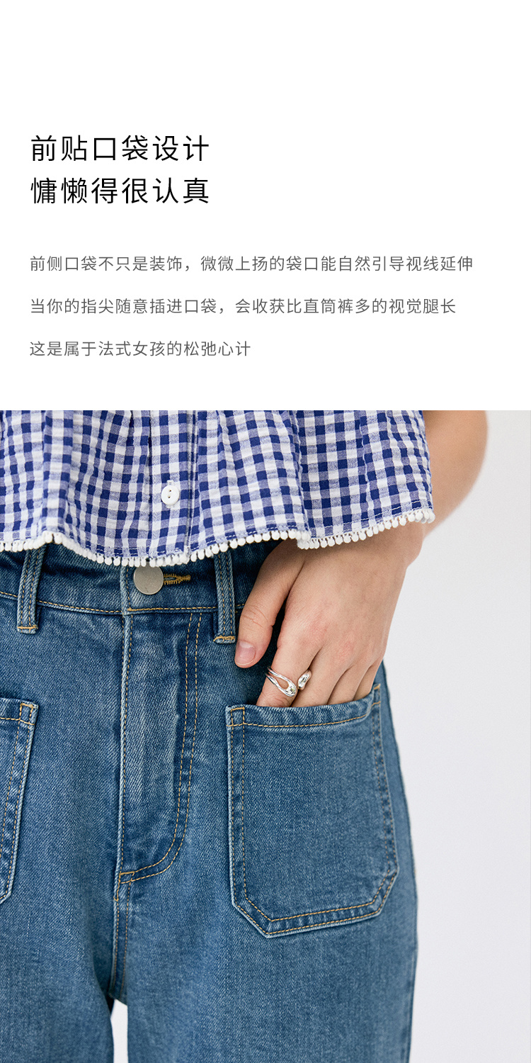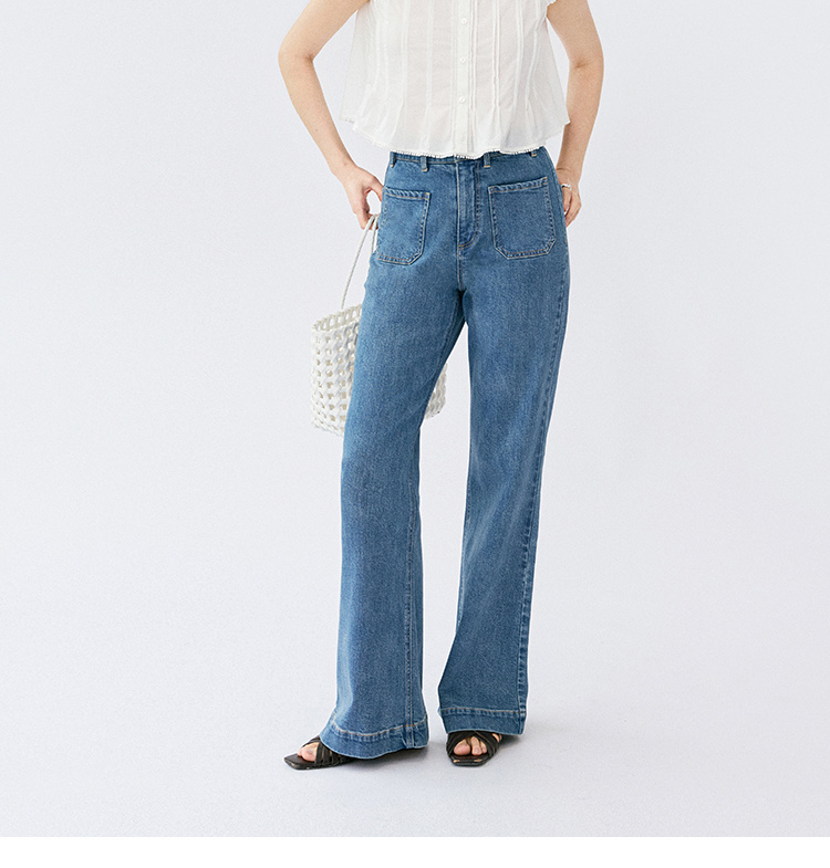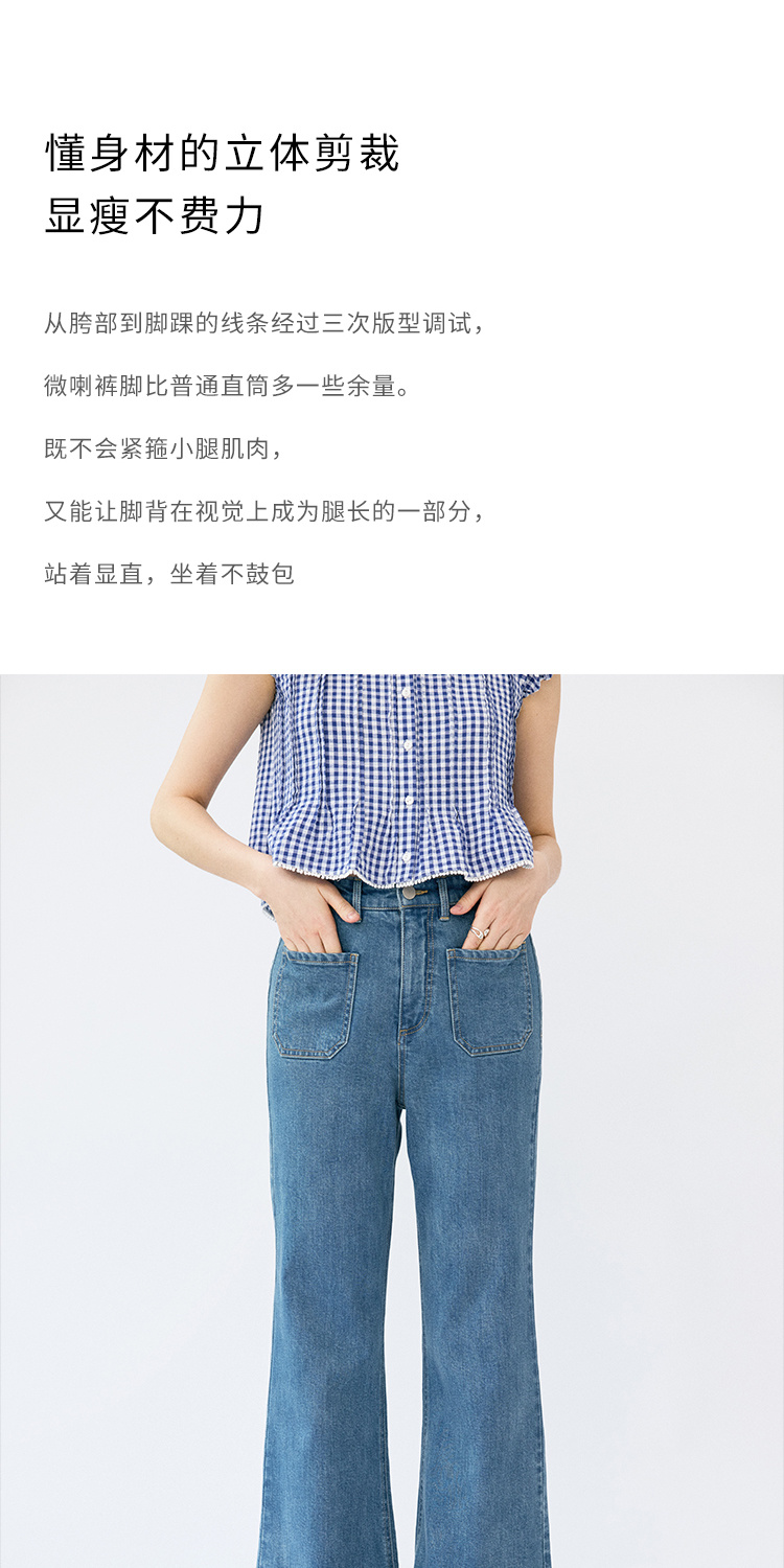 HeyDress复古牛仔裤女夏季高腰显瘦微喇裤薄款双口袋设计感裤子