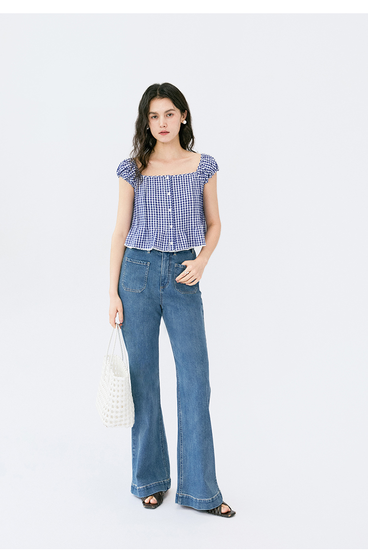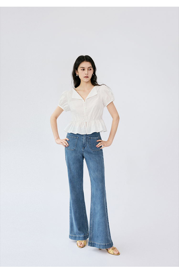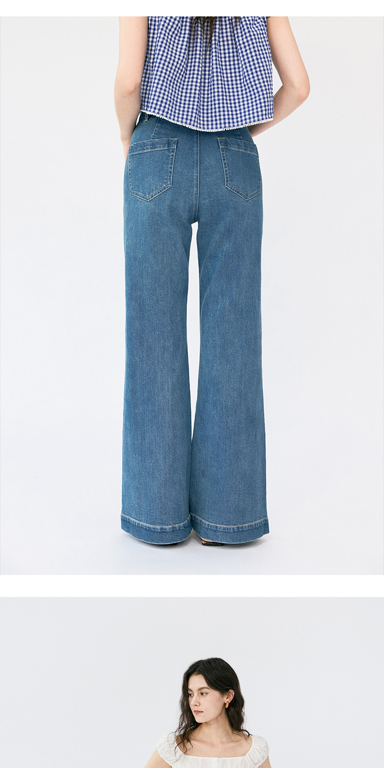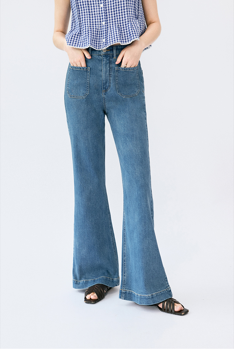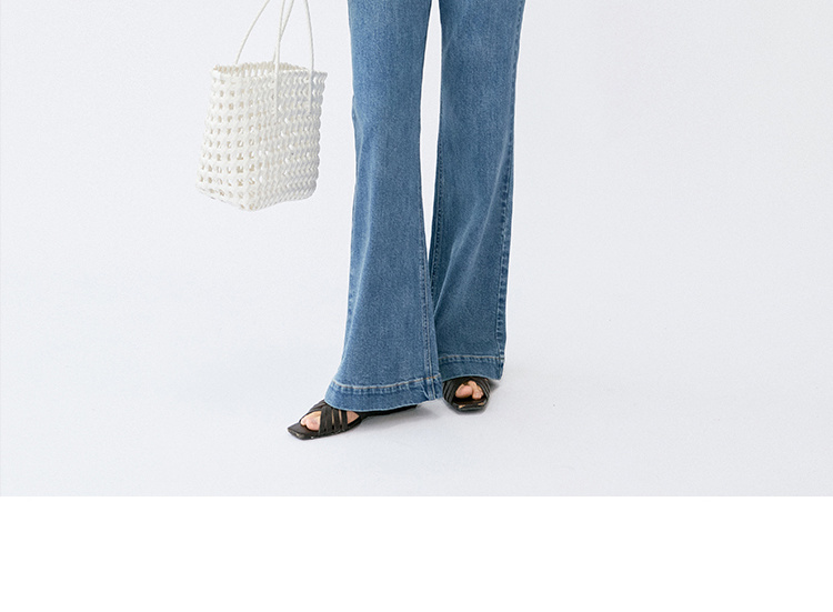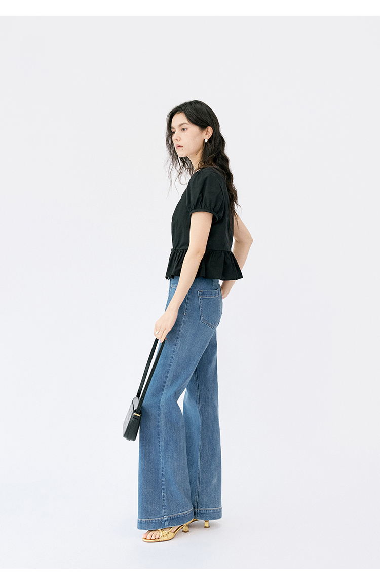 HeyDress复古牛仔裤女夏季高腰显瘦微喇裤薄款双口袋设计感裤子