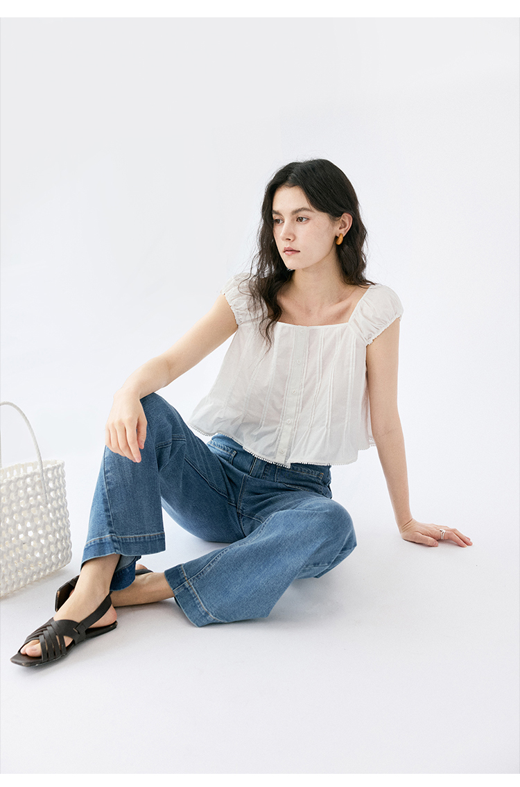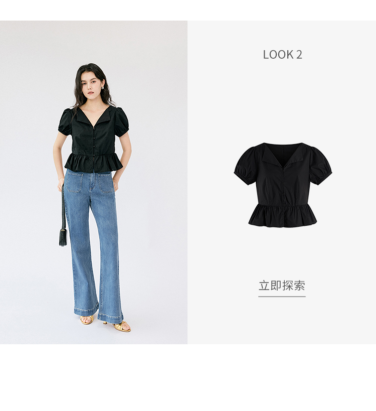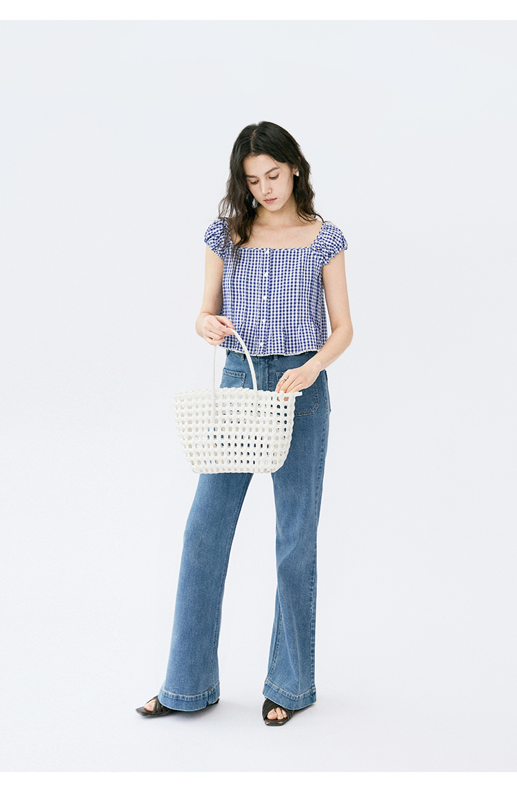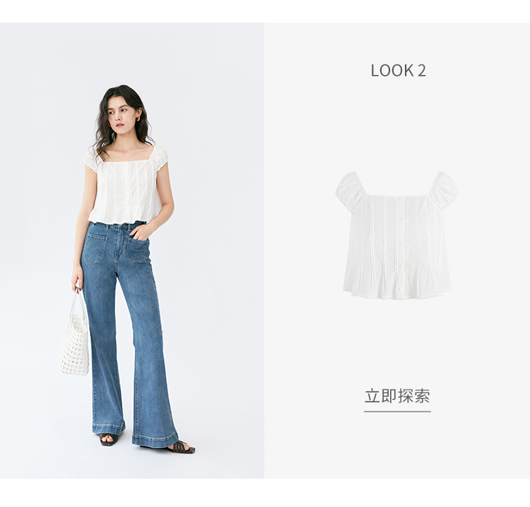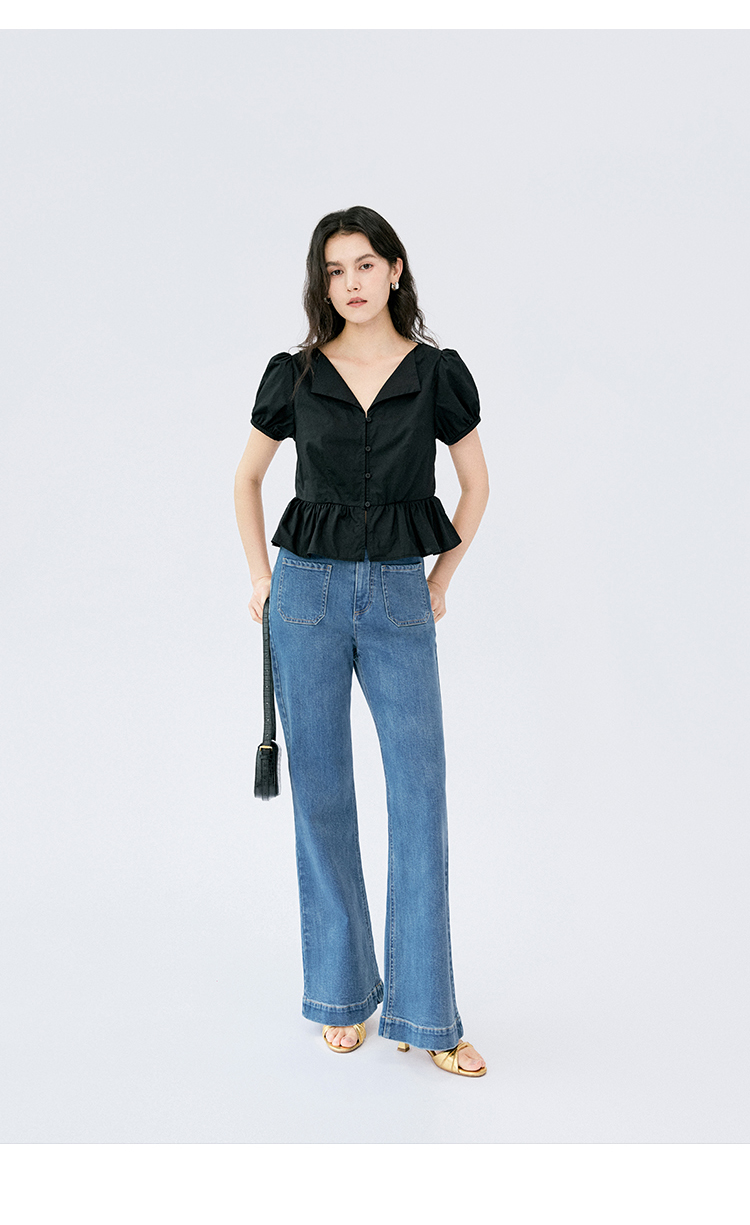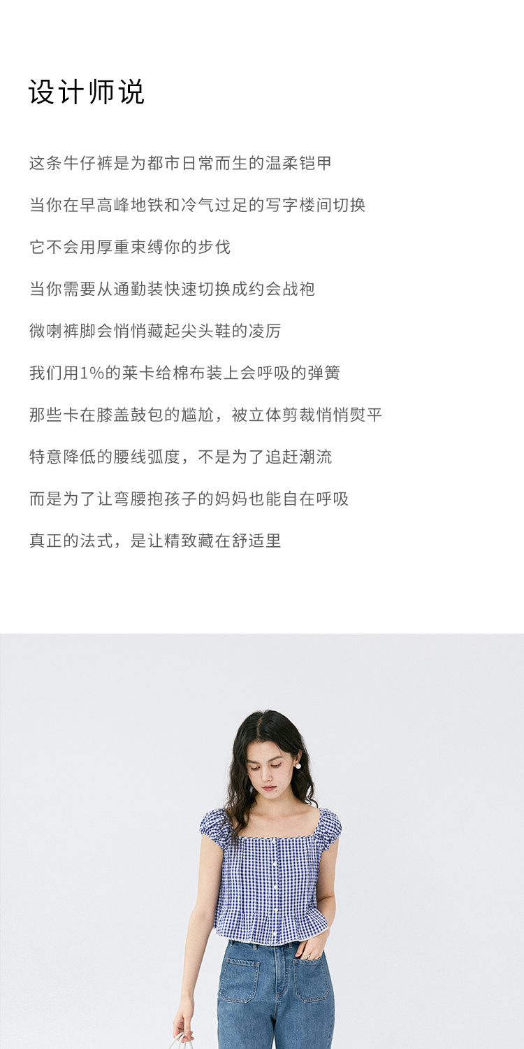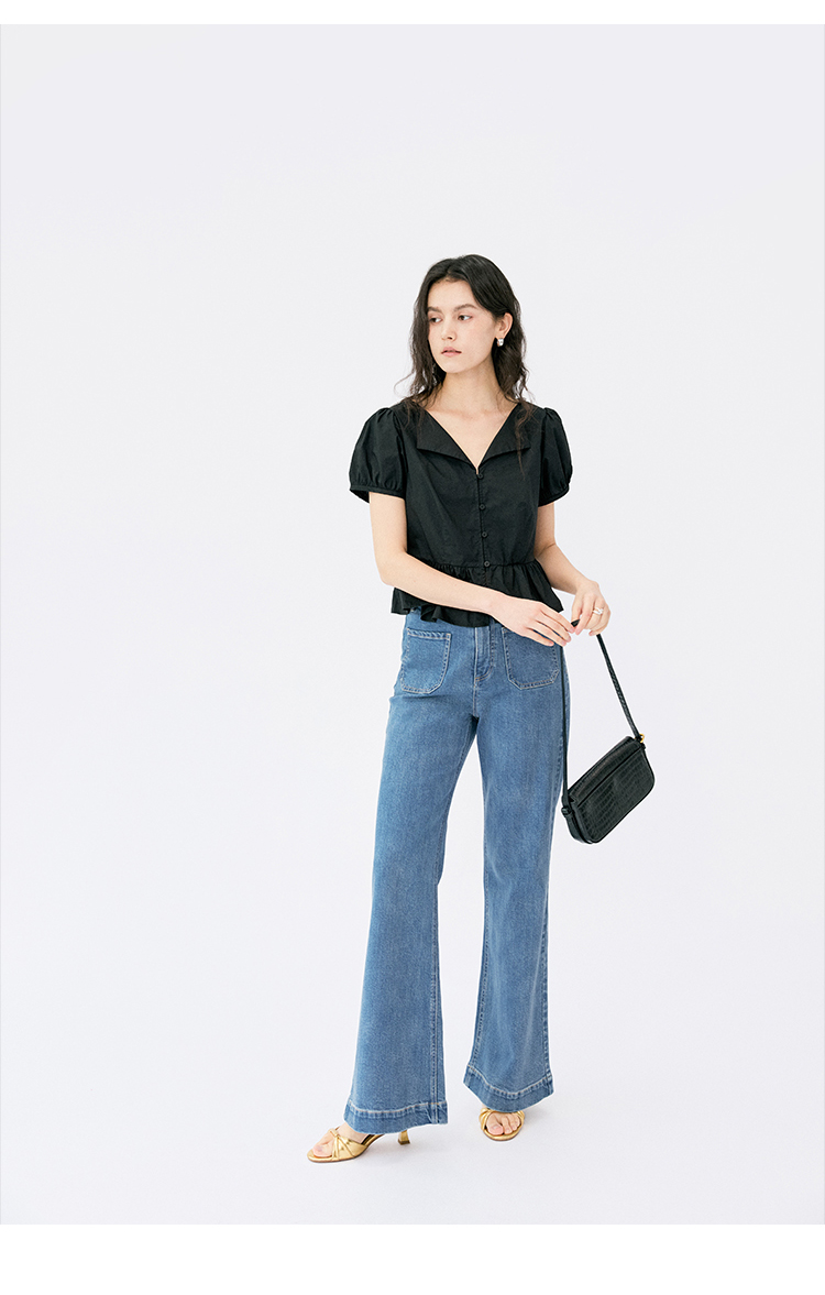 HeyDress复古牛仔裤女夏季高腰显瘦微喇裤薄款双口袋设计感裤子