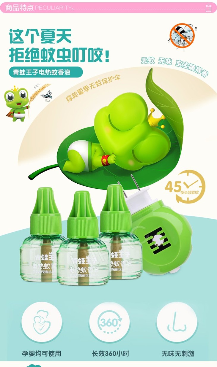 青蛙王子孕婴儿童电热蚊香液*3瓶【送原装加热器1个】JPY带授权招加盟代理