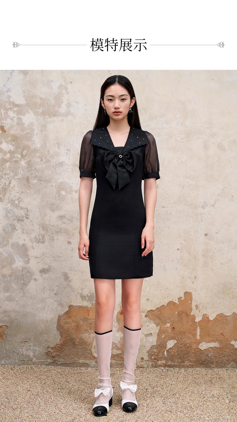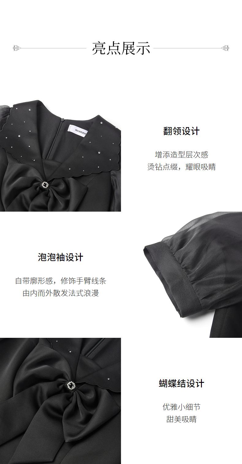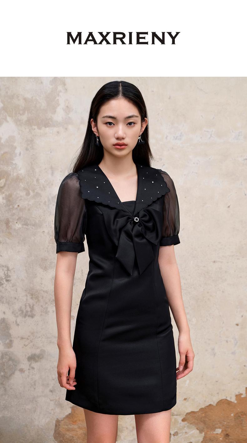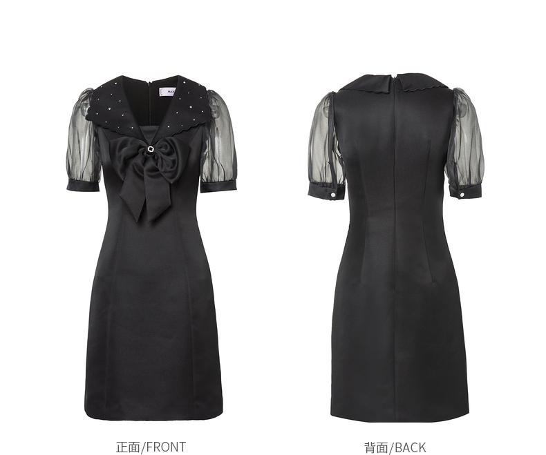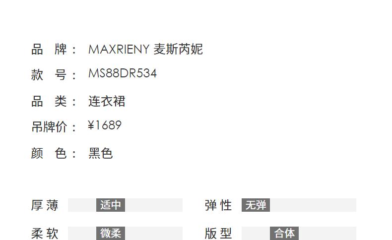 MAXRIENY法式浪漫感修身裙子缎面小黑裙(货号:MS88DR534)