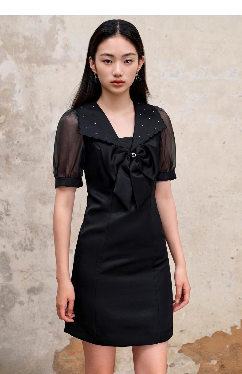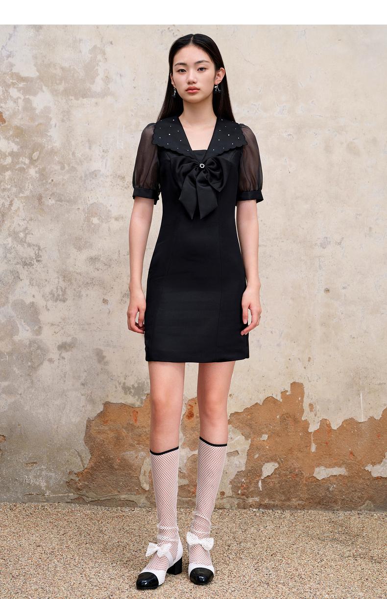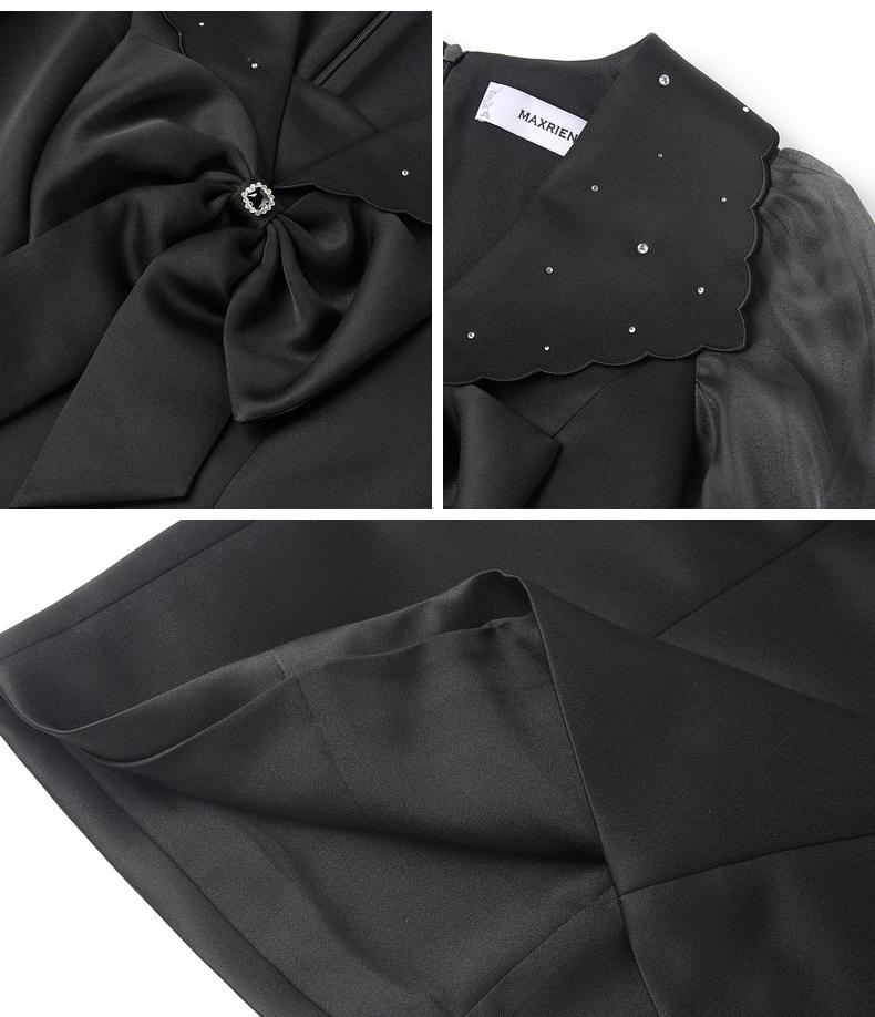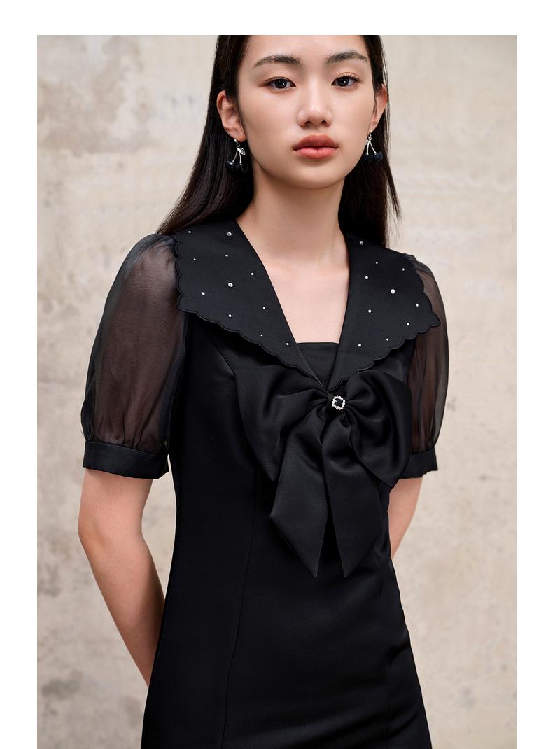 MAXRIENY法式浪漫感修身裙子缎面小黑裙(货号:MS88DR534)