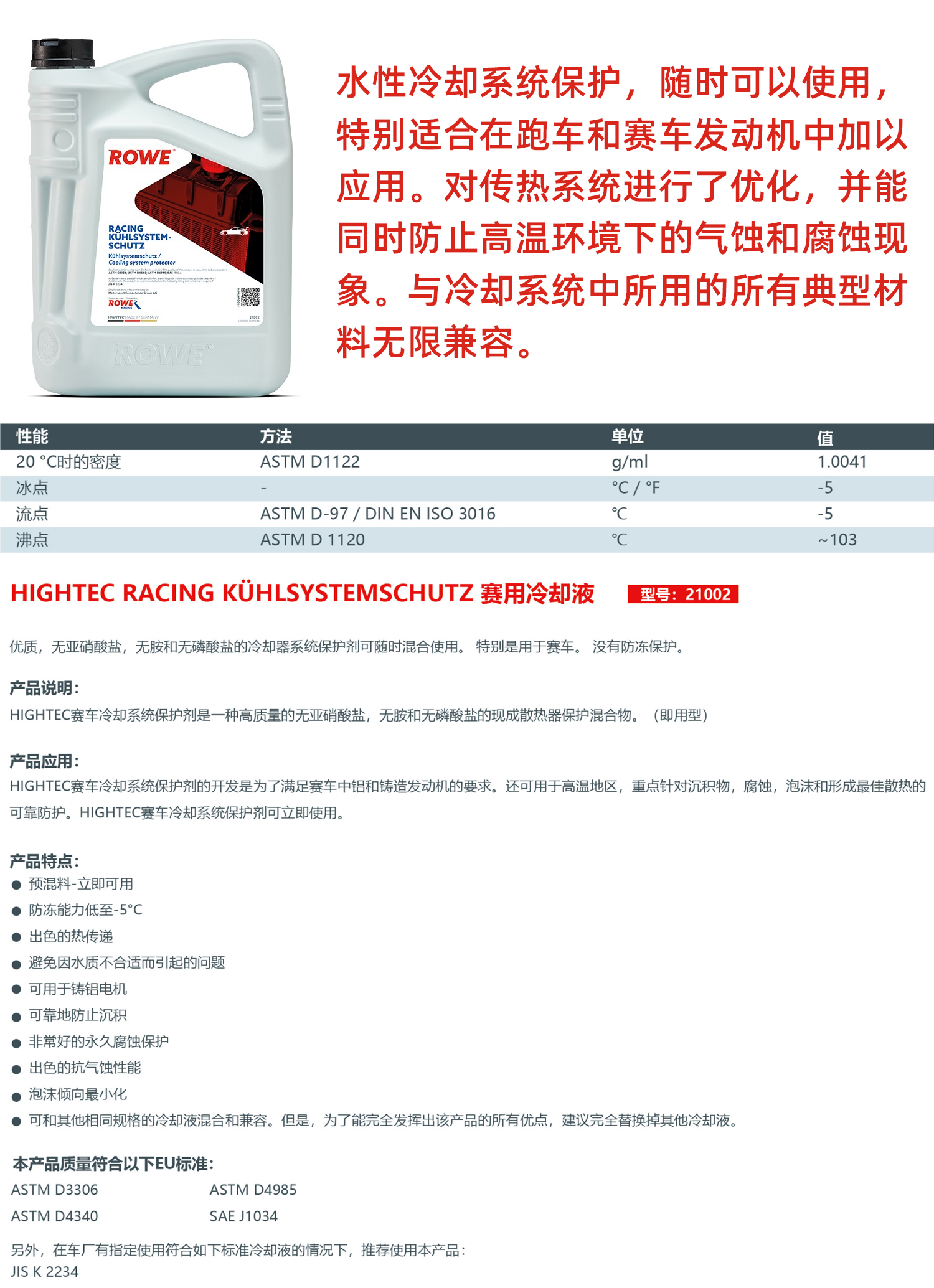 ROWE 德威 赛用冷却液 Racing 赛用|深圳零创 x CLAUTO酷乐商城