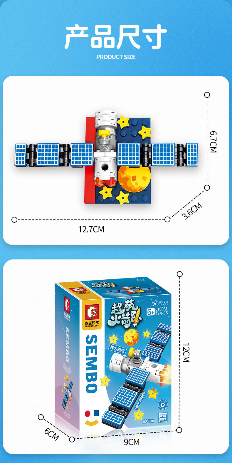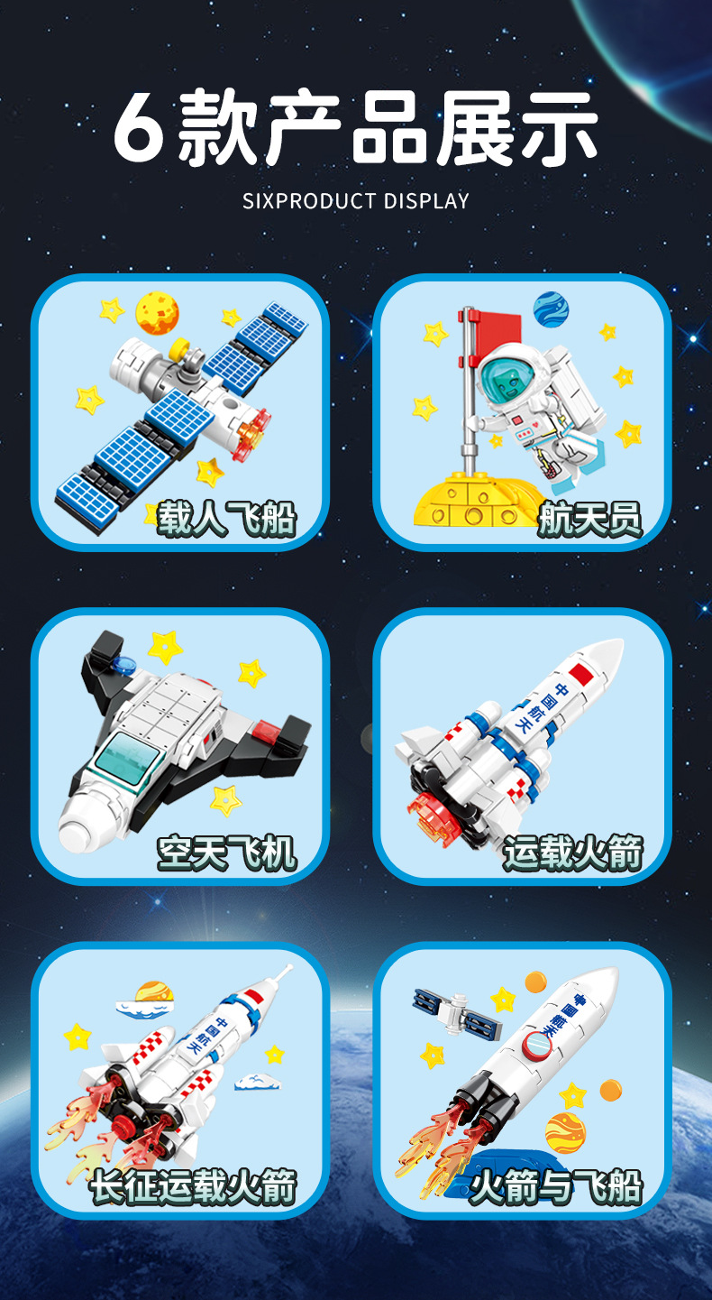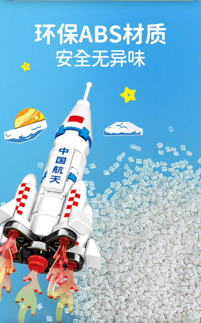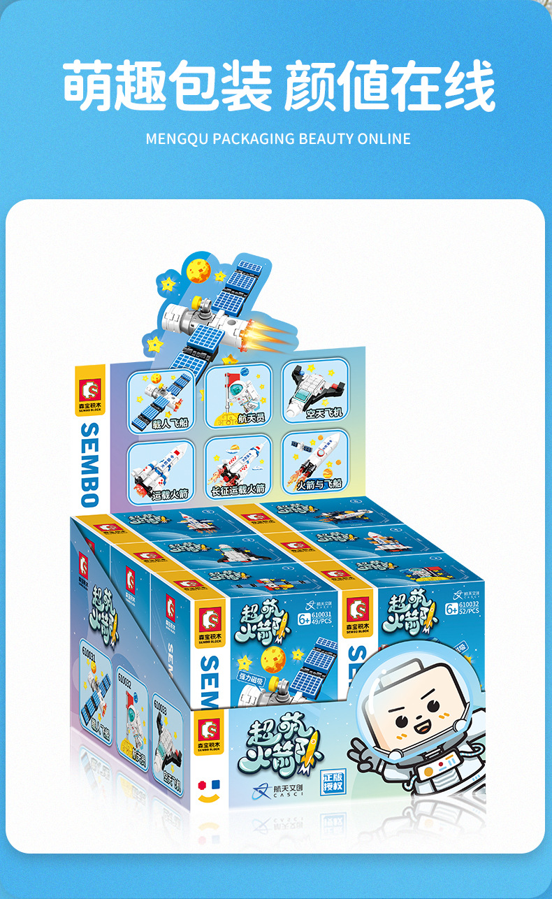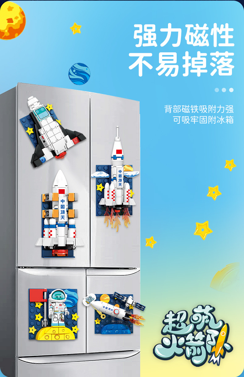 森宝超萌火箭队冰箱贴积木模型 航天文创正版授权 飞船运载火箭积木玩具拼装摆件