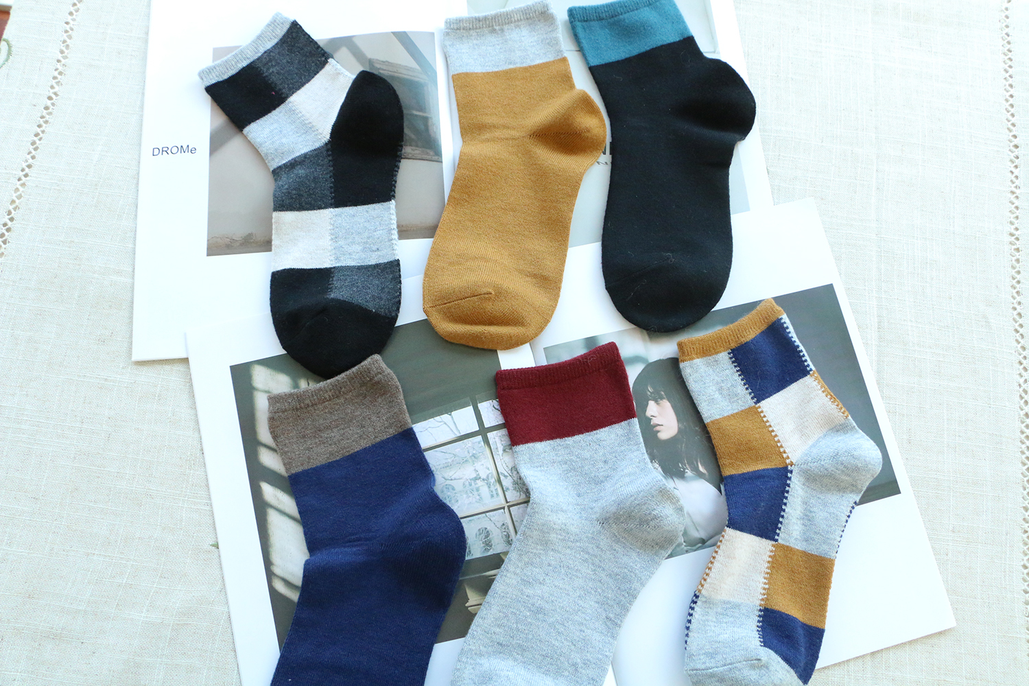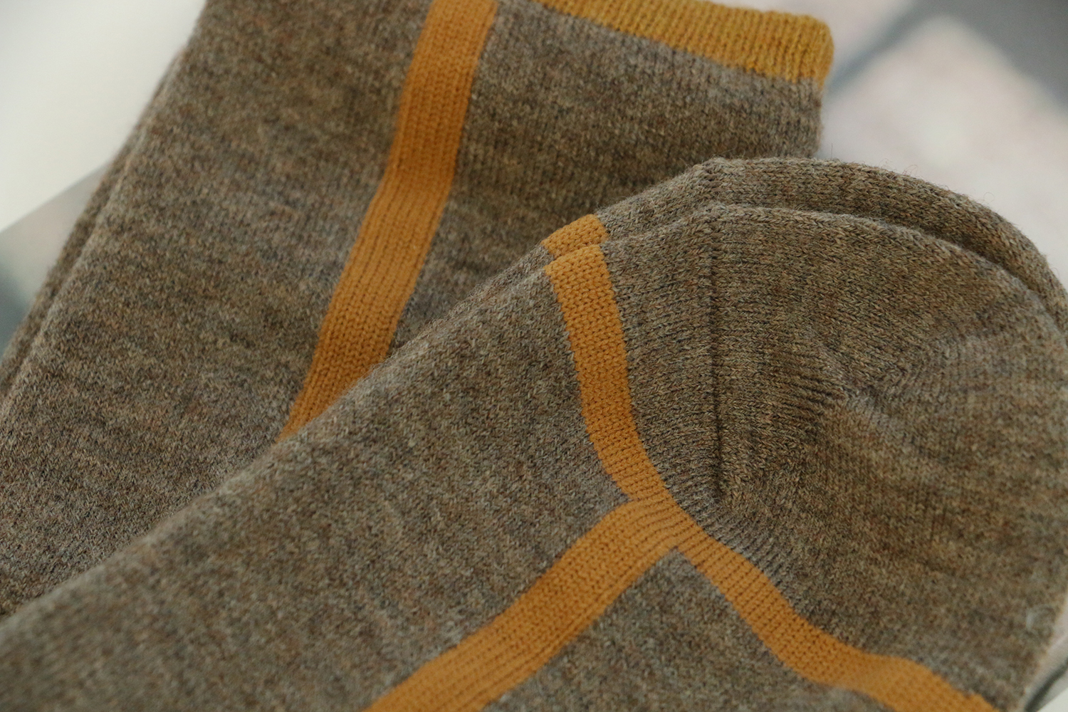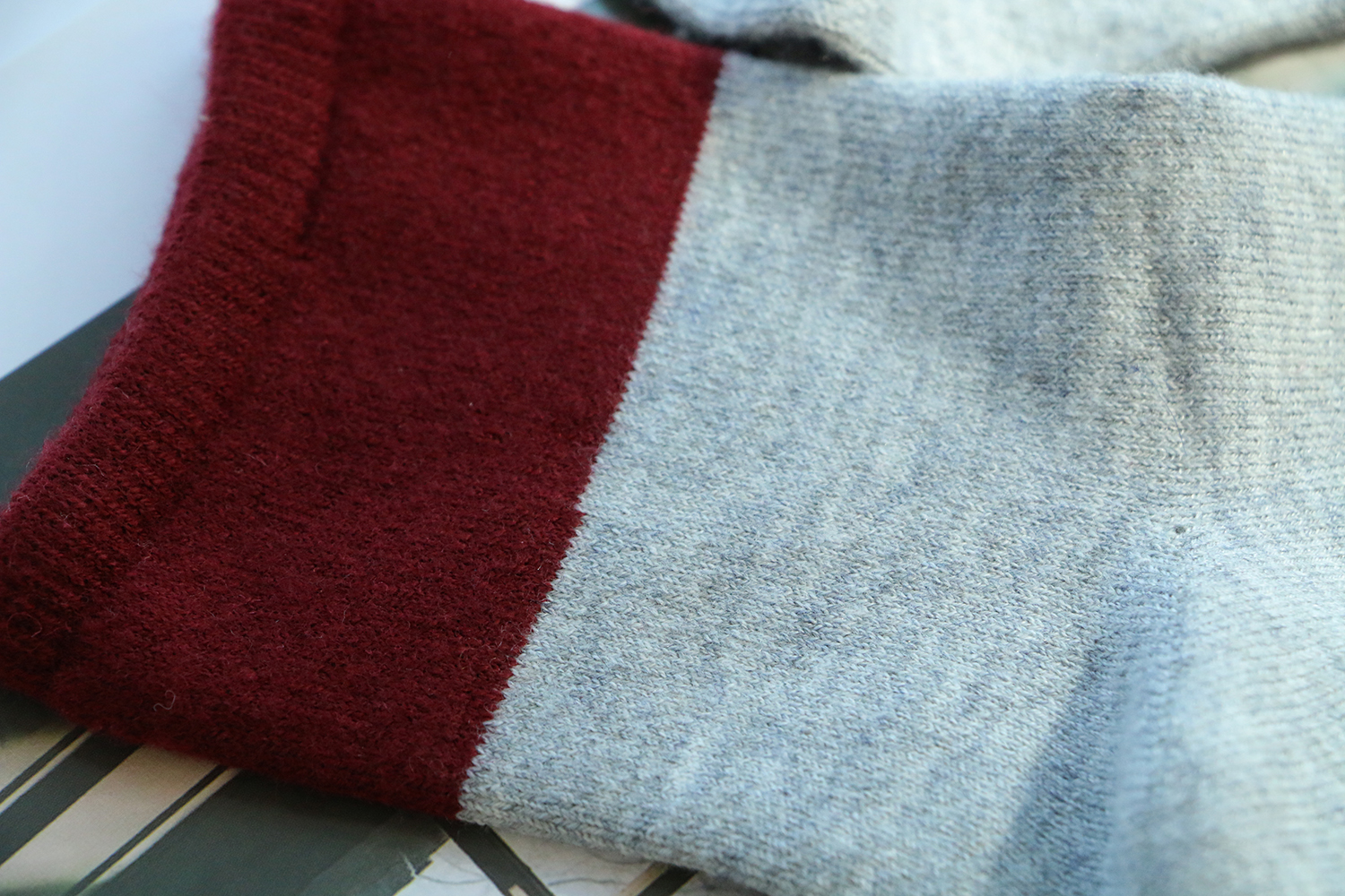其次呢,羊毛袜的提花太漂亮了,女款我们上一组6色,男女款一组5色。女款6色,包括了4双收口拼色袜和2双格纹袜,姜黄、孔雀蓝、宝石蓝、圣诞红、驼色、麻灰、深灰,一撞色,偏顺色的优雅,格外日常。每一双我们上脚穿,都是好搭配的彩色袜,英伦,复古,不拘泥于基础色系,加入色彩,拼色袜露一个小边,冬天搭配一些日常look很实用。男女袜5色,包括3双格纹袜和2双单条纹袜,圣诞绿、红、黑、蓝、驼色,中性配色,可以很好融入秋冬穿搭。(女袜袜筒低一些,男女袜更高一些哦)