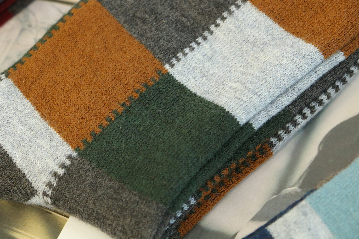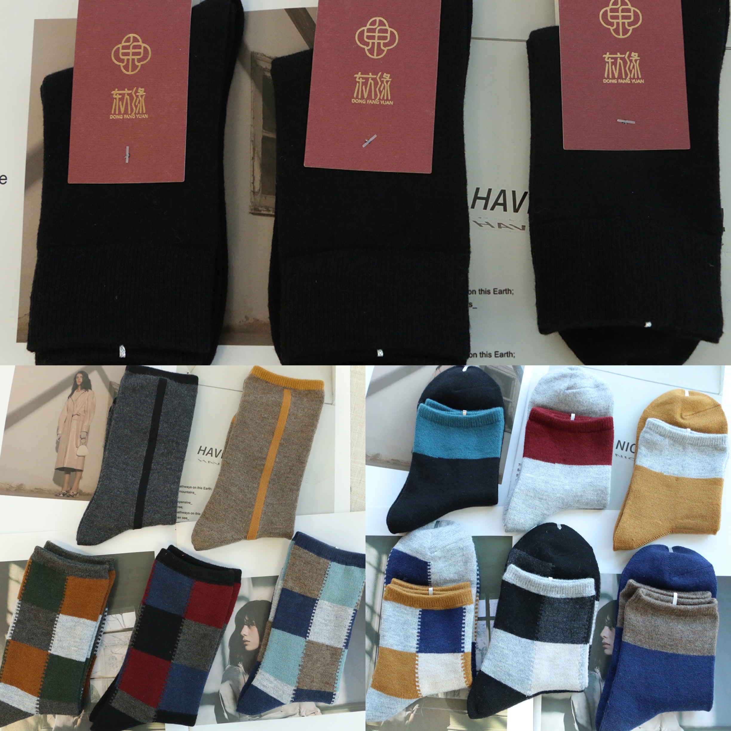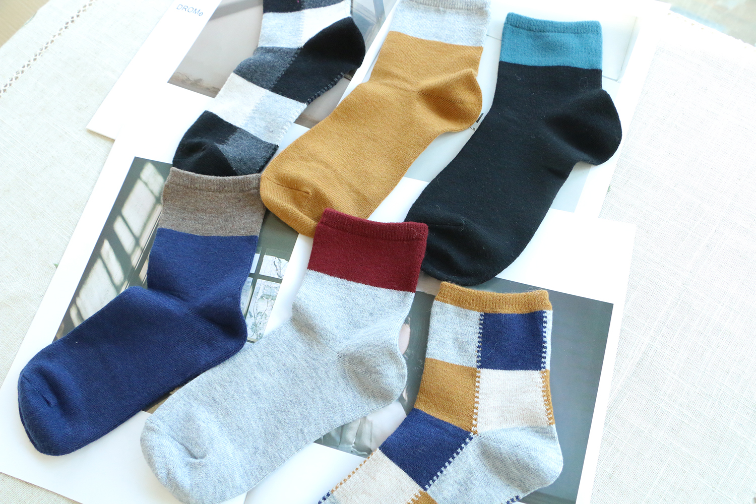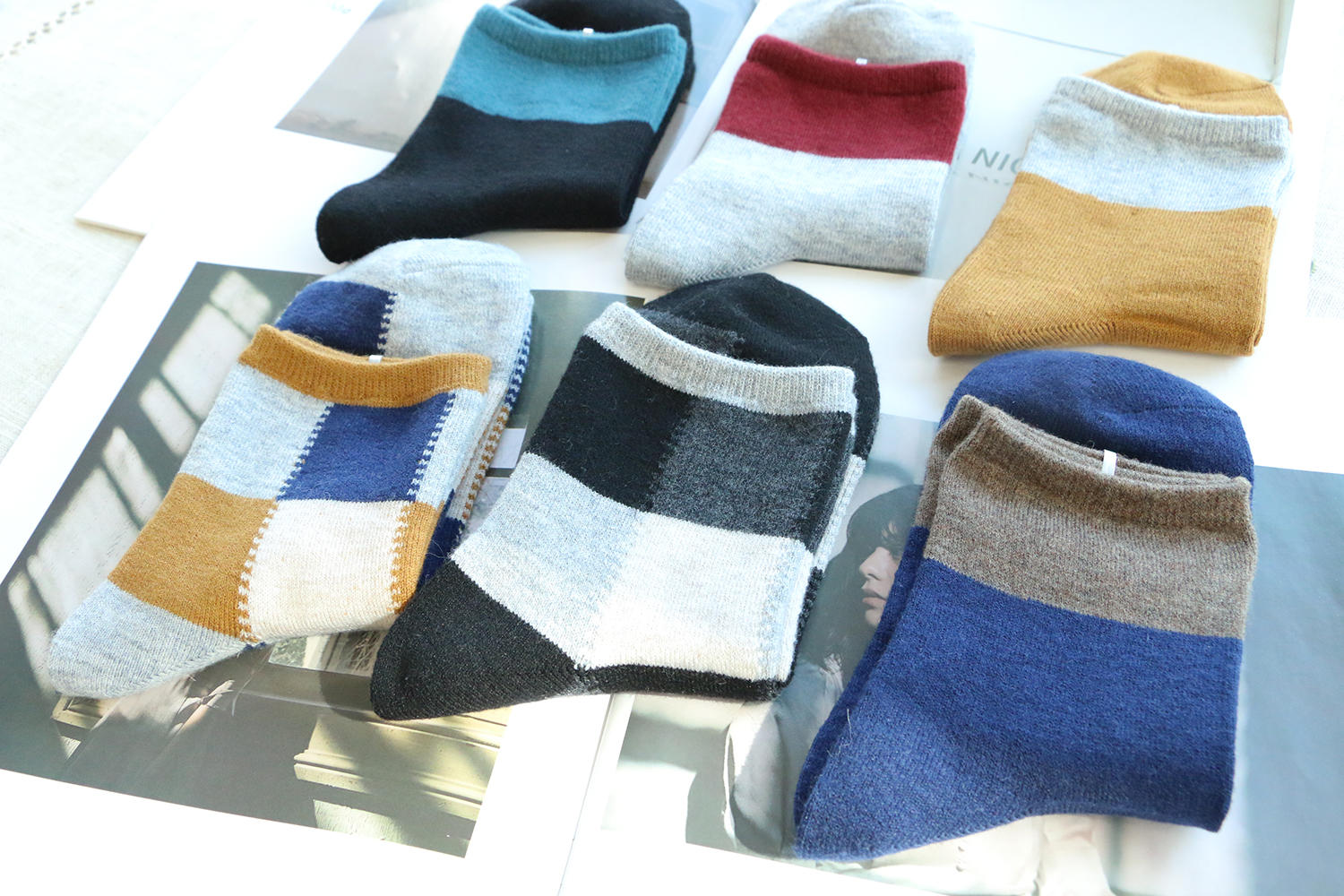 其次呢,羊毛袜的提花太漂亮了,女款我们上一组6色,男女款一组5色。女款6色,包括了4双收口拼色袜和2双格纹袜,姜黄、孔雀蓝、宝石蓝、圣诞红、驼色、麻灰、深灰,一撞色,偏顺色的优雅,格外日常。每一双我们上脚穿,都是好搭配的彩色袜,英伦,复古,不拘泥于基础色系,加入色彩,拼色袜露一个小边,冬天搭配一些日常look很实用。男女袜5色,包括3双格纹袜和2双单条纹袜,圣诞绿、红、黑、蓝、驼色,中性配色,可以很好融入秋冬穿搭。(女袜袜筒低一些,男女袜更高一些哦)