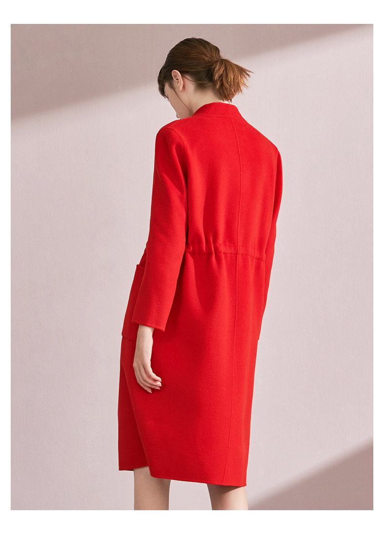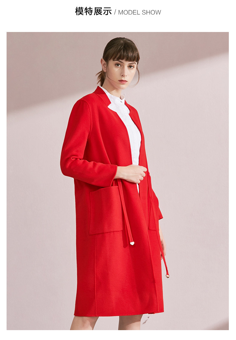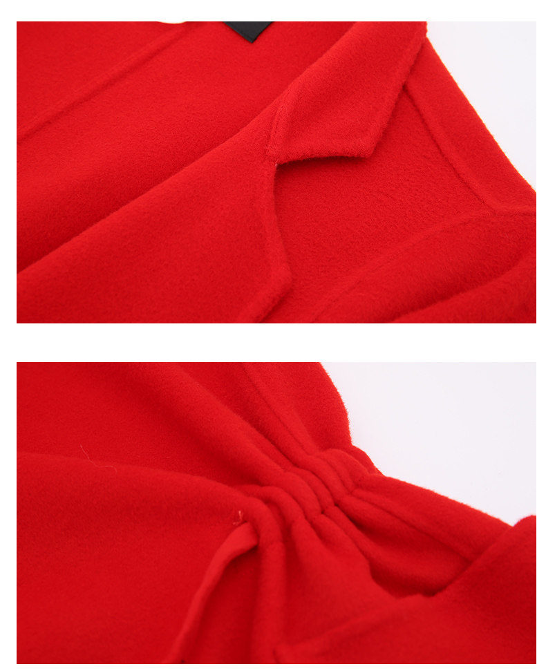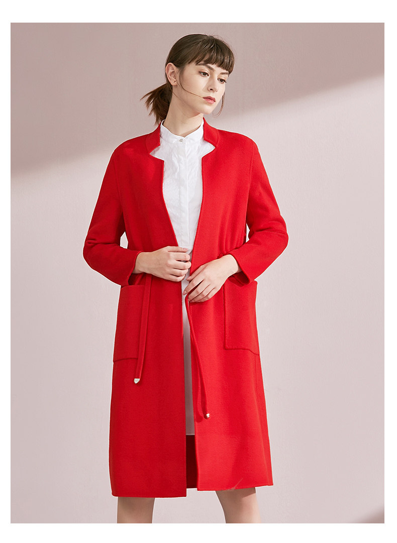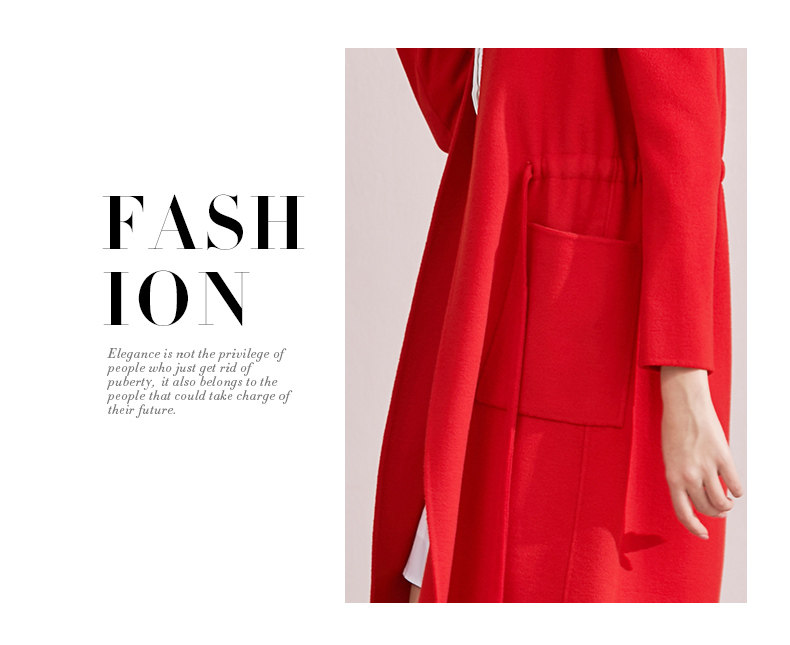 VIMAGE纬漫纪品牌女装冬季系带修身毛呢外套女中长款V1014618
