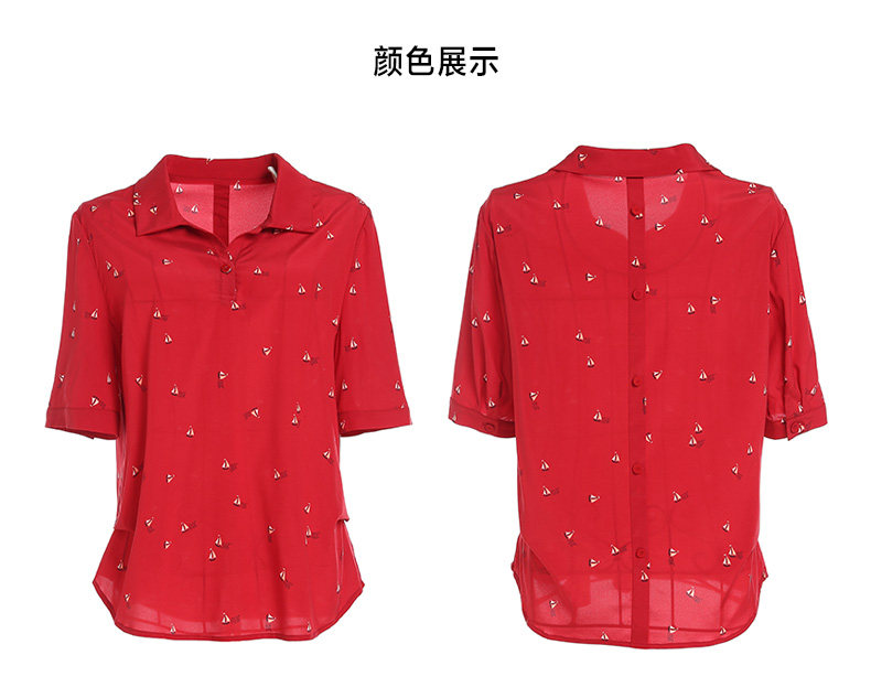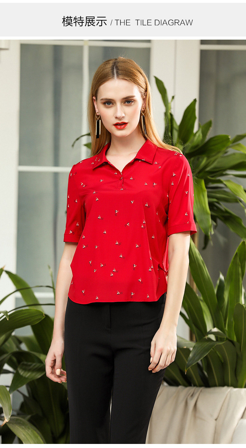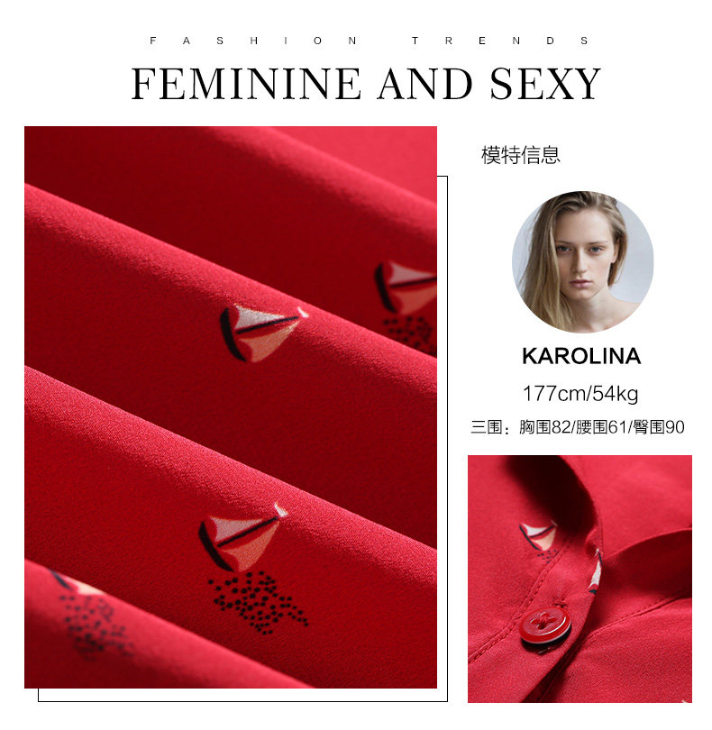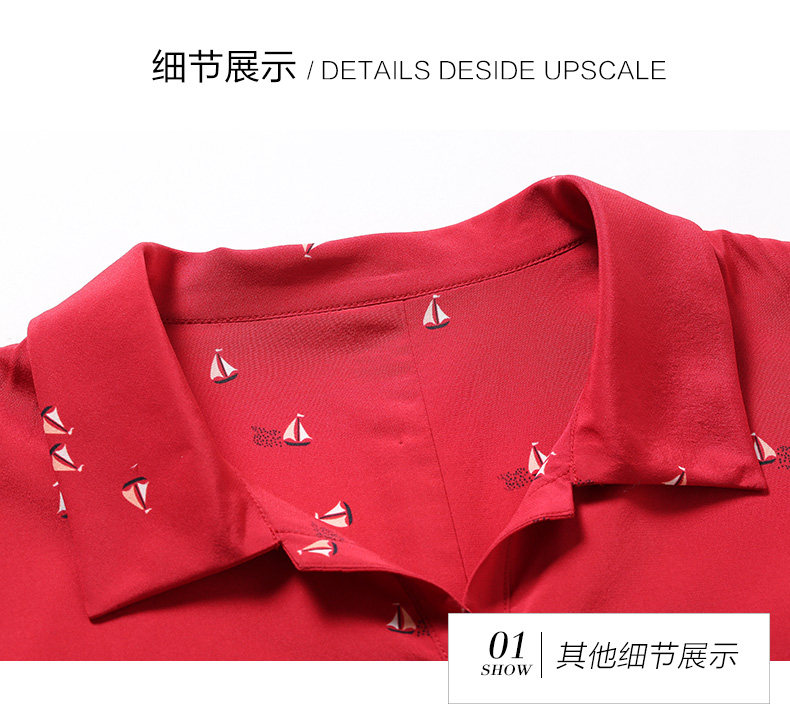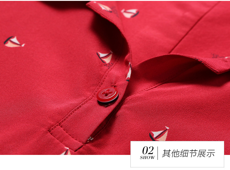 乔万尼夏季女桑蚕丝印花衬衫简约时尚气质收腰真丝上衣EN2C531