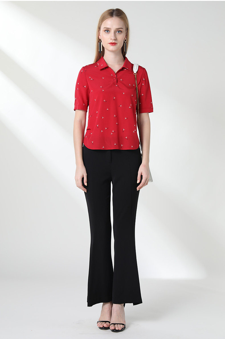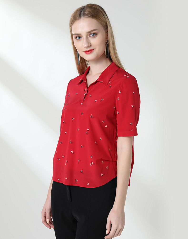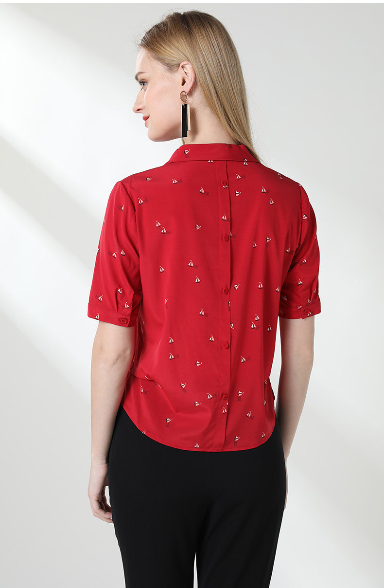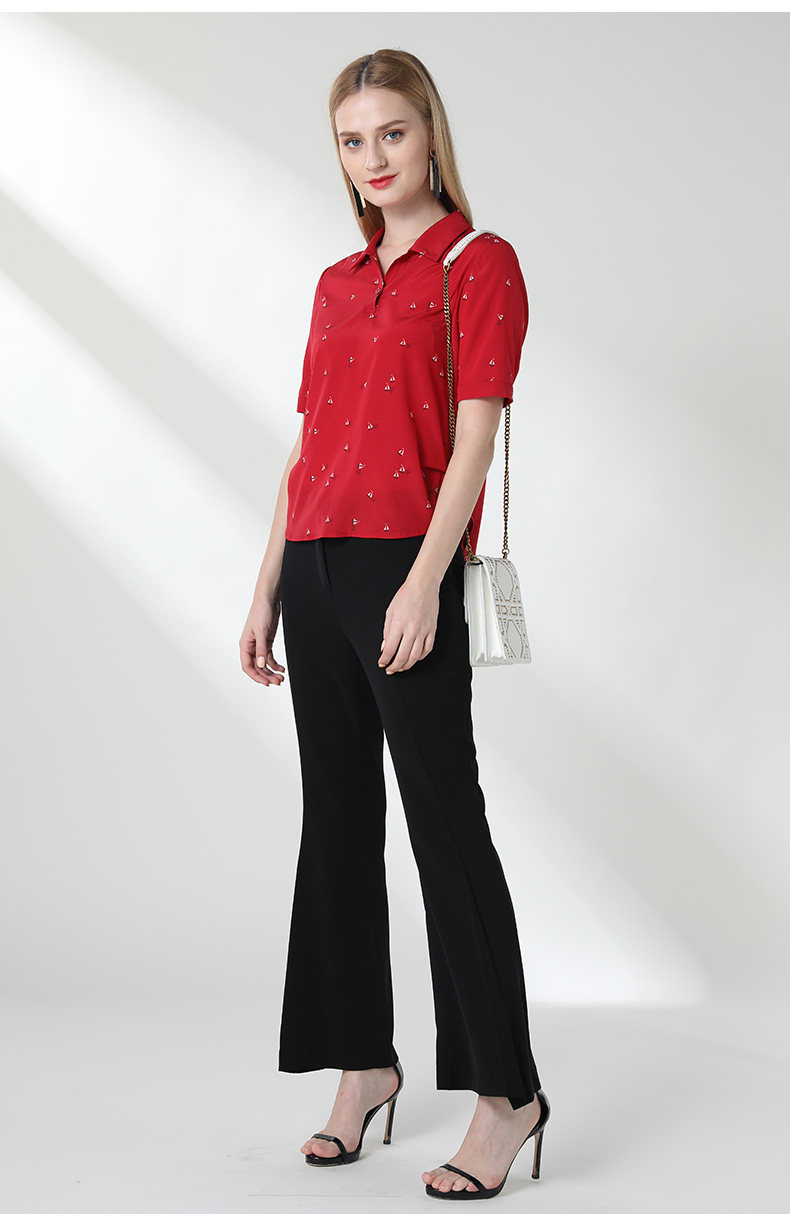 乔万尼夏季女桑蚕丝印花衬衫简约时尚气质收腰真丝上衣EN2C531