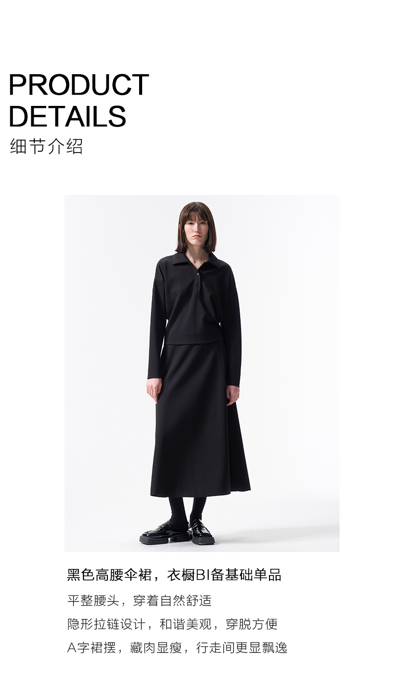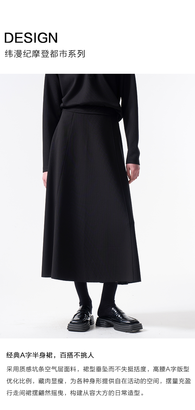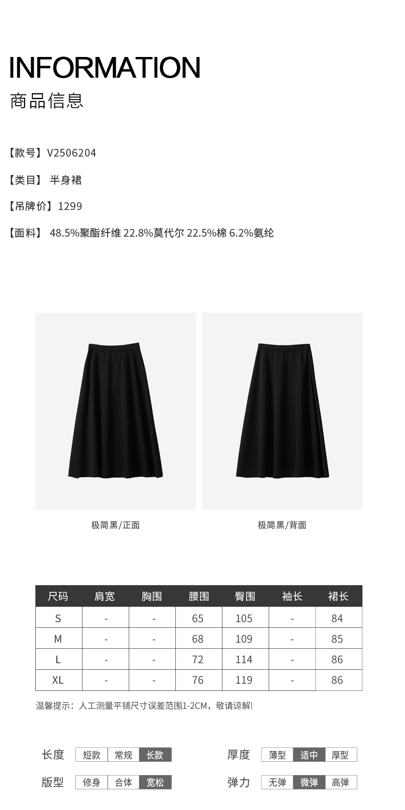 VIMAGE纬漫纪垂坠质感女士简约黑色高腰A字半身裙2026春季新款V2506204