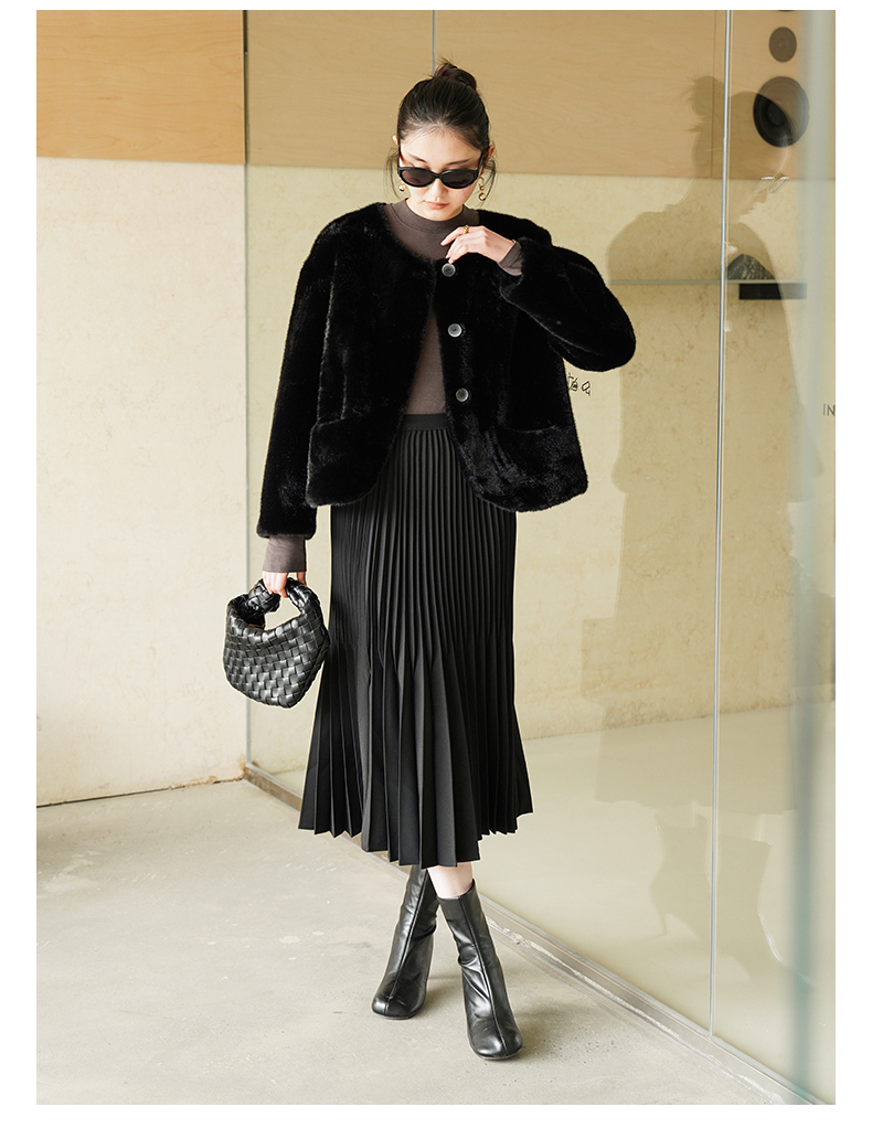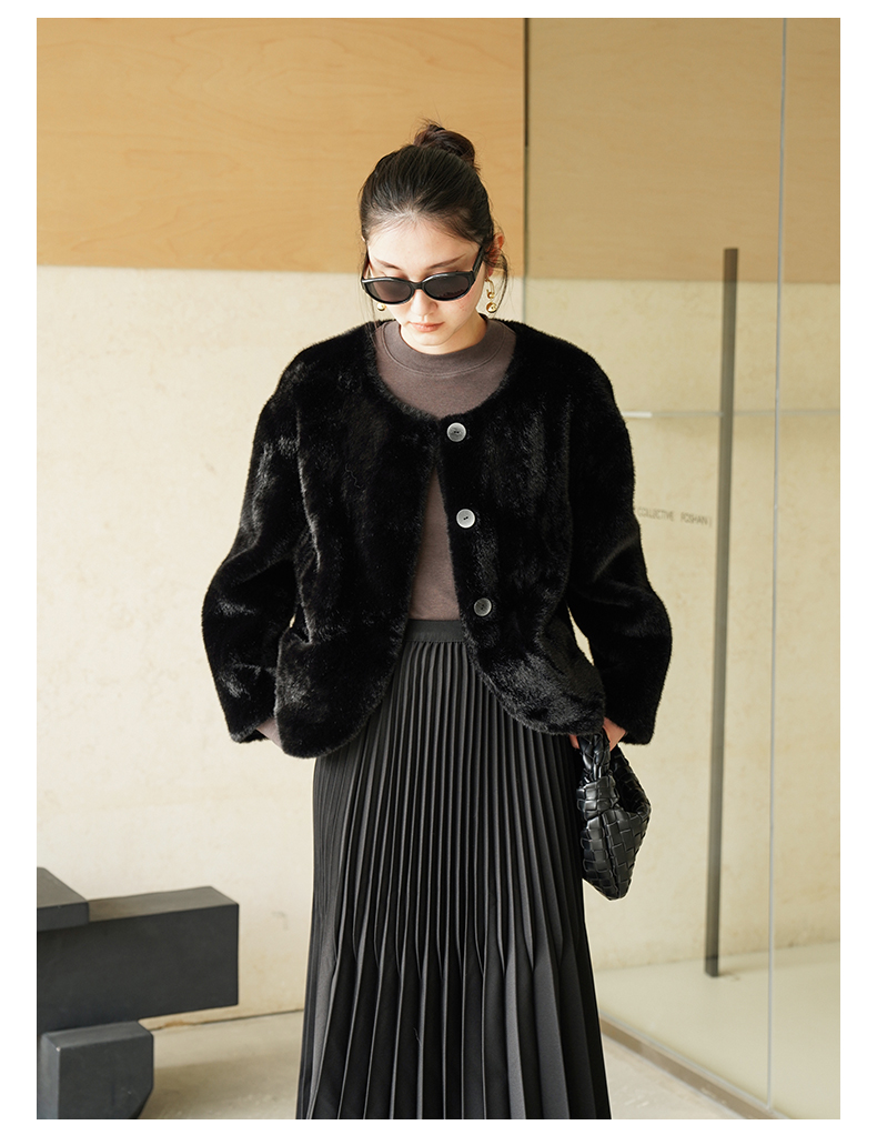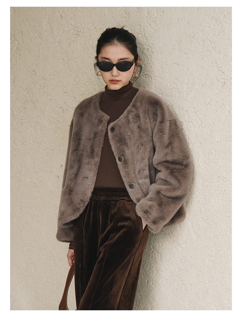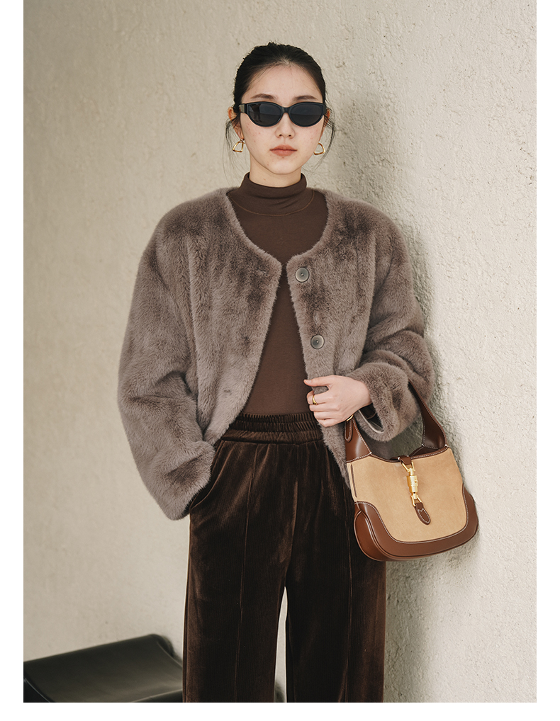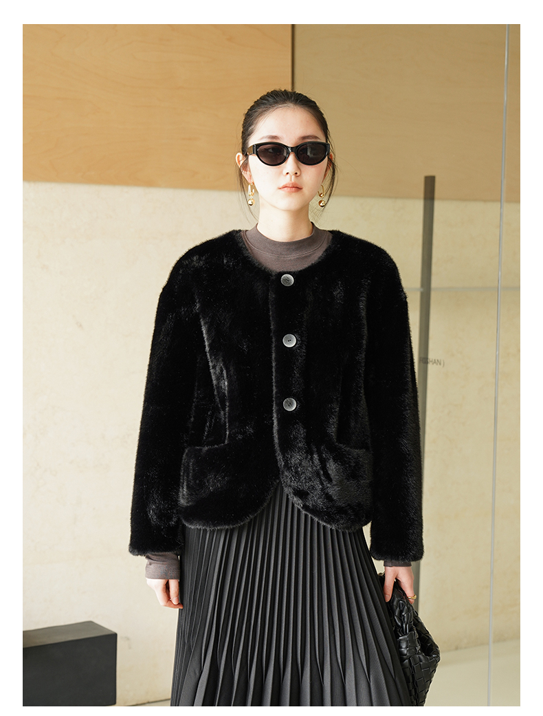 IN AND ON 皮毛一体高级感外套女秋冬新款经典金貂绒环保皮草上衣53880