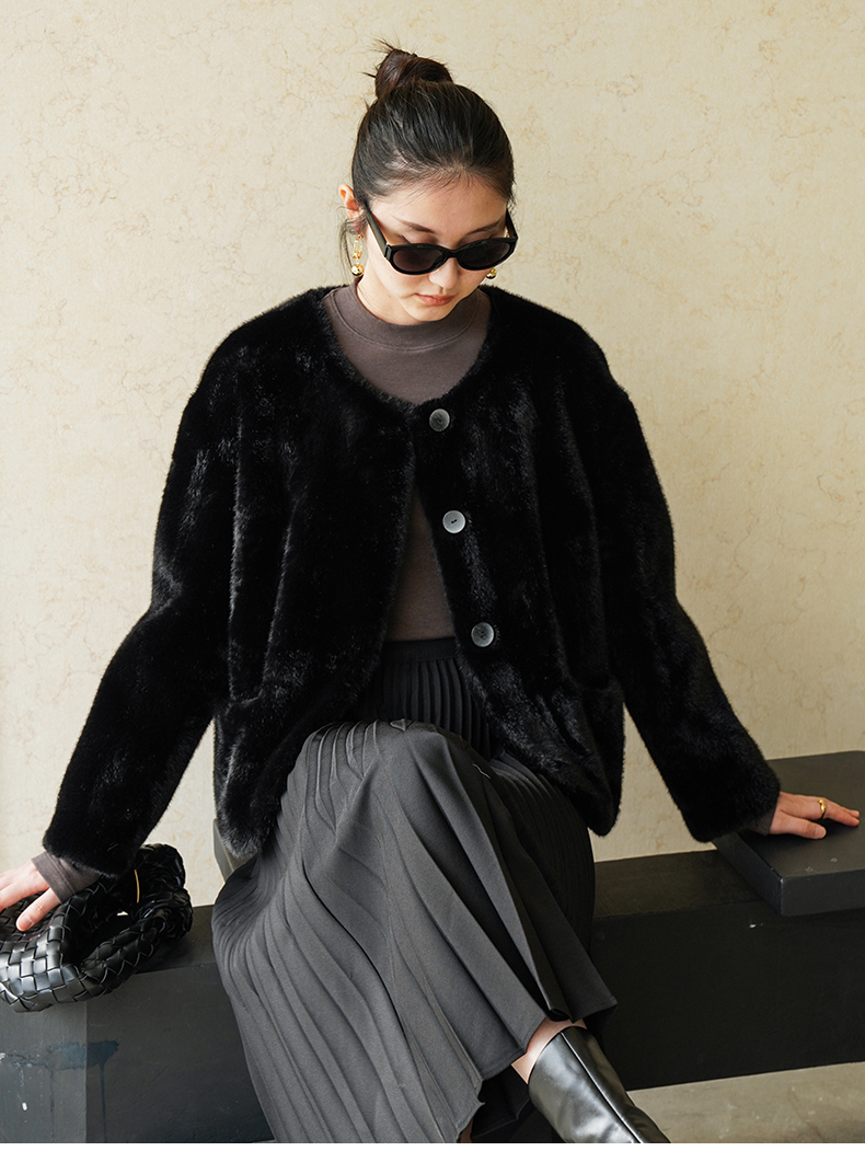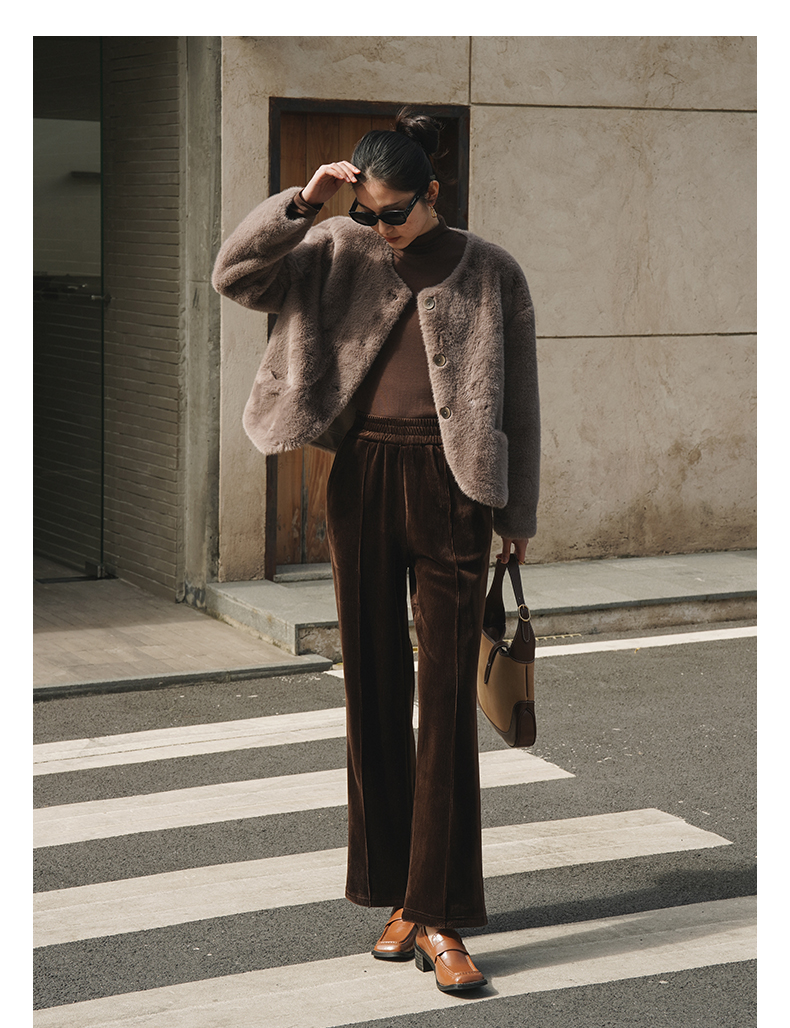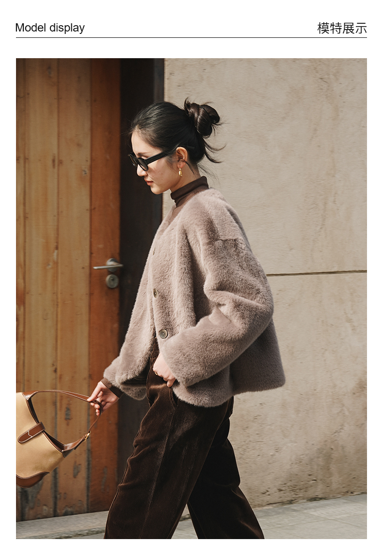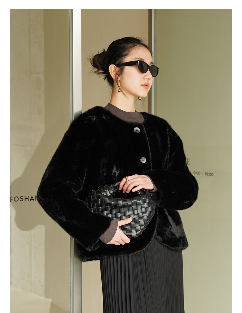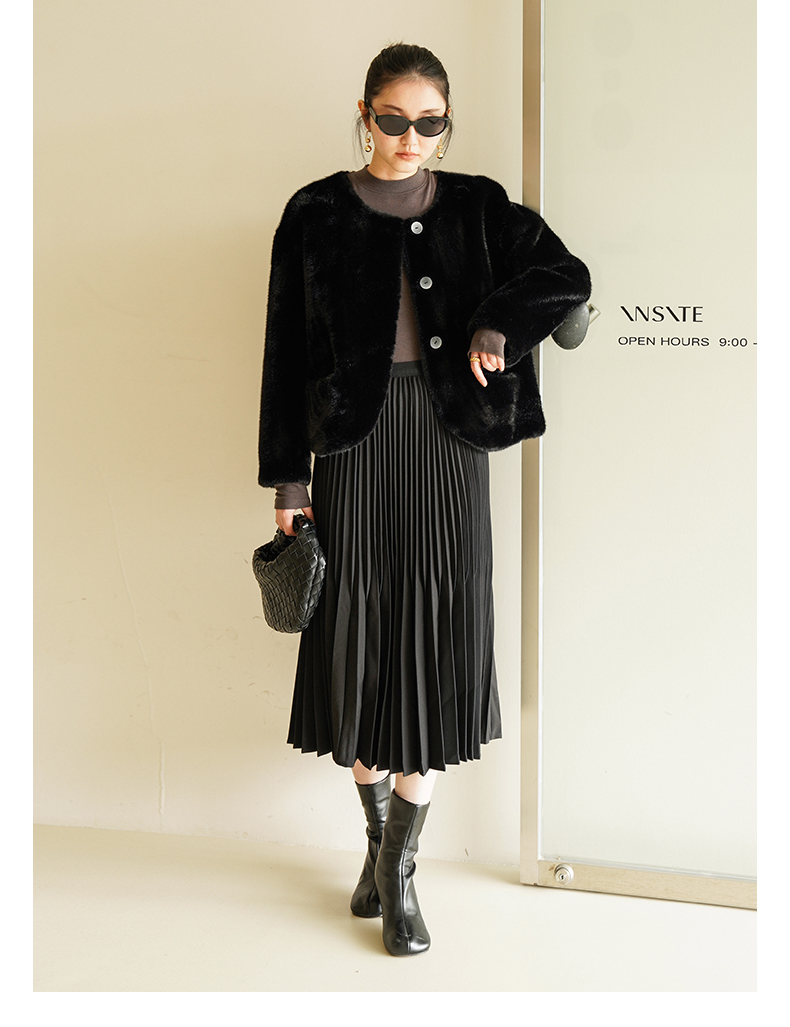IN AND ON 皮毛一体高级感外套女秋冬新款经典金貂绒环保皮草上衣53880