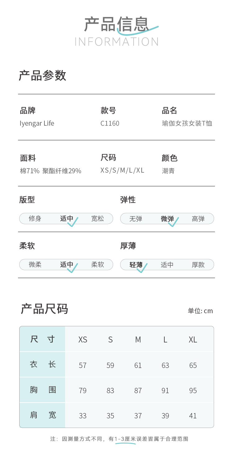 艾扬格life C1160瑜伽女孩女装瑜伽短袖T恤