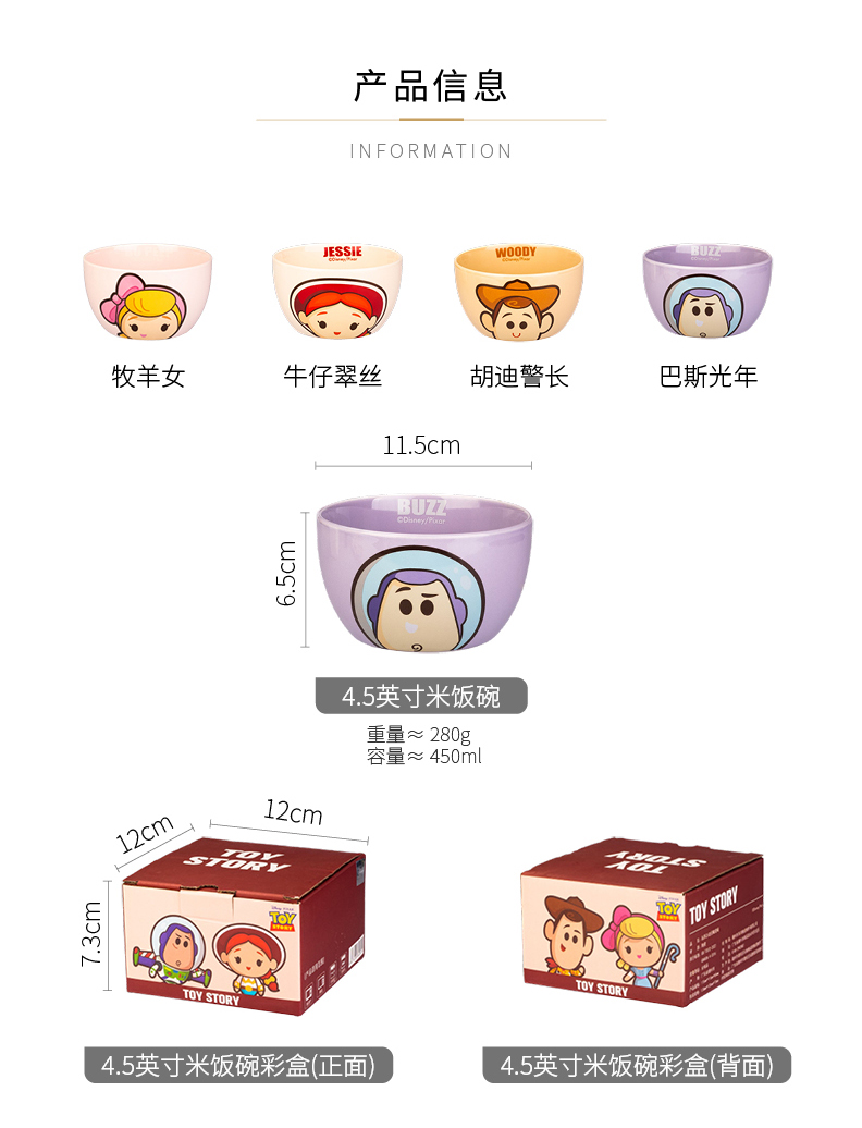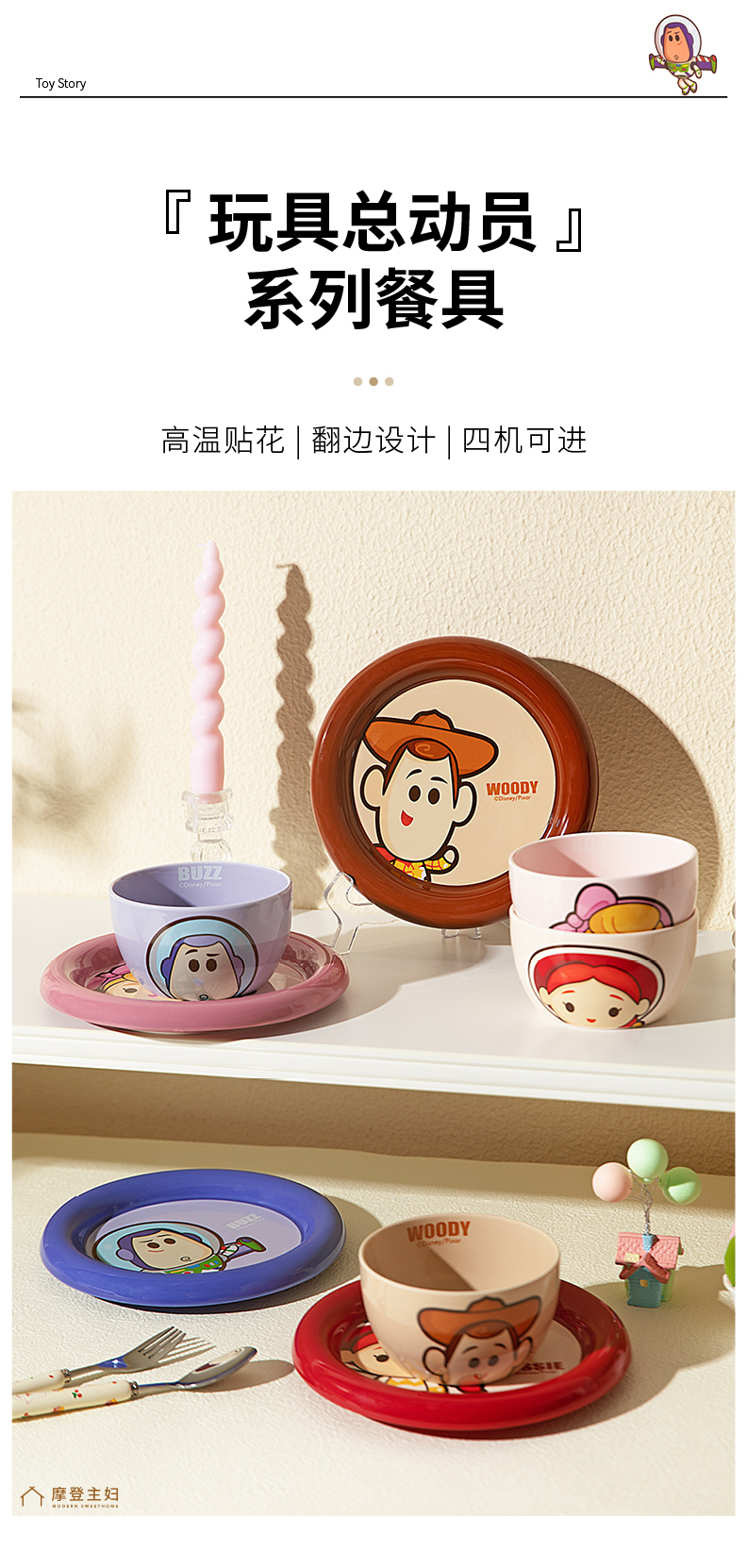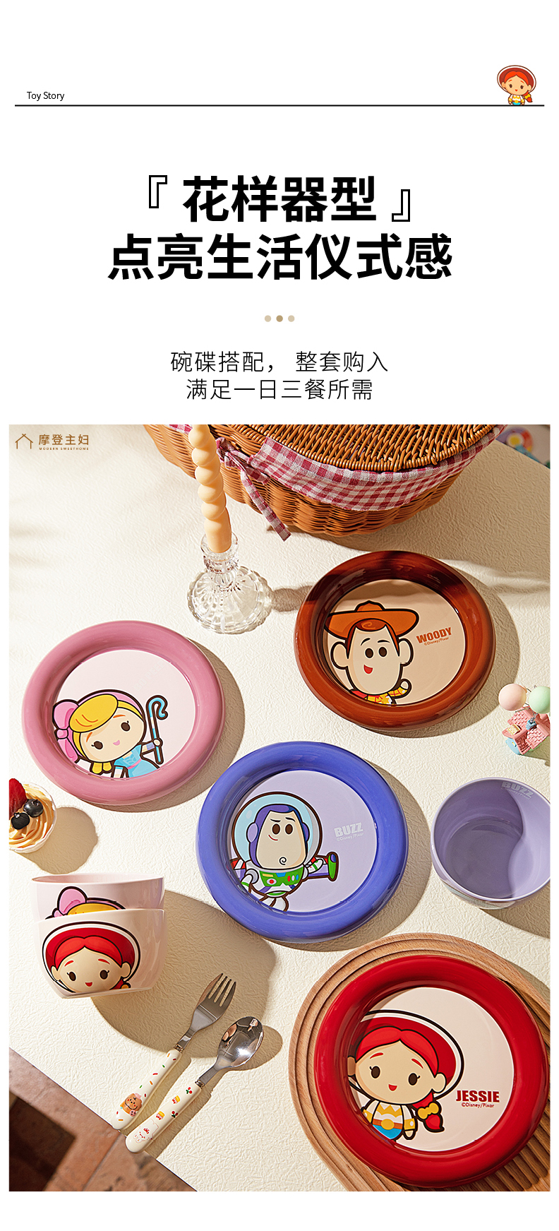 摩登主妇餐具迪士尼儿童饭碗早餐盘可爱陶瓷米饭碗家用盘子水果碗