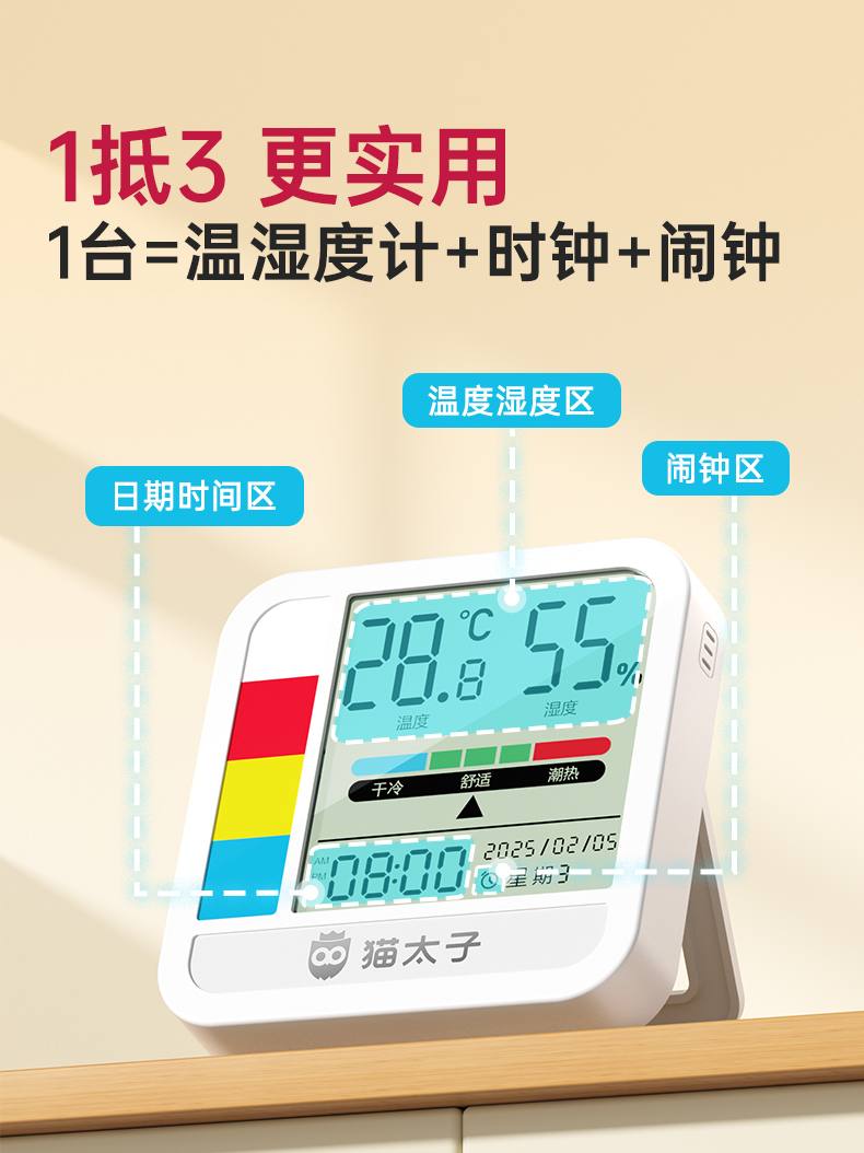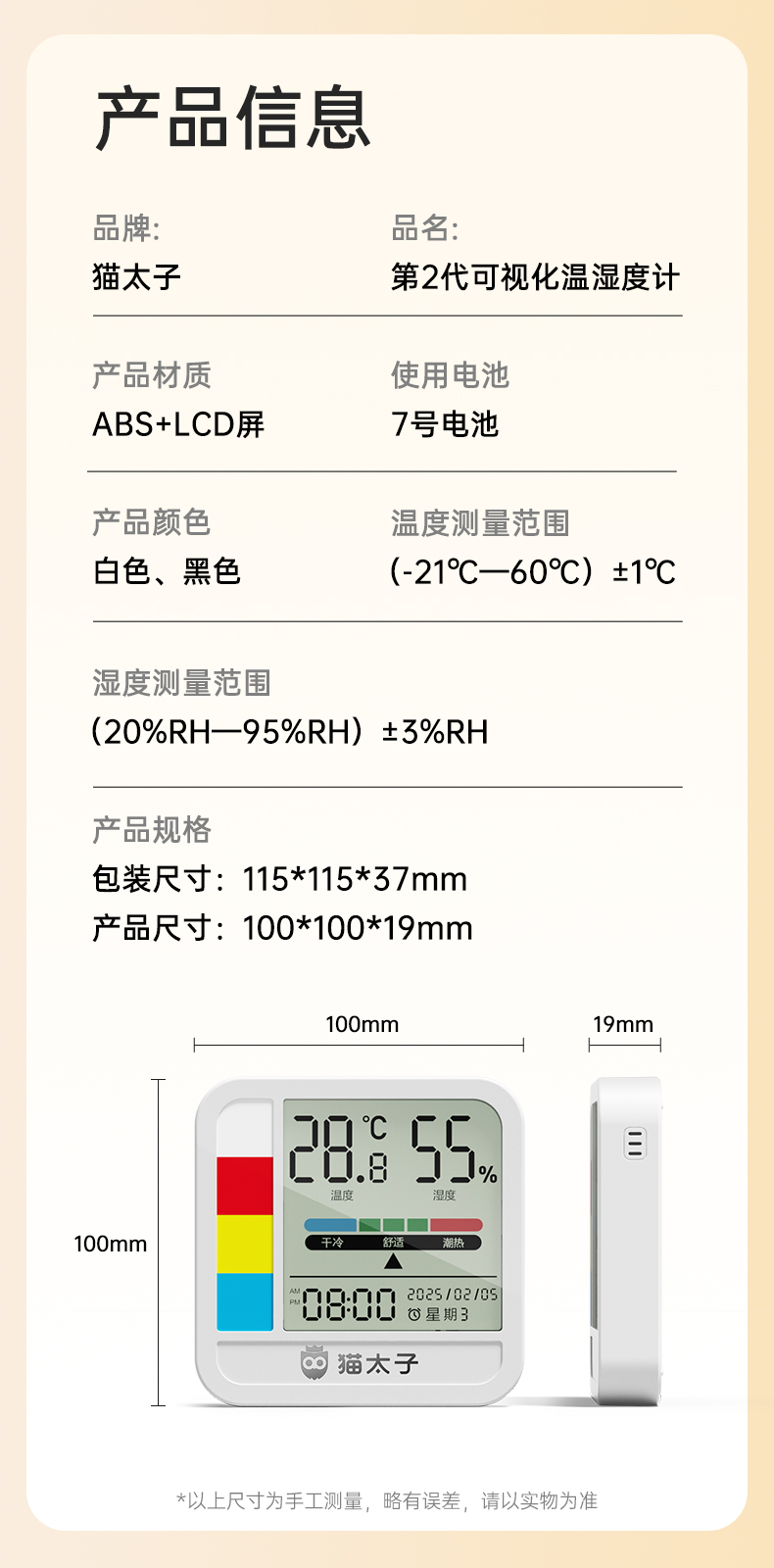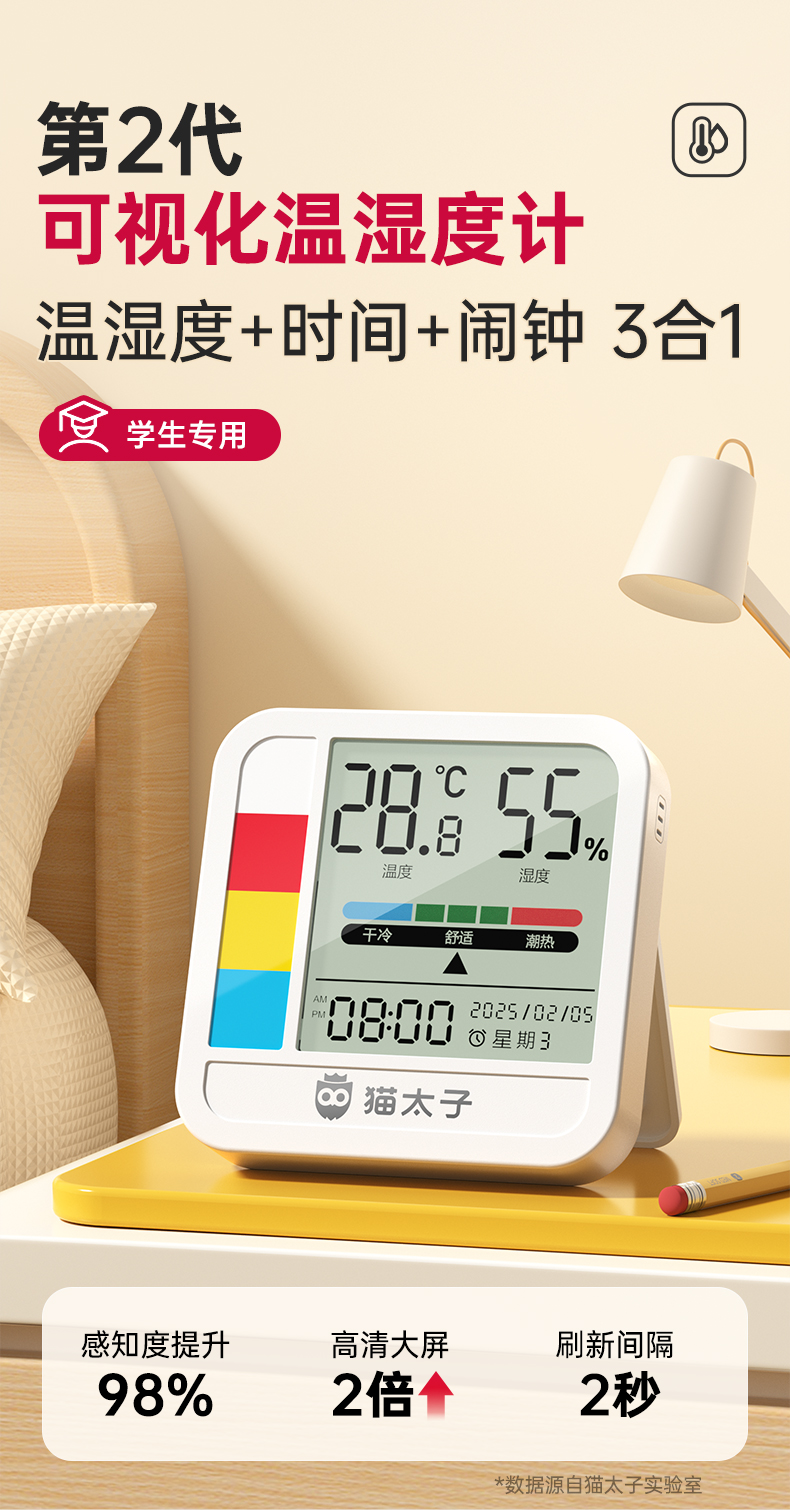 【开学季】【限时秒杀】猫太子 第2代智能可视化温湿度计家用磁吸壁挂式湿度表