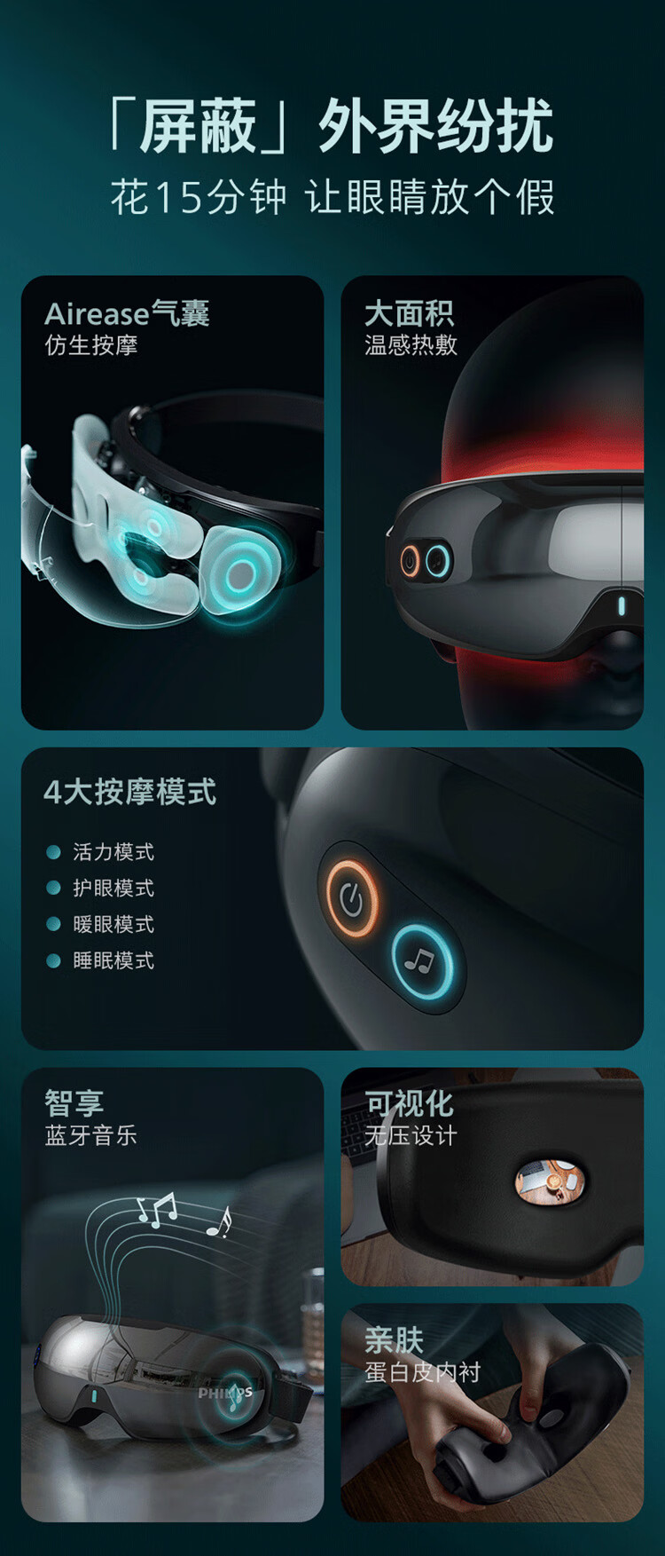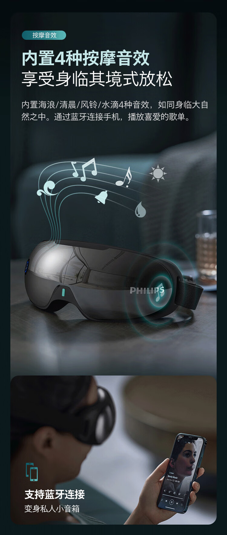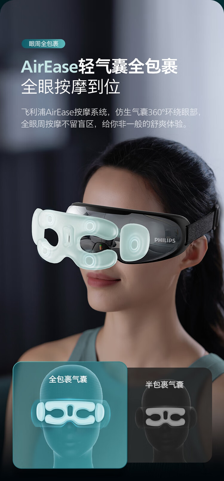 飞利浦(PHILIPS)眼部按摩仪护眼仪 热敷眼罩全包裹仿生气囊眼睛按摩器舒缓眼疲劳神器蓝牙送男女友父母礼物PPM3203E