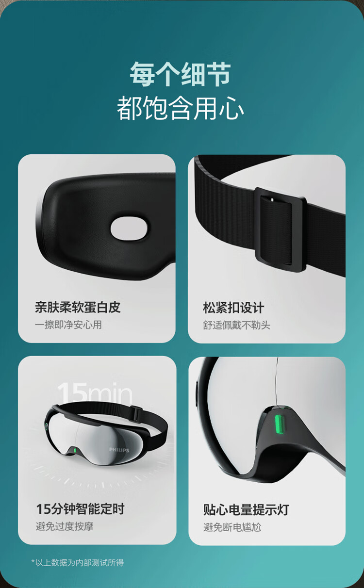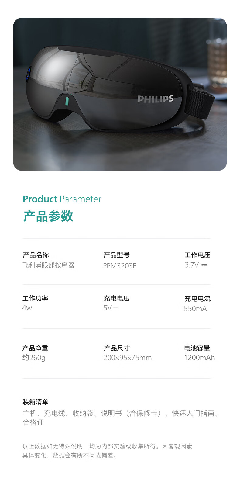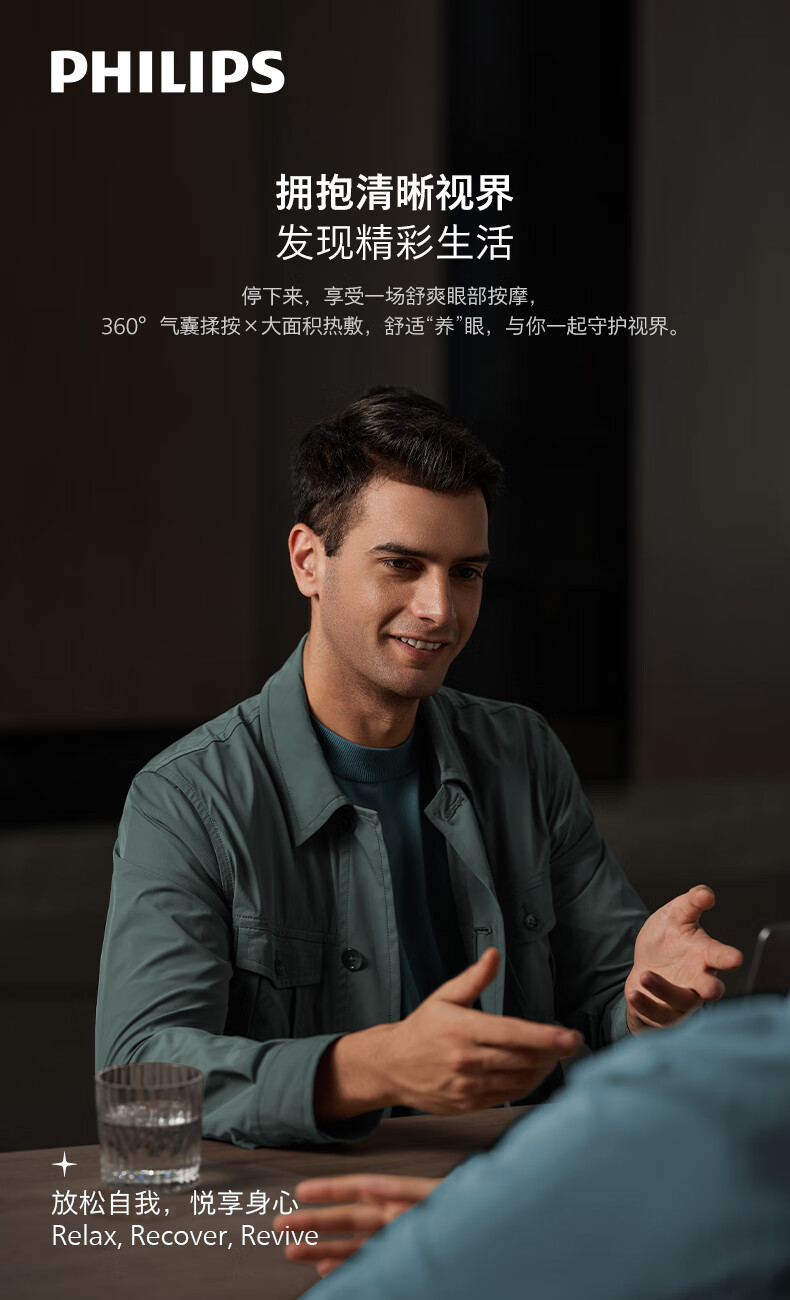 飞利浦(PHILIPS)眼部按摩仪护眼仪 热敷眼罩全包裹仿生气囊眼睛按摩器舒缓眼疲劳神器蓝牙送男女友父母礼物PPM3203E