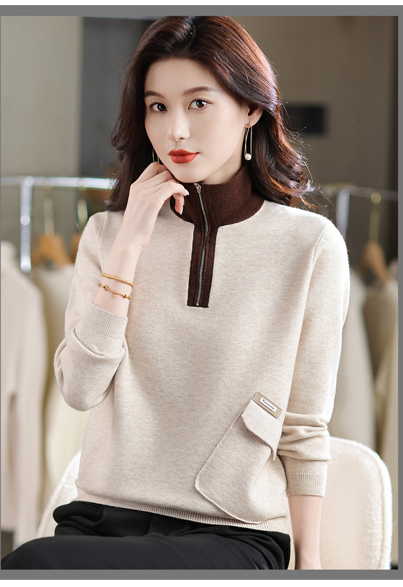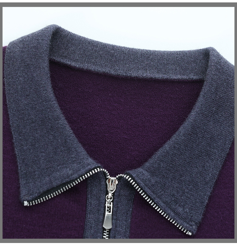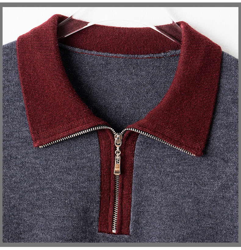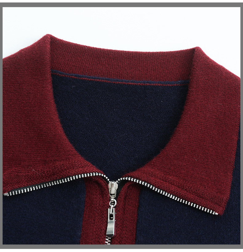 QF 105-1257翻领针织衫拼色宽松休闲毛衣 商品图4