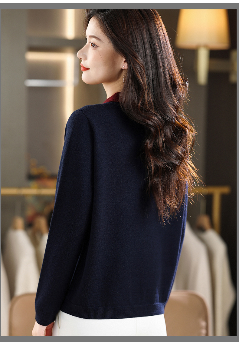 QF 105-1257翻领针织衫拼色宽松休闲毛衣 商品图3