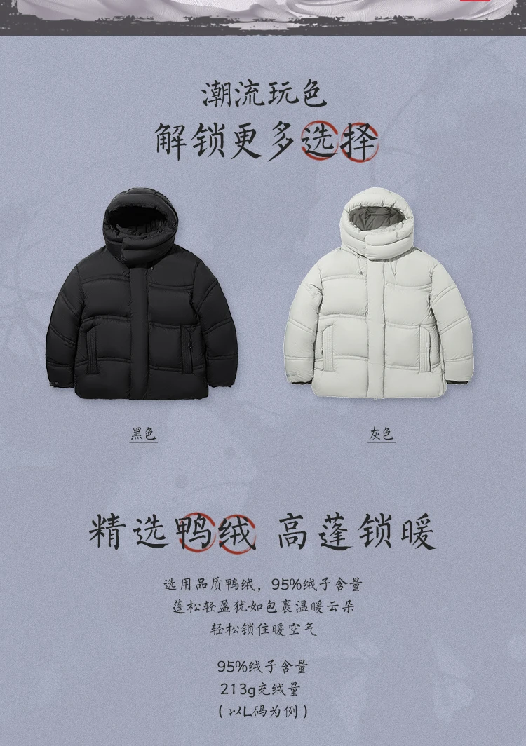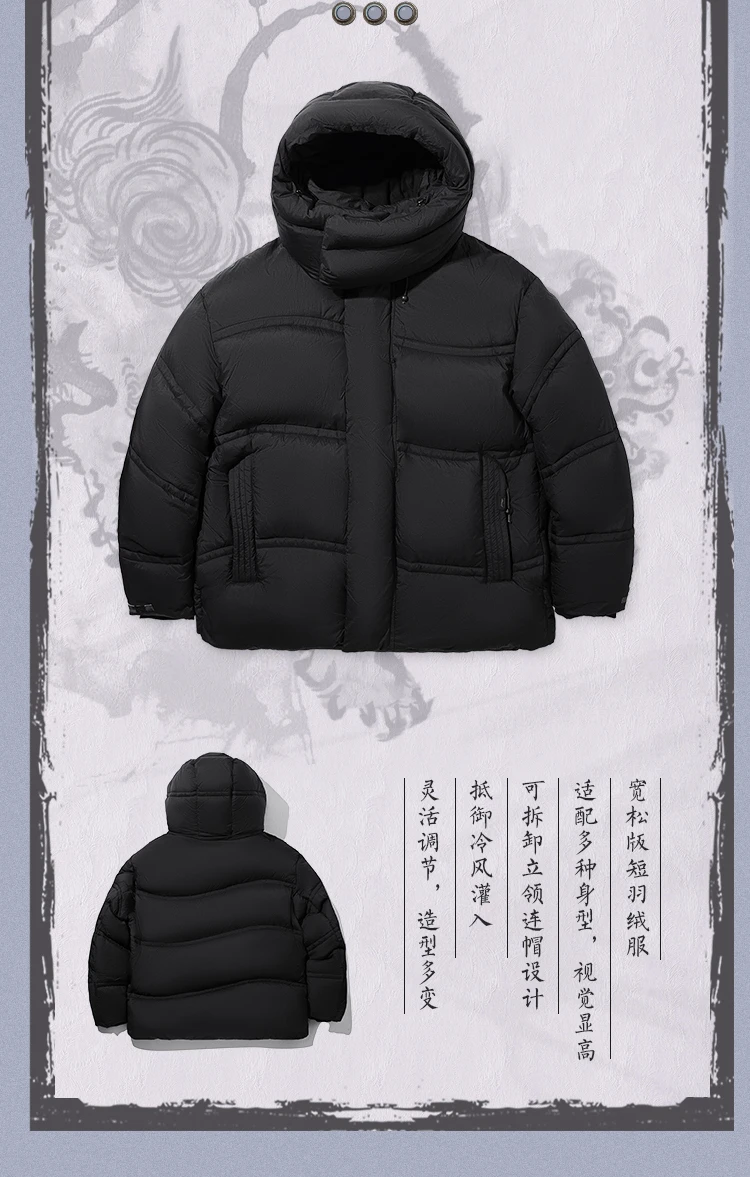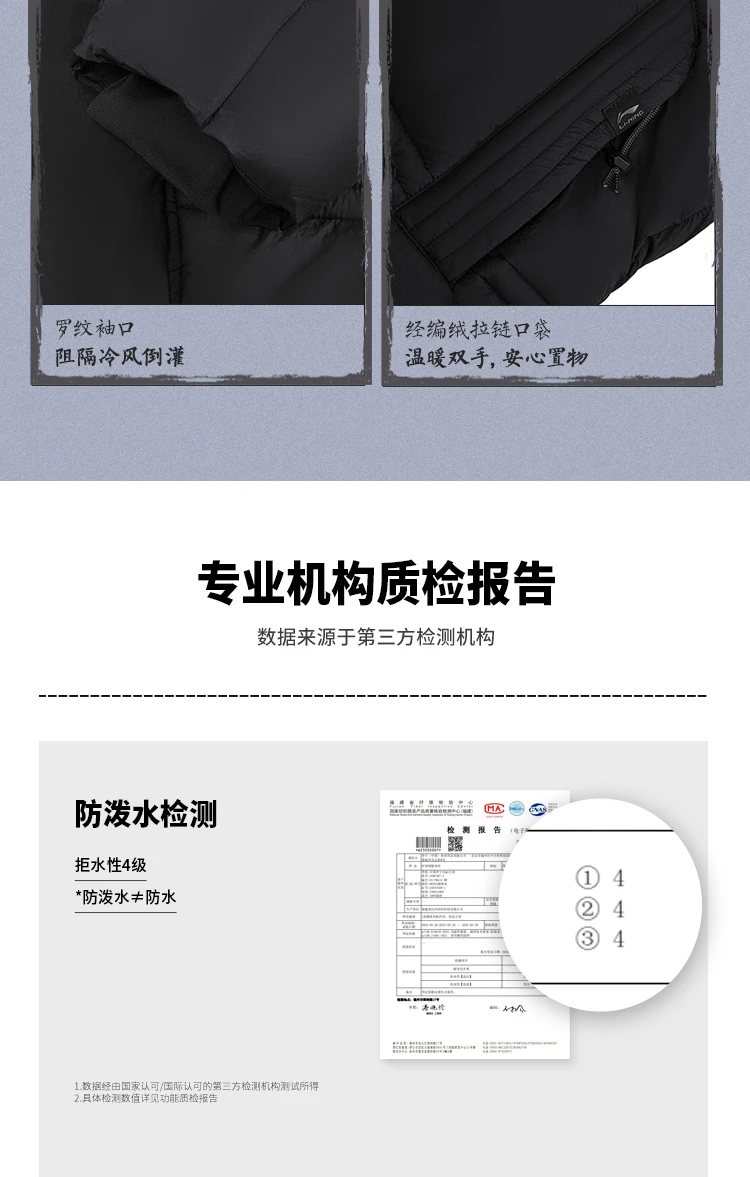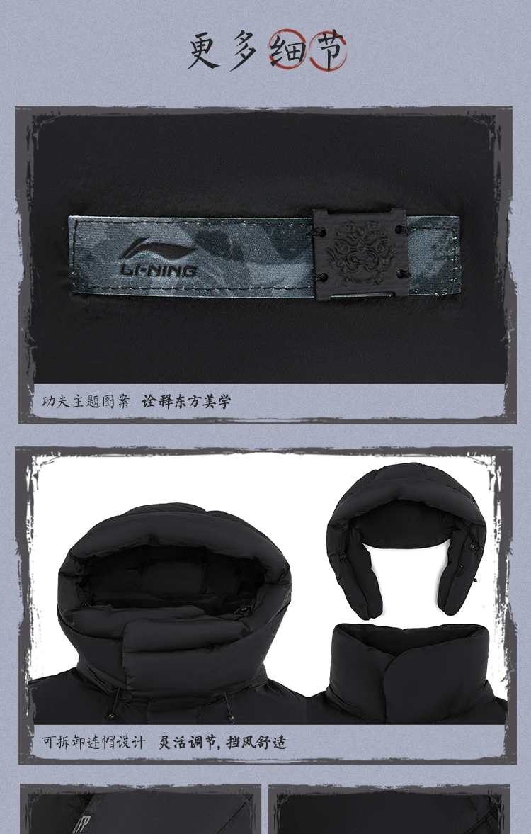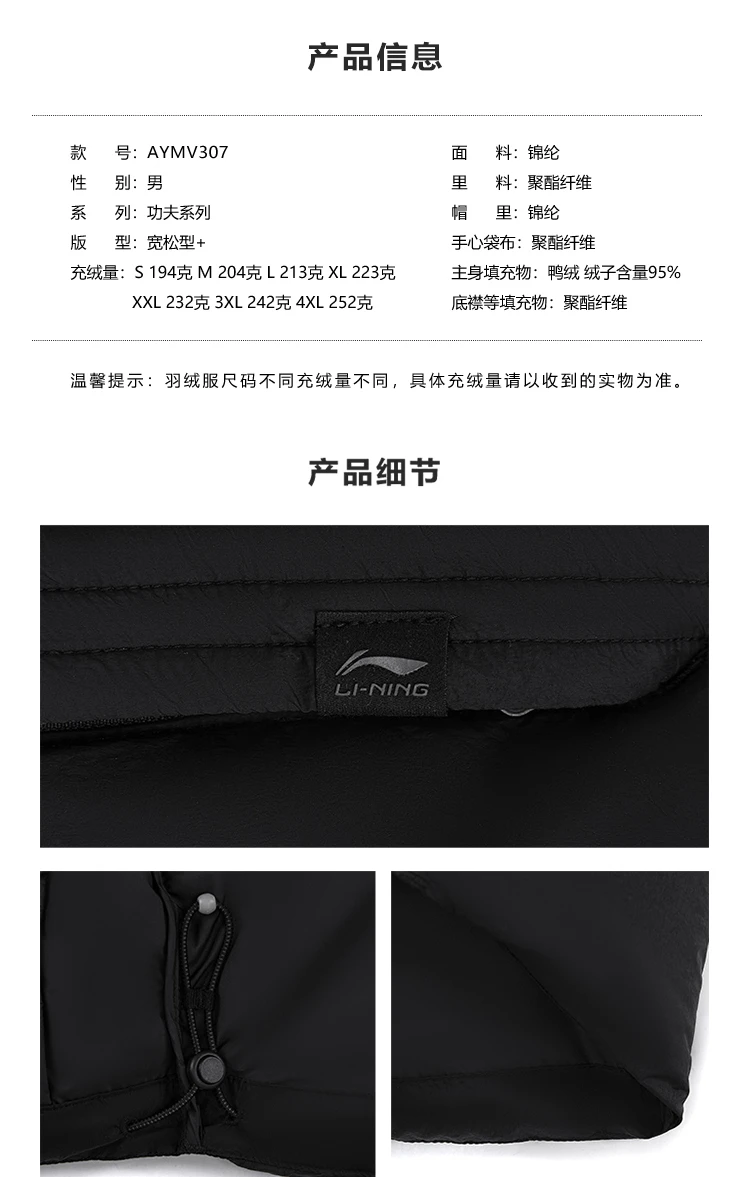 中国李宁功夫系列男子防泼水宽松95%鸭绒短羽绒服AYMV307