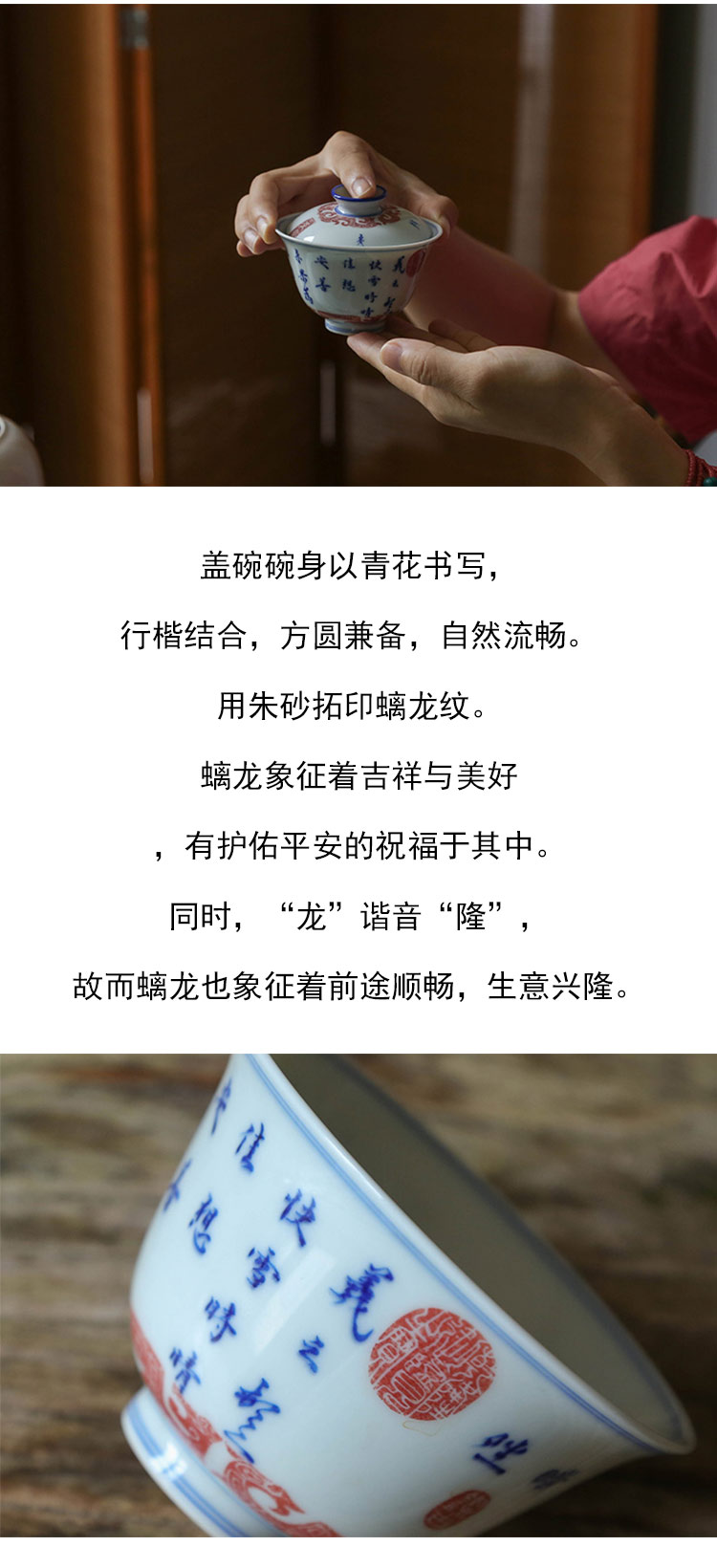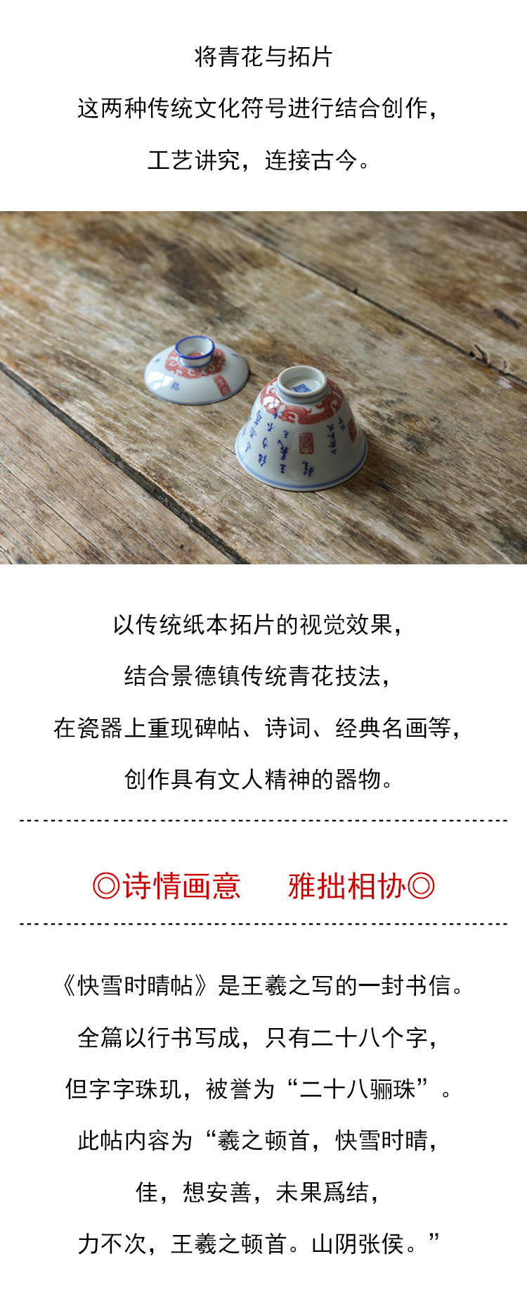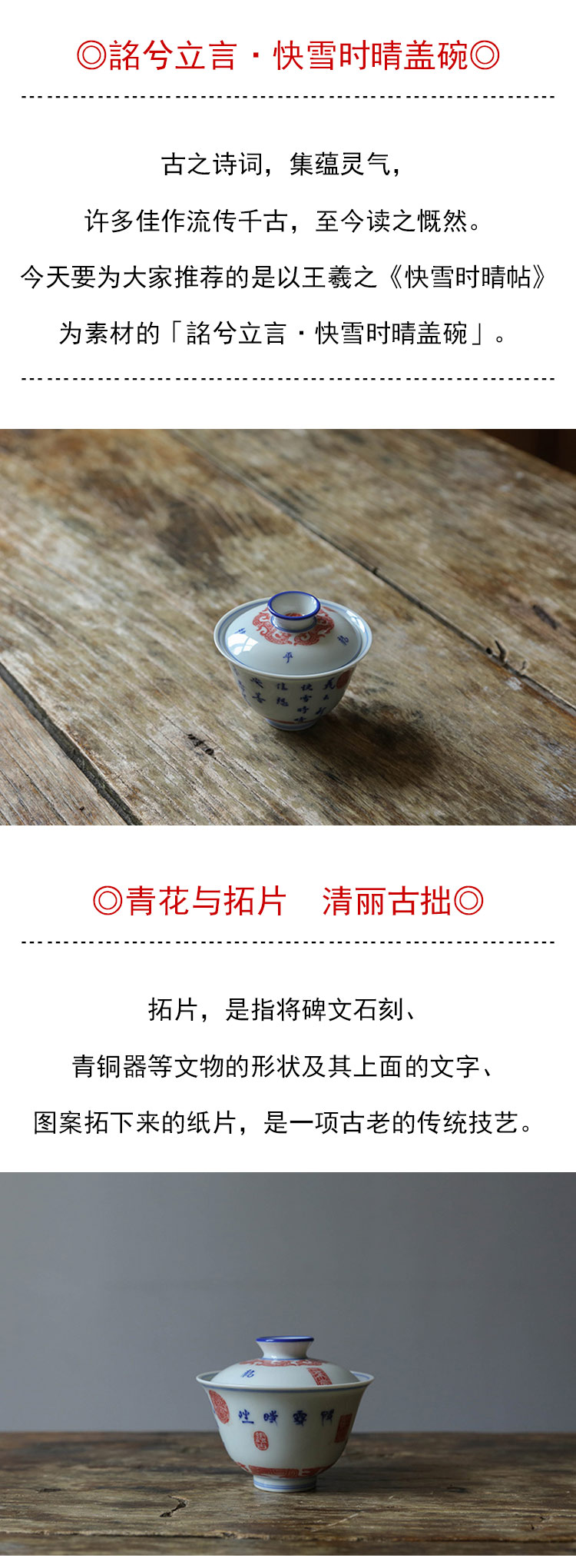 茶香记 詺兮立言·快雪时晴盖碗 手绘青花 朱砂拓片 诗情画意 雅拙相协