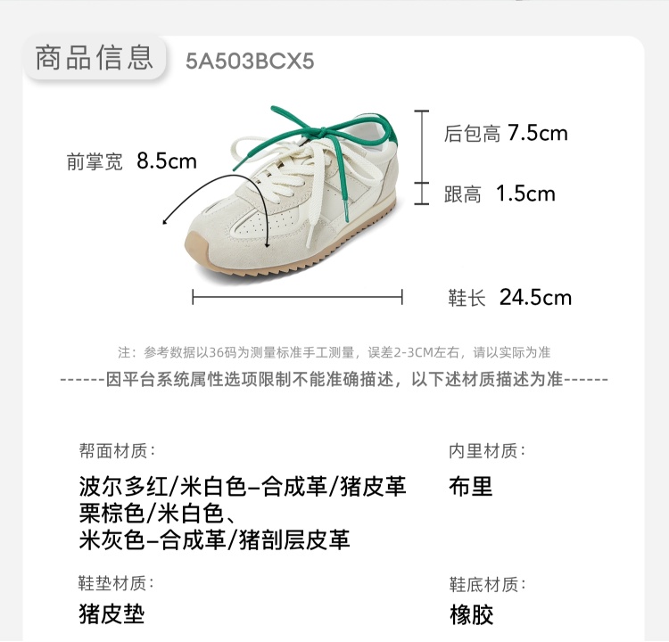 康莉KBH5A503阿甘鞋棕色德训鞋女春季新款软底休闲鞋平底鞋运动鞋