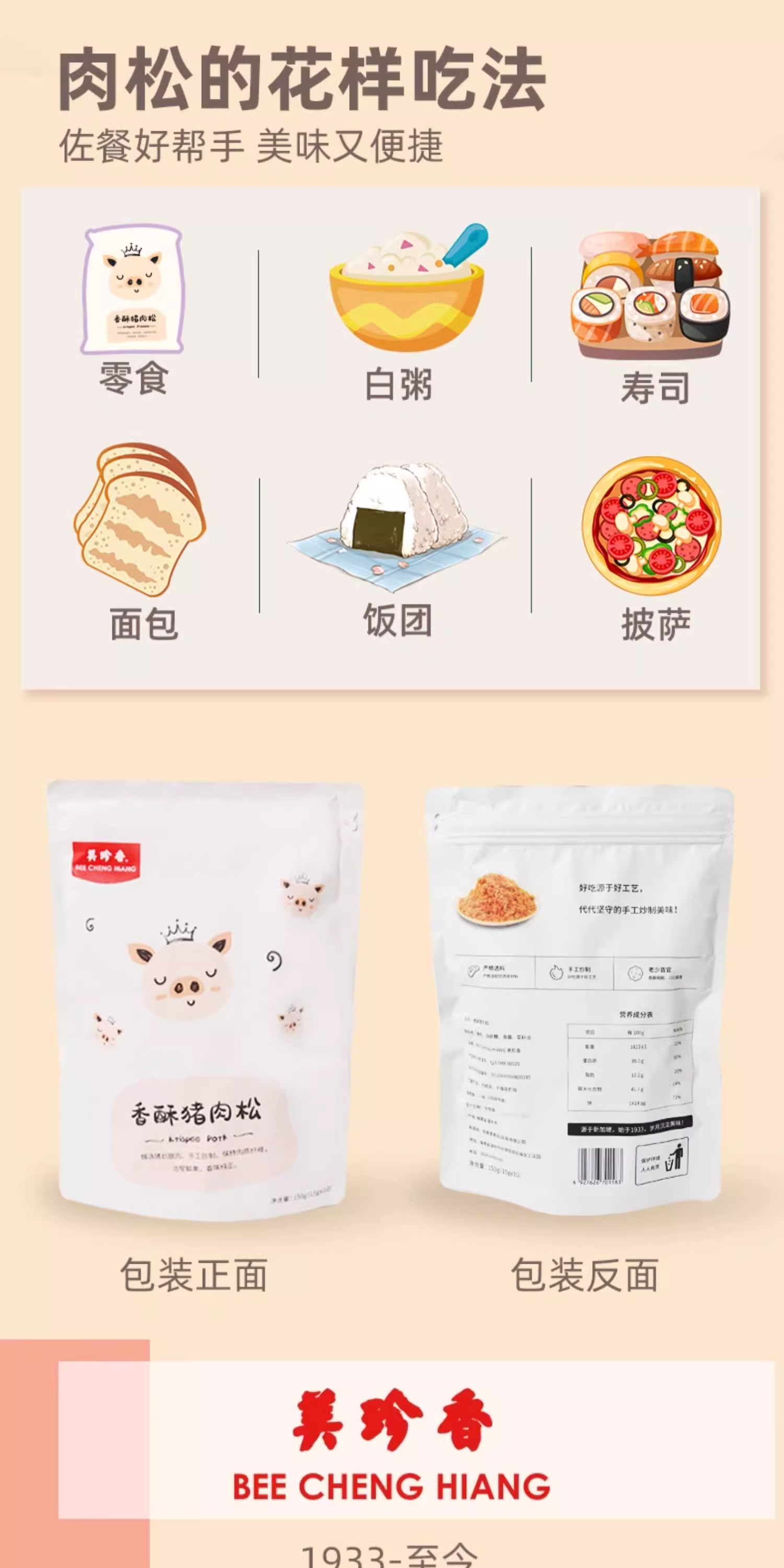 美珍香香酥猪肉松120g(15g*8袋)新加坡特产寿司烘焙香脆健康零食独立小包装