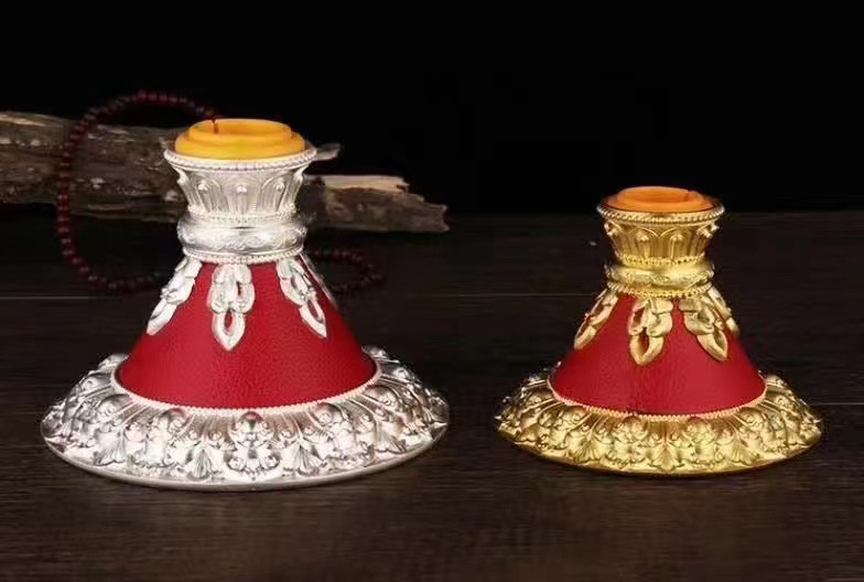 手摇转经轮底座亚青红皮合金莲花底座佛教用品密宗手摇转经筒底座大小号