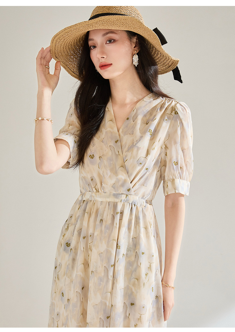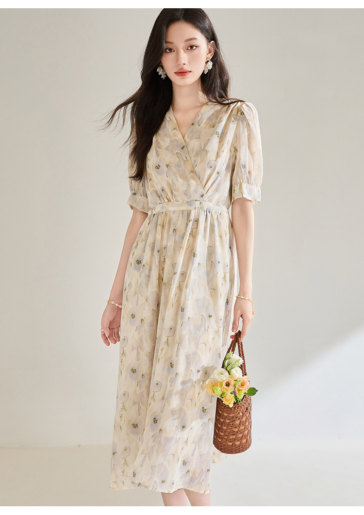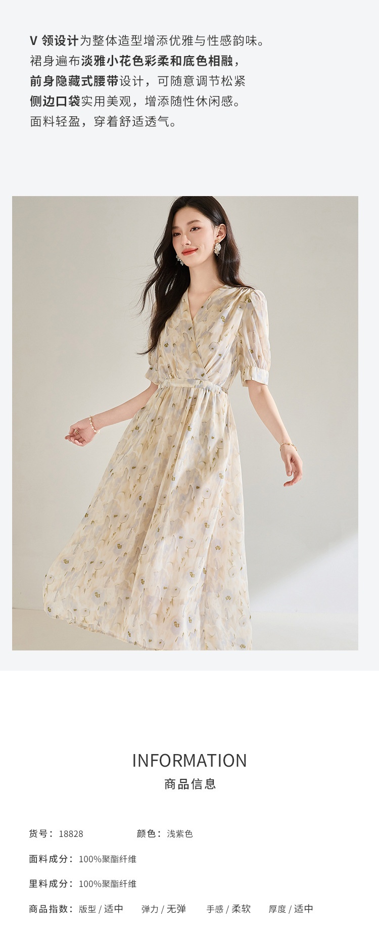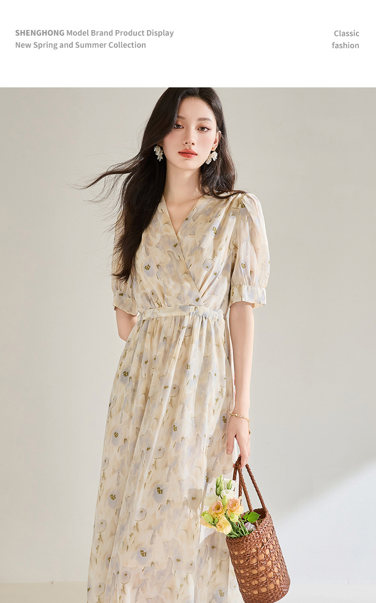 「高货sh」全新升级【铂金会员220/天猫299/差价79】(10336)洛诗琳法式温柔风碎花v领连衣裙2025夏季减龄收腰沙滩裙sh10336