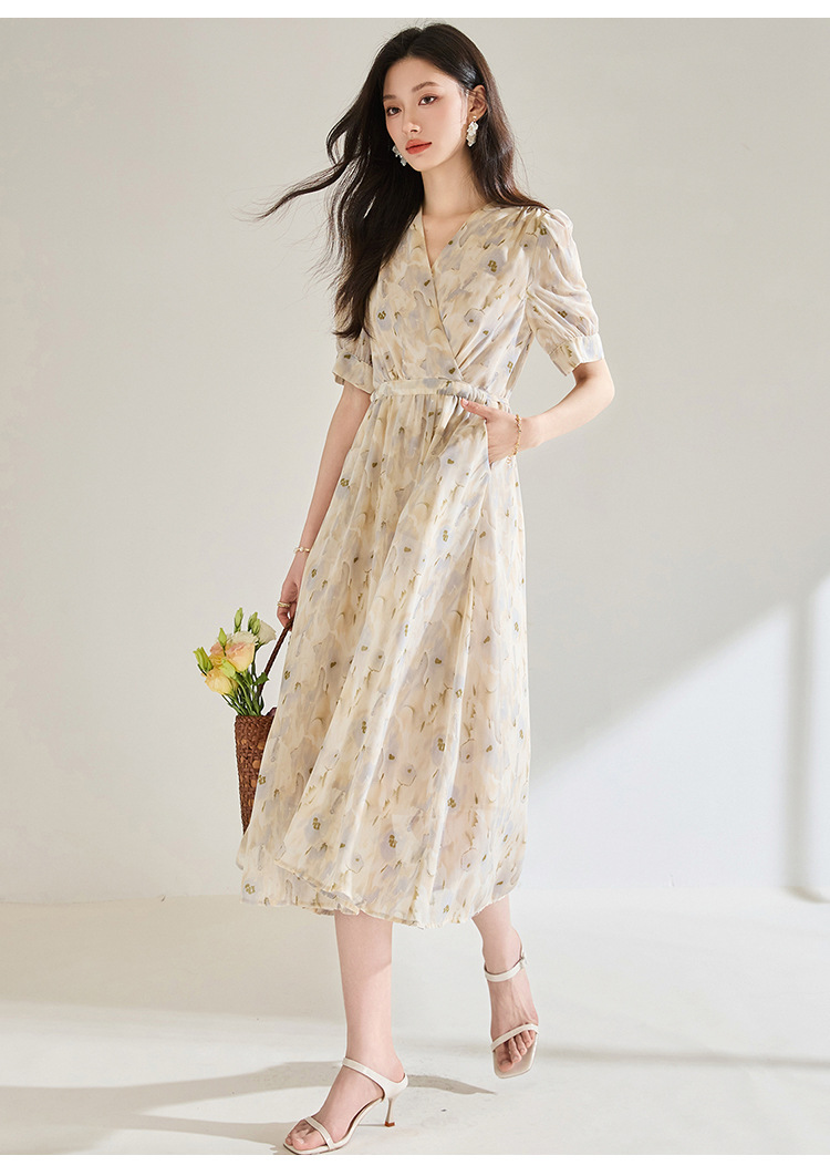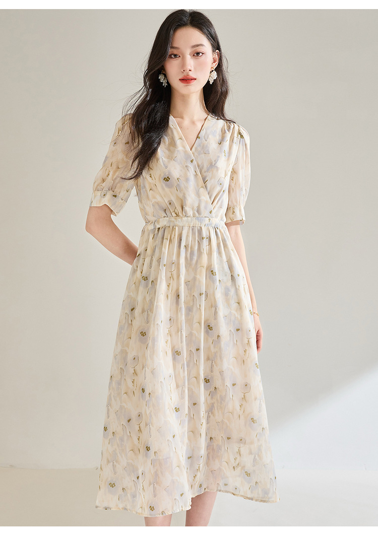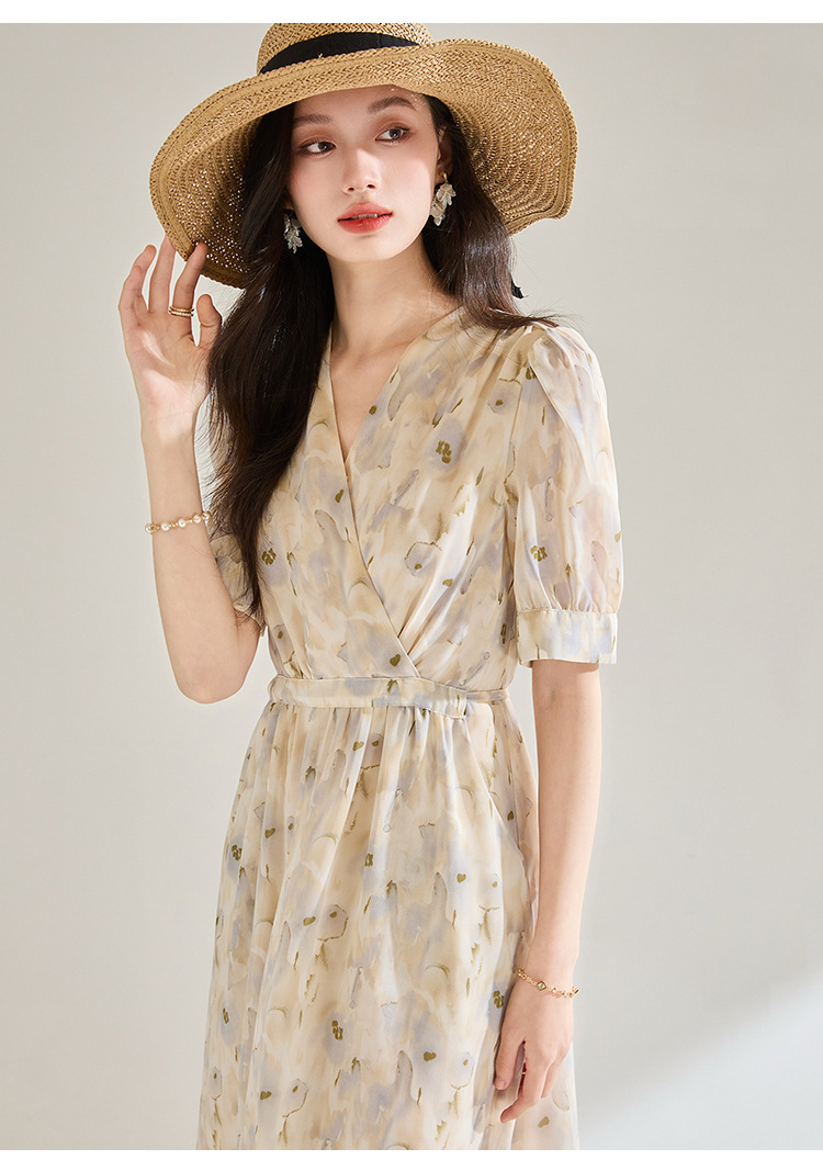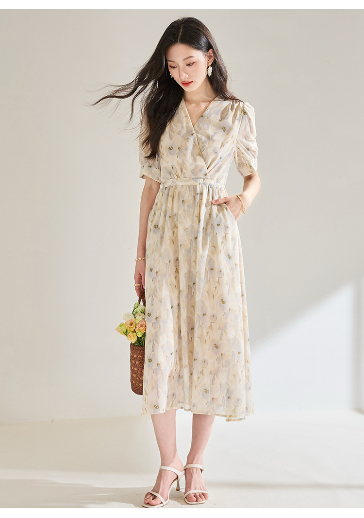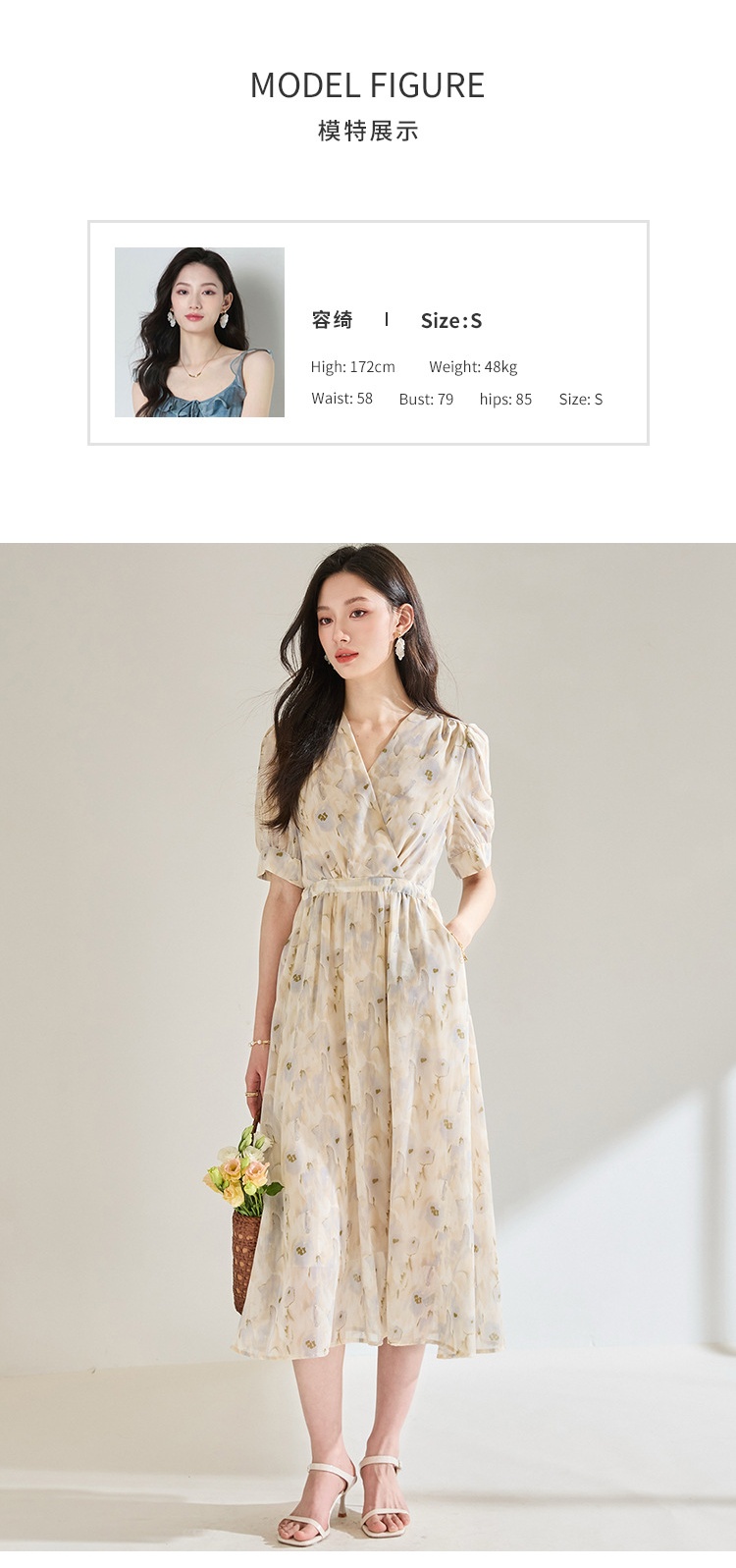 「高货sh」全新升级【铂金会员220/天猫299/差价79】(10336)洛诗琳法式温柔风碎花v领连衣裙2025夏季减龄收腰沙滩裙sh10336
