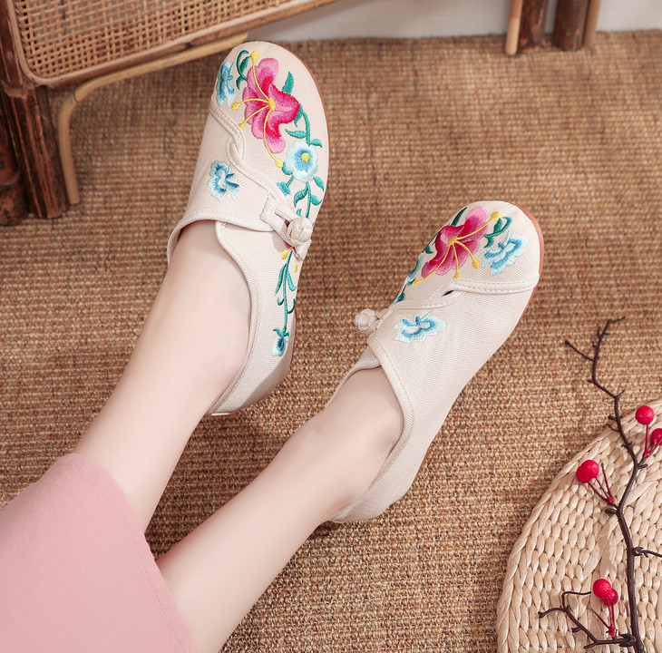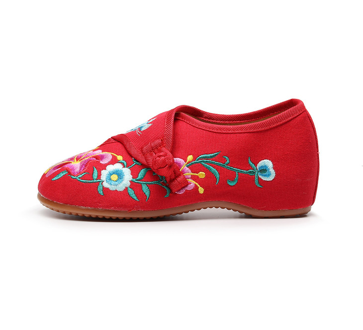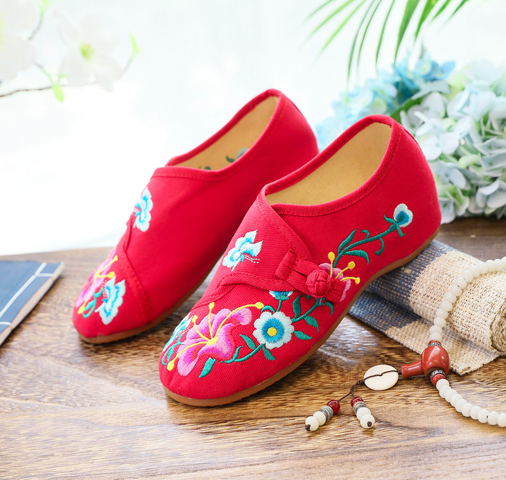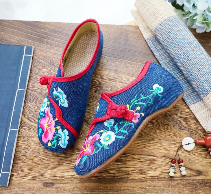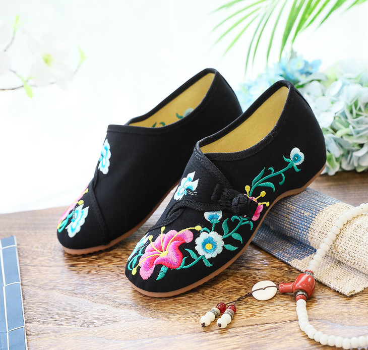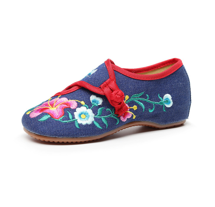 XQ新款牵牛花喇叭花圆头帆布绣花布鞋