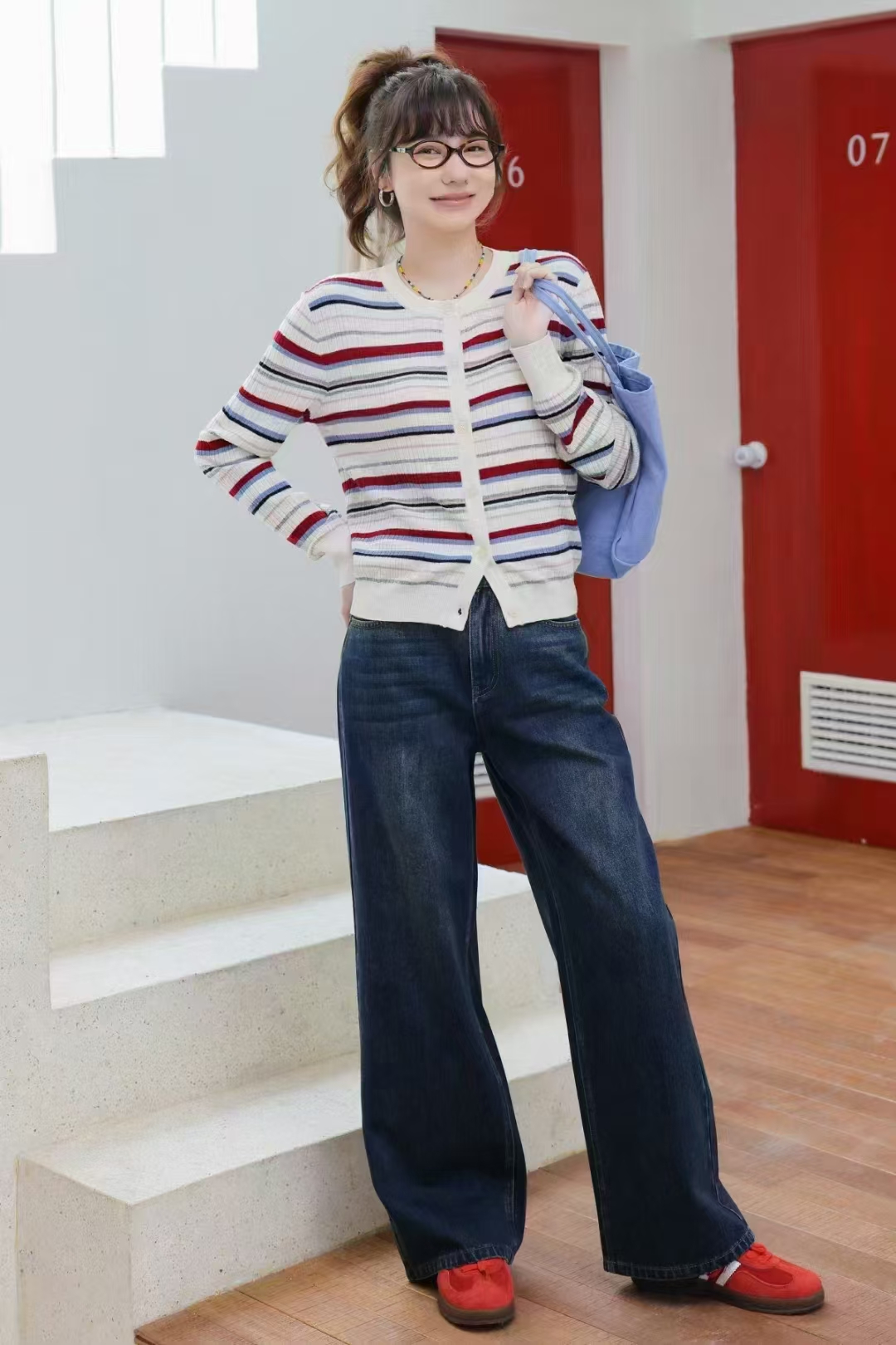 【预售】柚丁女装俏皮灵灵动彩虹针织条纹开衫9A11M27385
