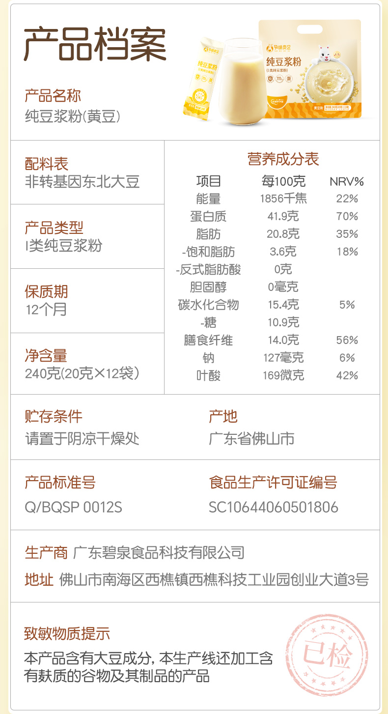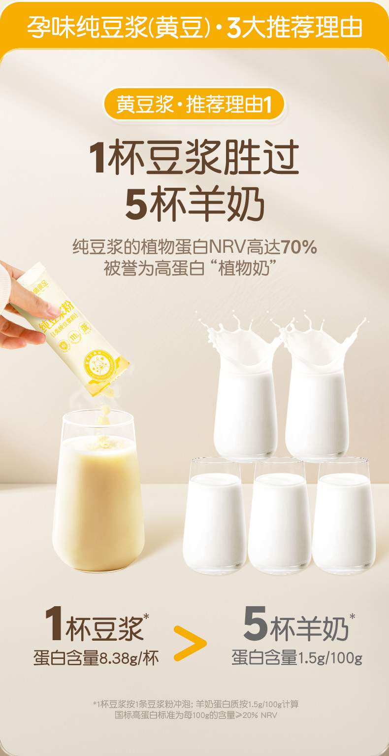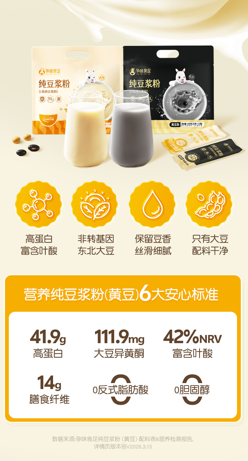 【品牌自营】孕味食足纯豆浆粉 黄豆高蛋白原味无添加蔗糖孕妇孕期健康营养早餐