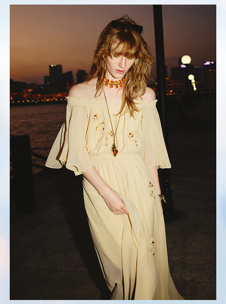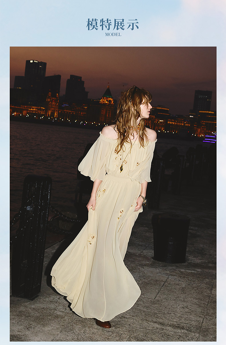 【主题纪念款】MAXRIENY半夏玫瑰长裙一字肩收腰连衣裙高级气质感(货号:MC86DR083)