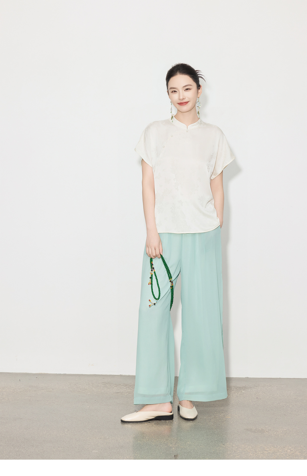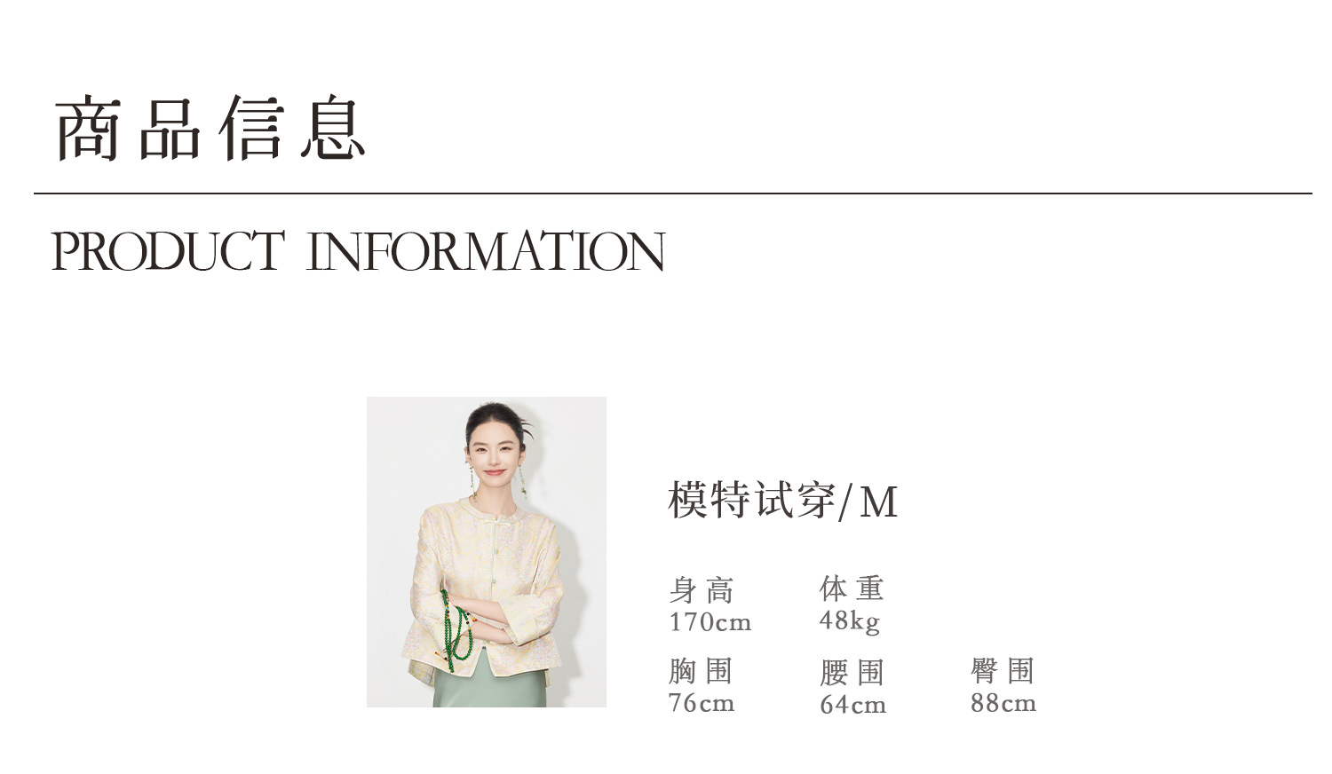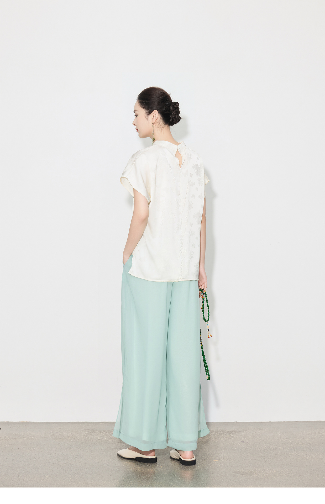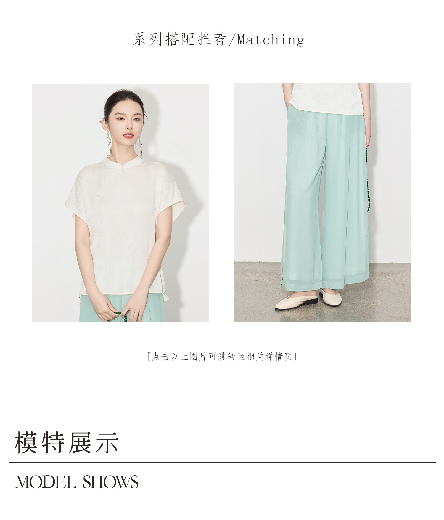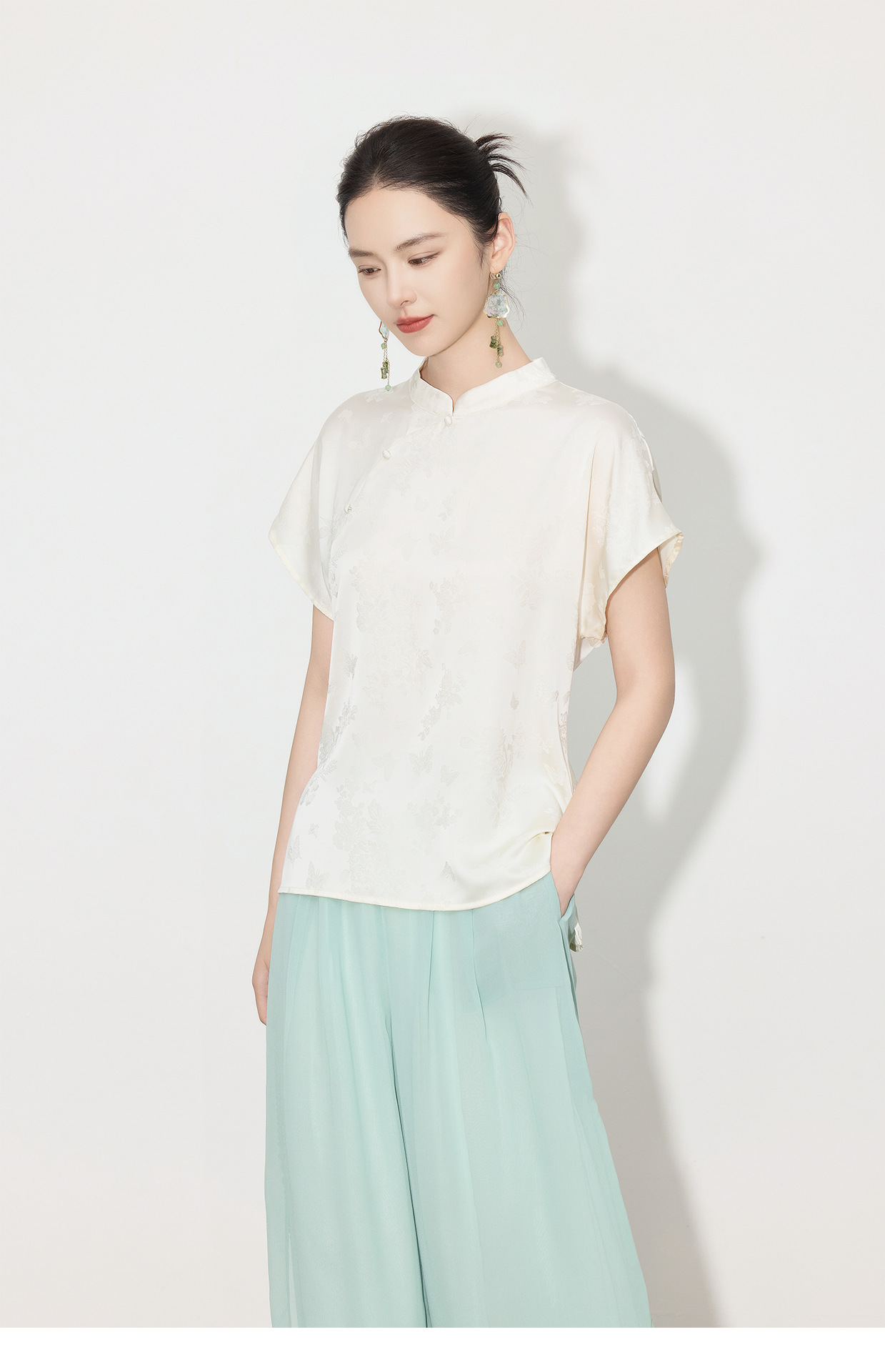 「自」全新升级【铂金会员201/天猫269/差价68】(73934)洛诗琳新中式国风短袖衬衫2025夏季钉珠设计感立领提花上衣