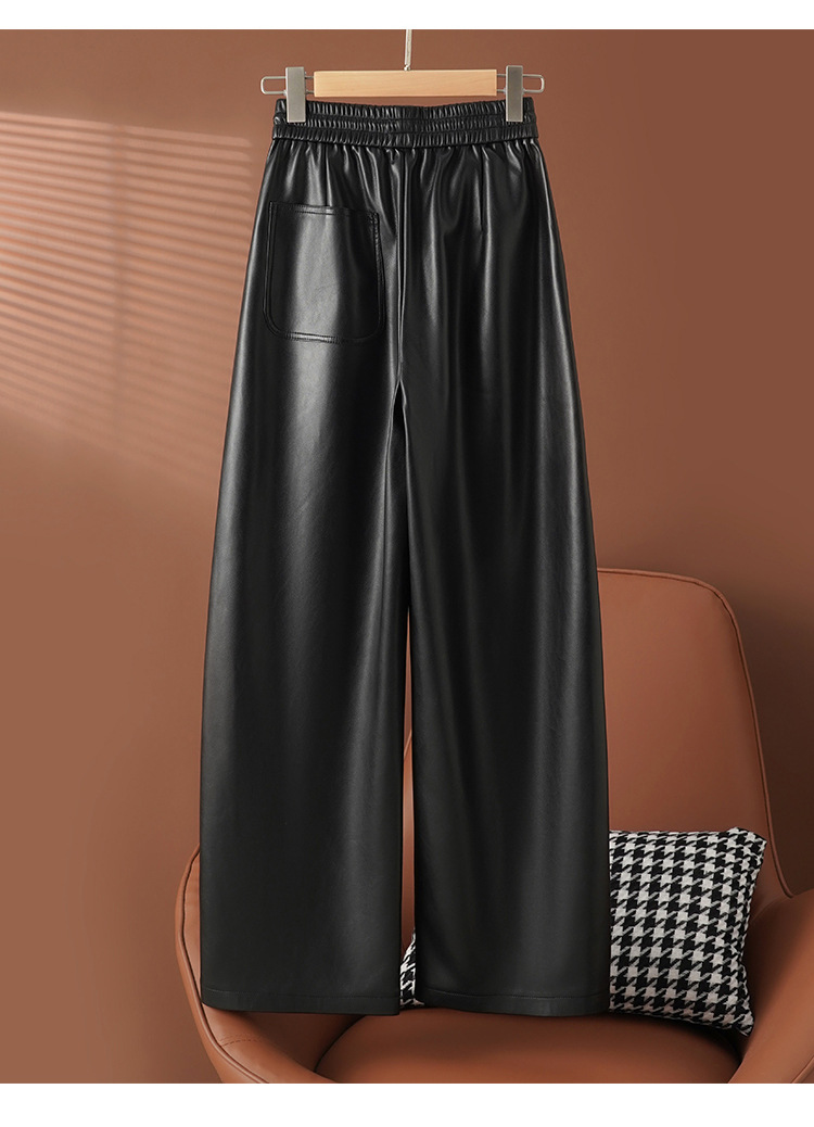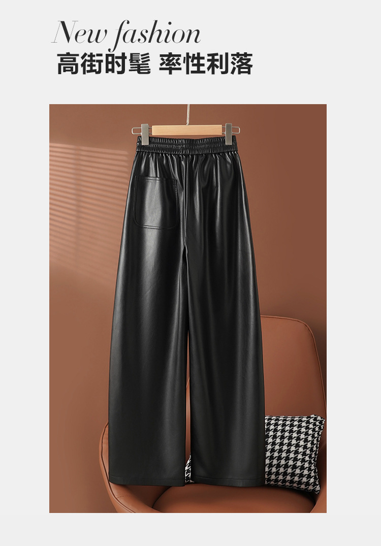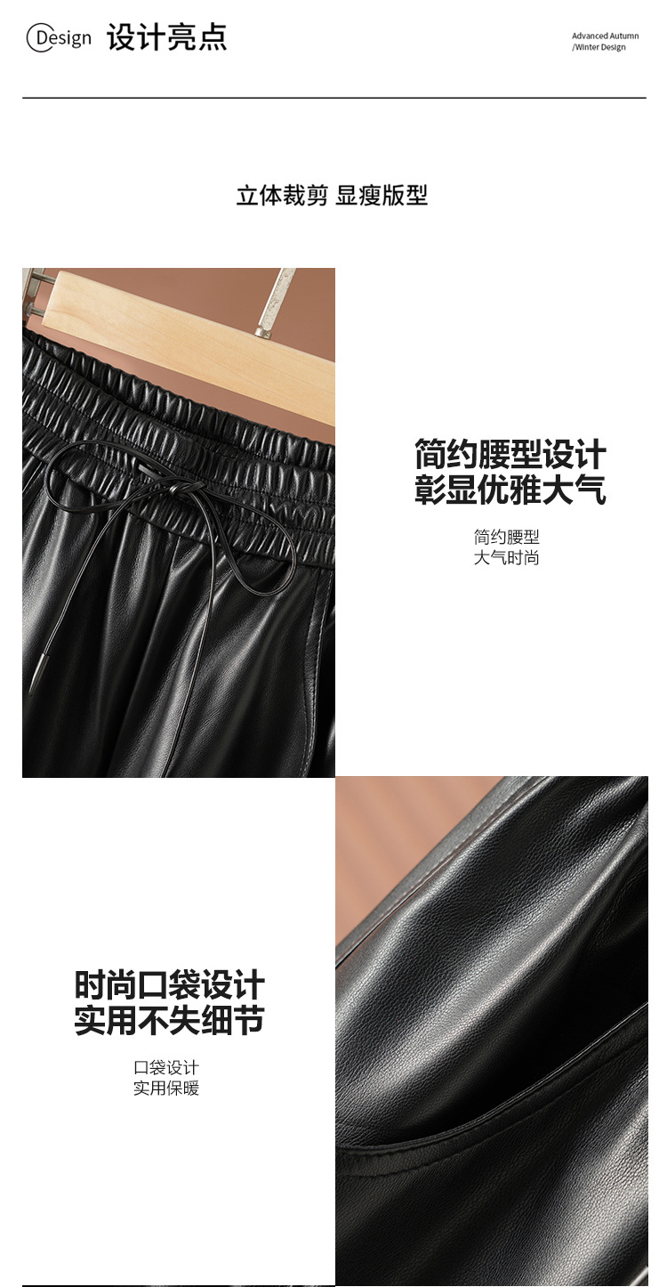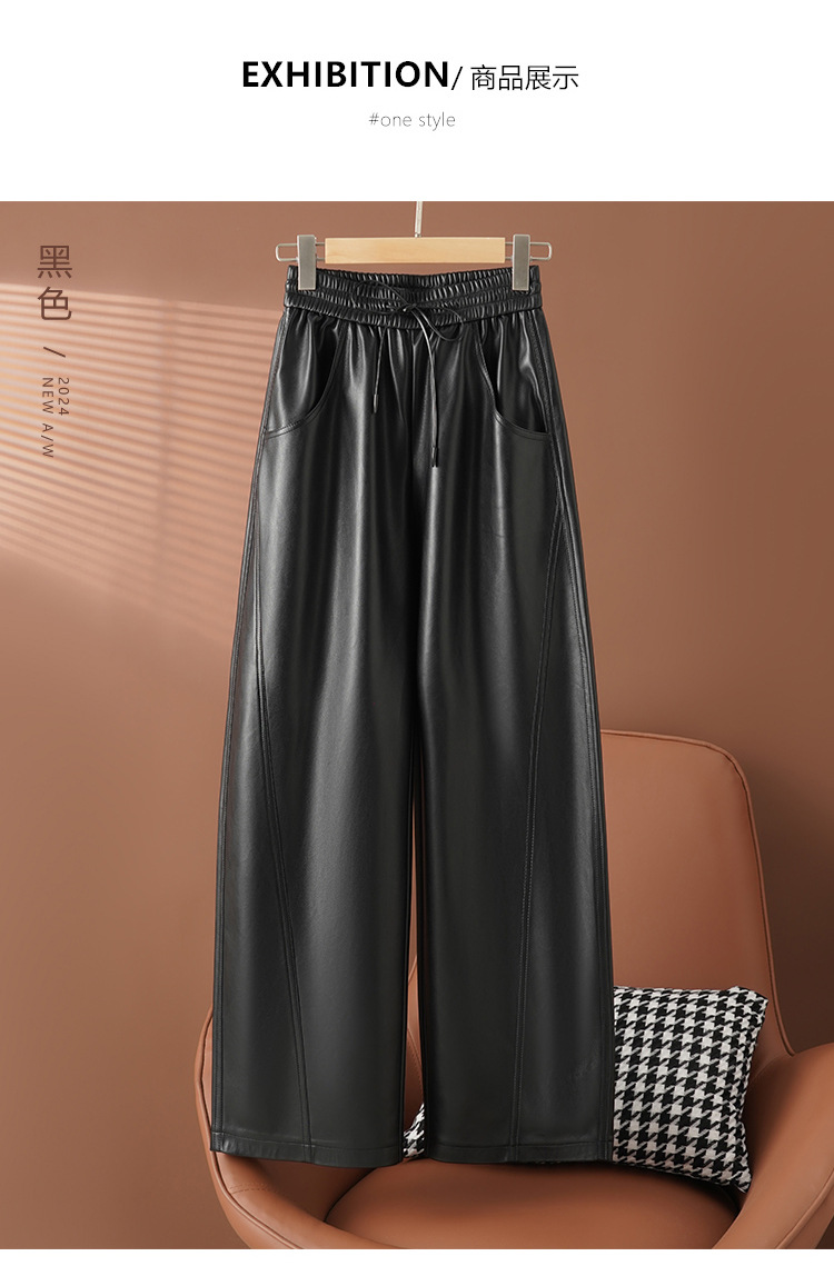 丁摩 新款秋装真皮皮裤女士高腰时尚绵羊皮直筒弯刀垂感拖地阔腿裤5ZF-2420