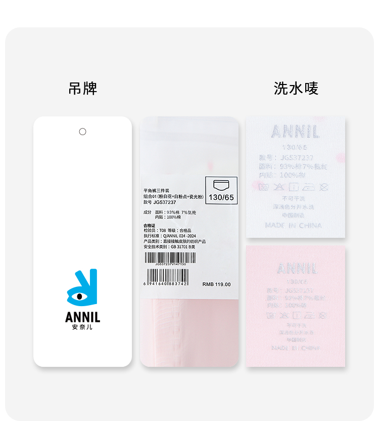 【实体店同款】女童平角裤三件装秋季新款安奈儿童装JG537237