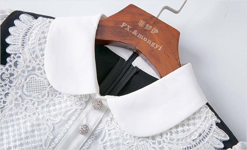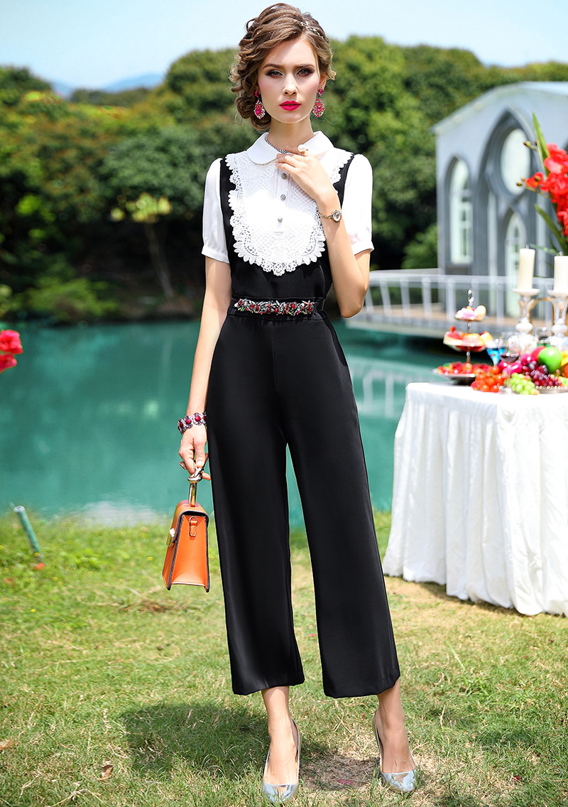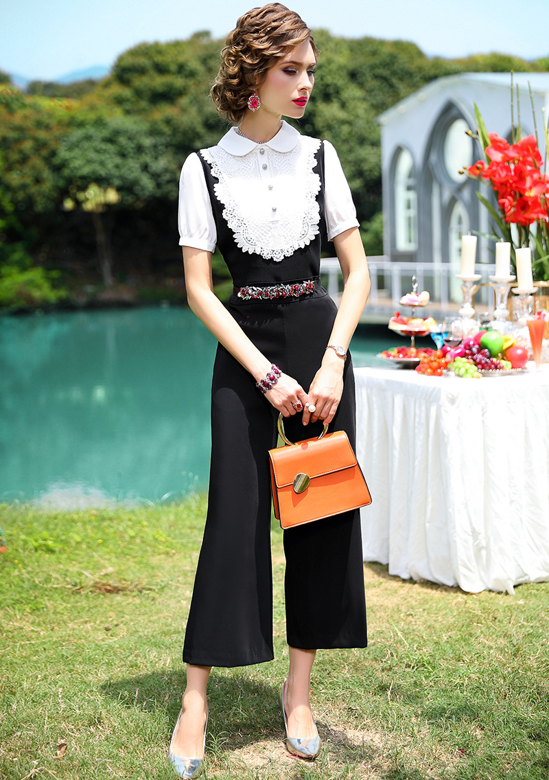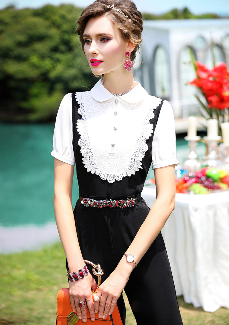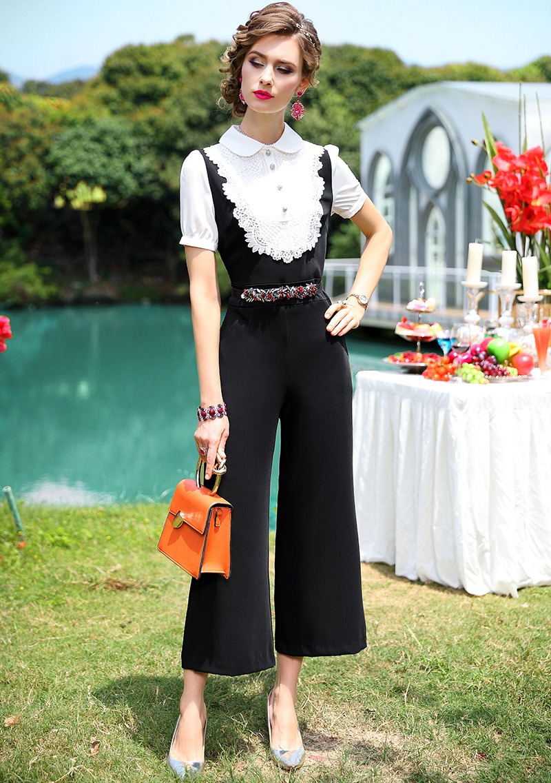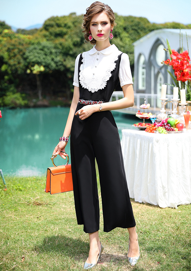 FMY-F20XL31227假两件连体裤显瘦高腰蕾丝拼接连衣阔腿裤