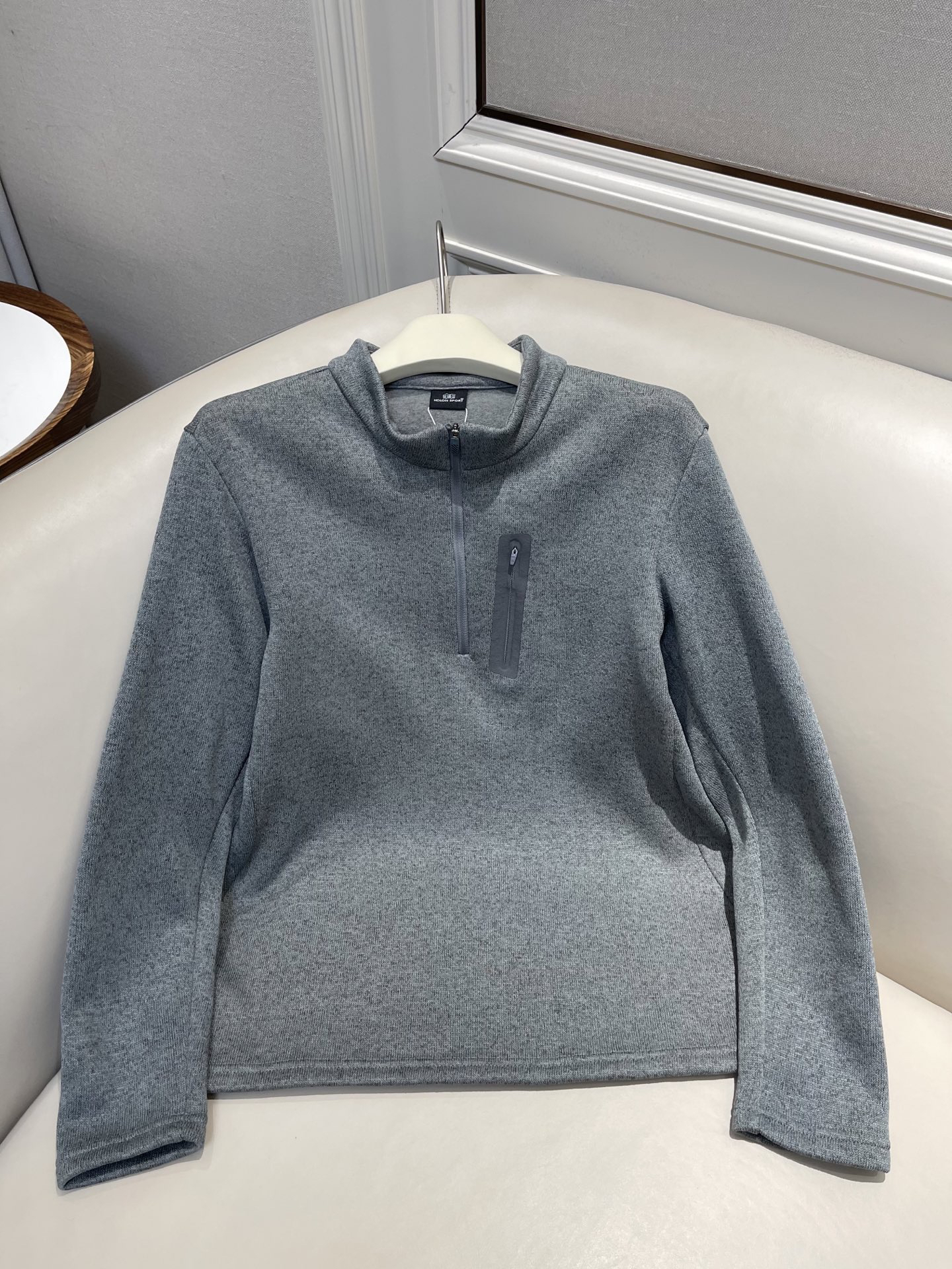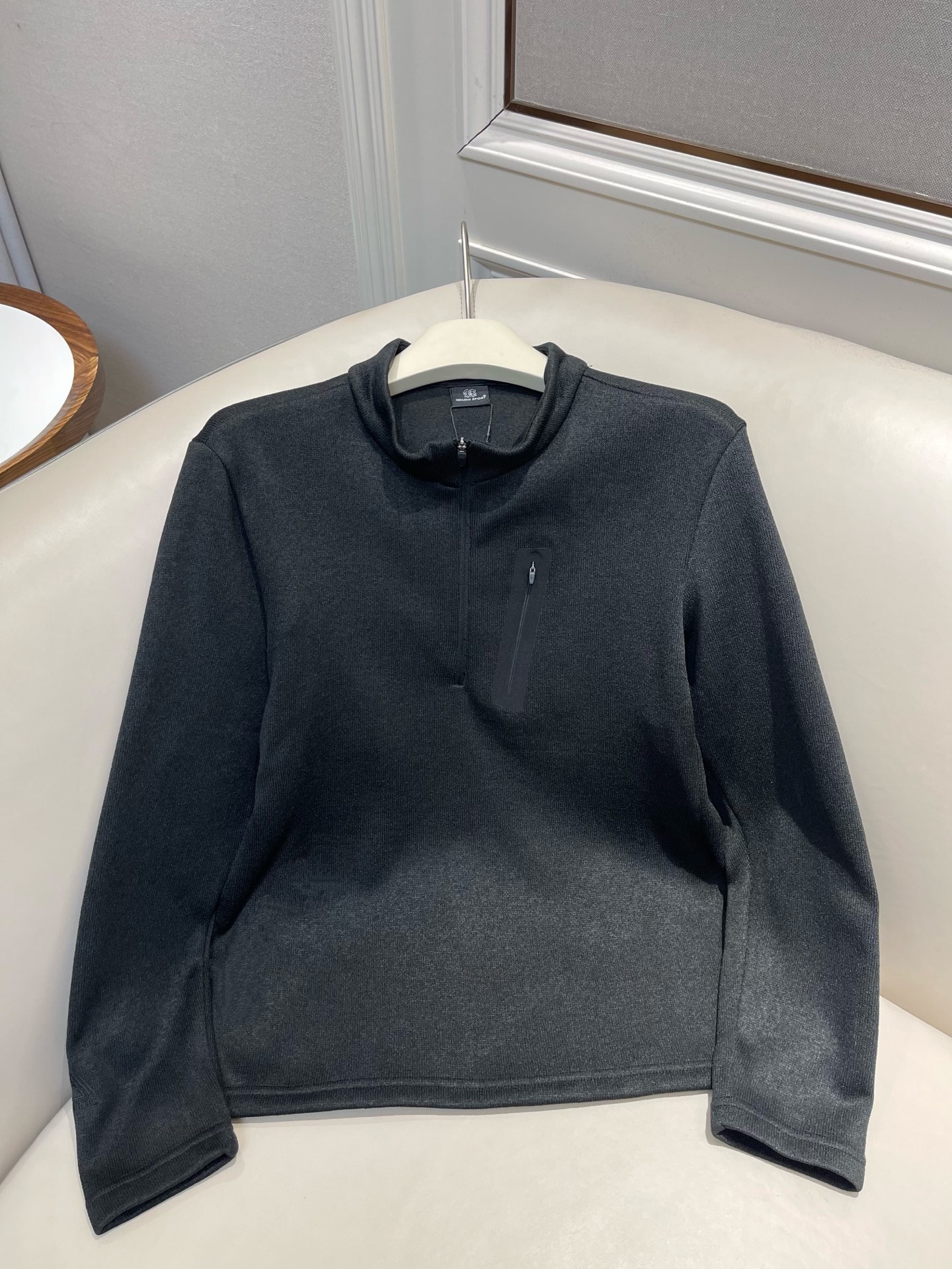 高品质混纺面料 手感如羊毛般轻盈舒适 带有一定的弹力 包容性很棒!透气不闷汗 久穿也能不闷热,户外运动中也能保持好状态~简约大方的半拉链设计 视觉更显精神,可自由调节领口大小 轻松应对温差!合身版型裁剪 告别臃肿感,上身干练利落 超显身型挺拔!胸前位置的热压口袋可以满足随身小物件的收纳需求,设计感满满 极具穿搭层次感~休闲通勤 户外出行或逛街都好穿。