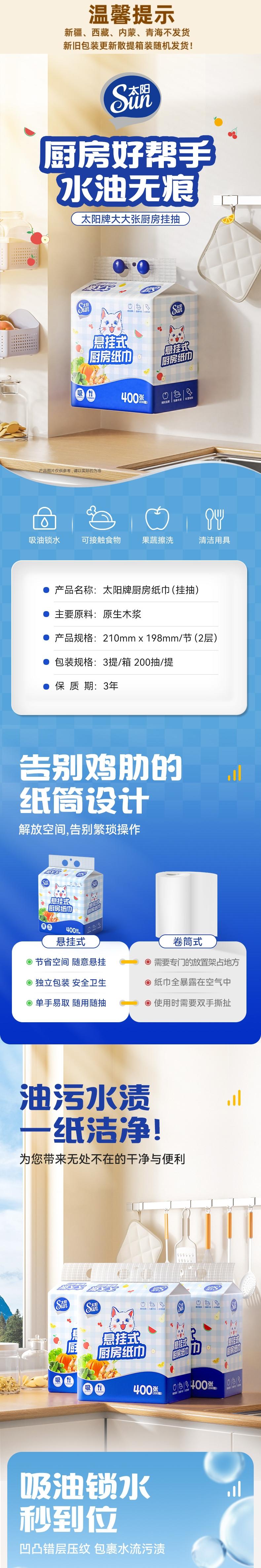 太阳 中顺洁柔悬挂式厨房抽纸2层200抽*3包 JS2R200-3E