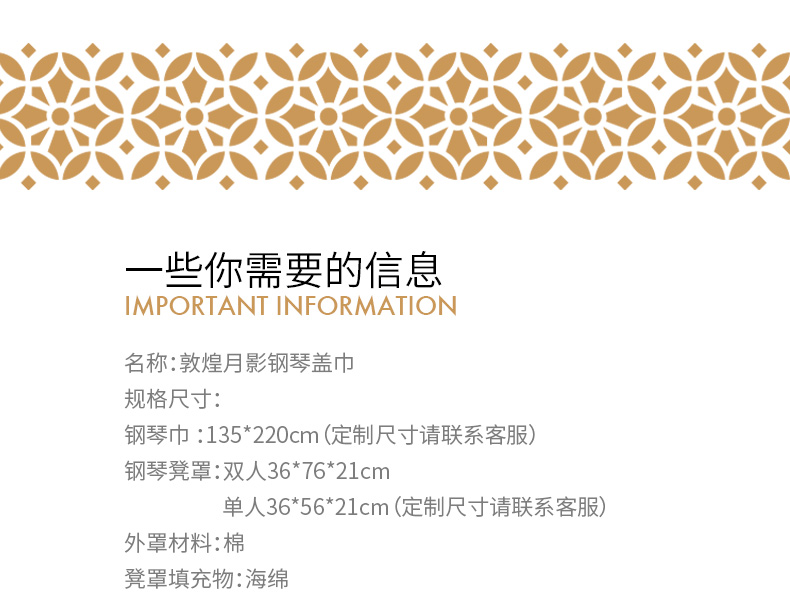 敦煌月影高端钢琴罩防尘法式琴凳罩