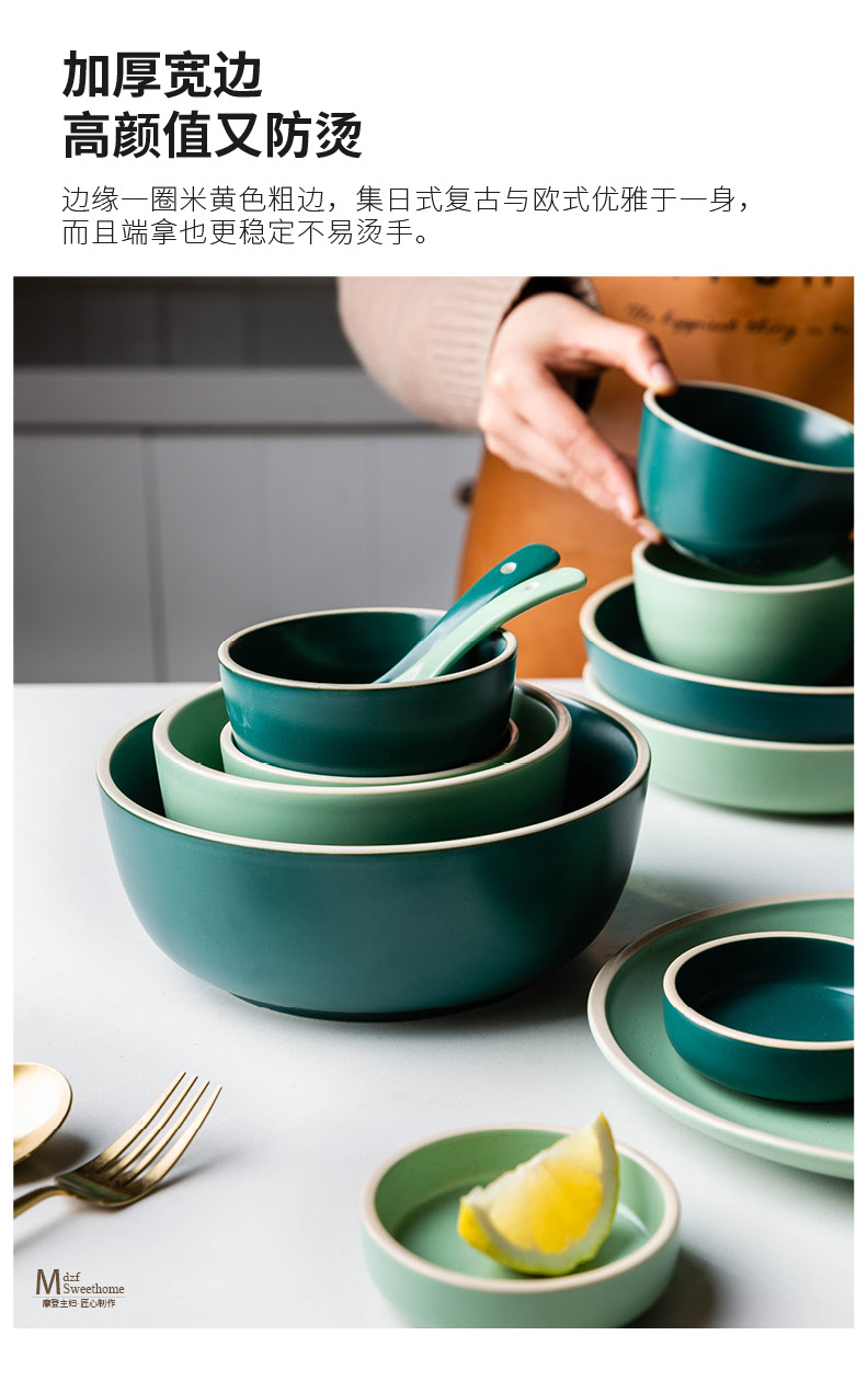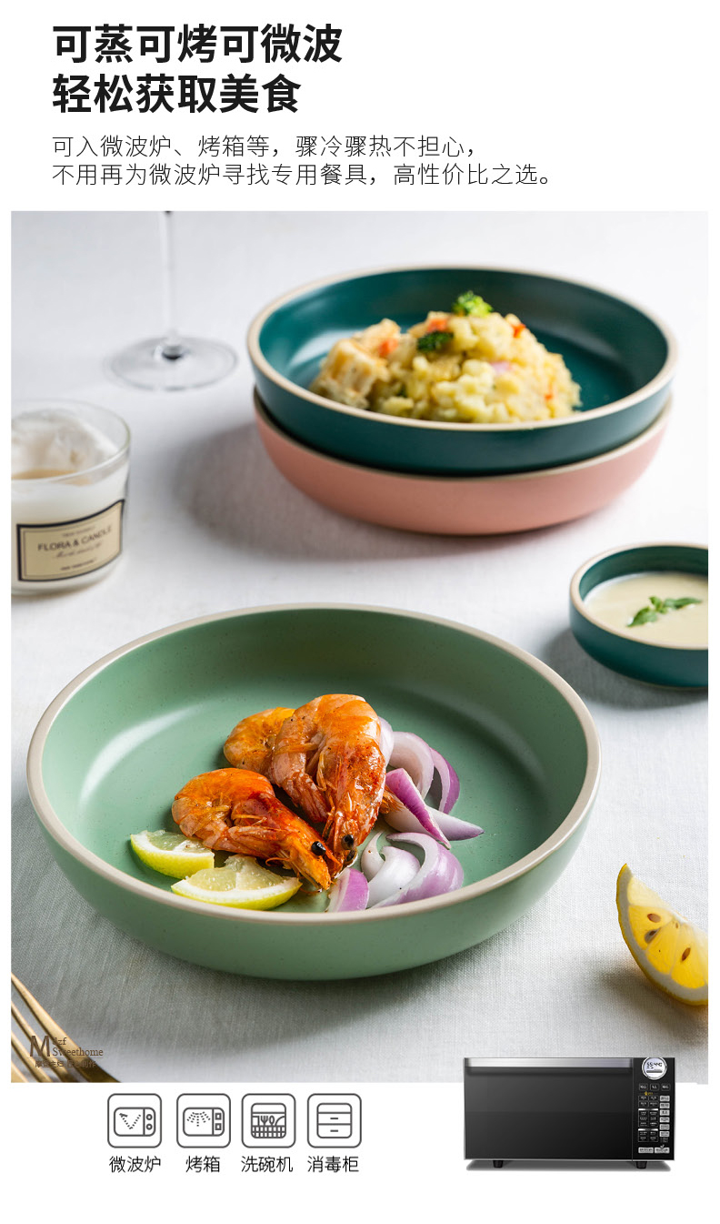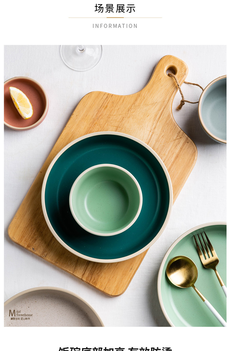 摩登主妇莫兰迪碗碟餐具陶瓷汤碗沙拉碗平深盘西餐牛排盘碗盘套装