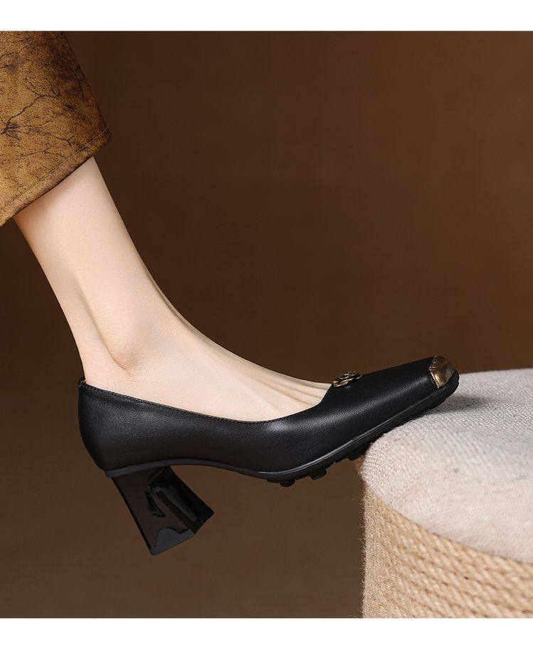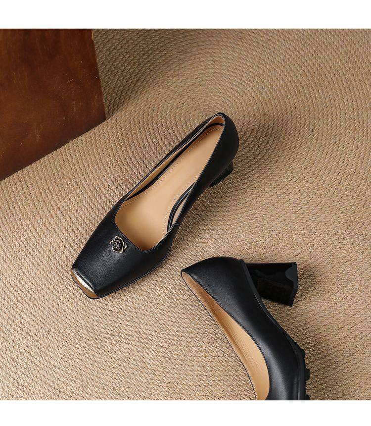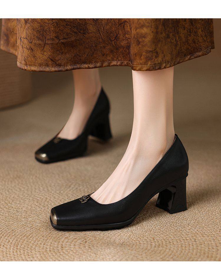 【预售5天】法式通勤职业方头高跟鞋,粗跟新款春秋爆款一脚蹬单鞋子AK&395